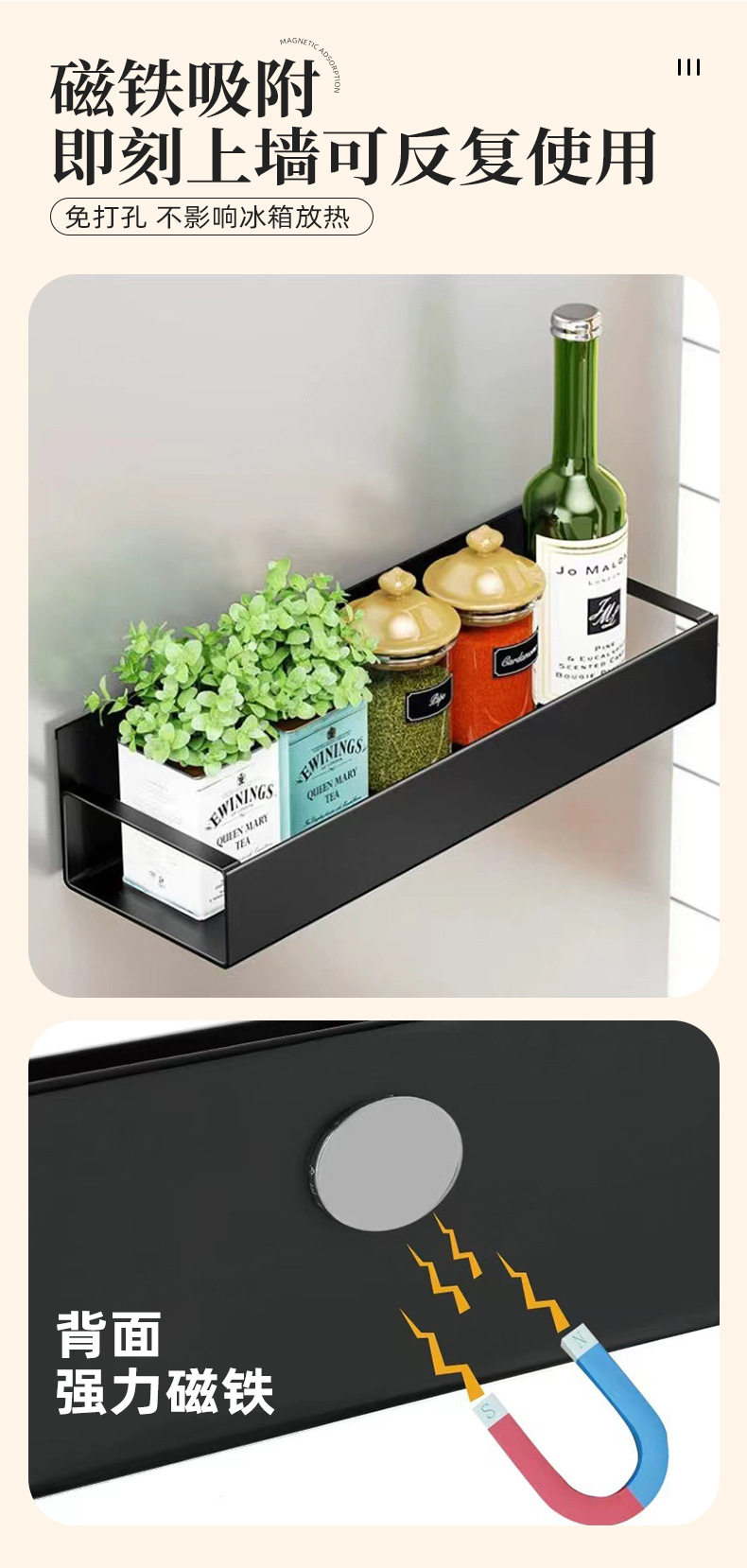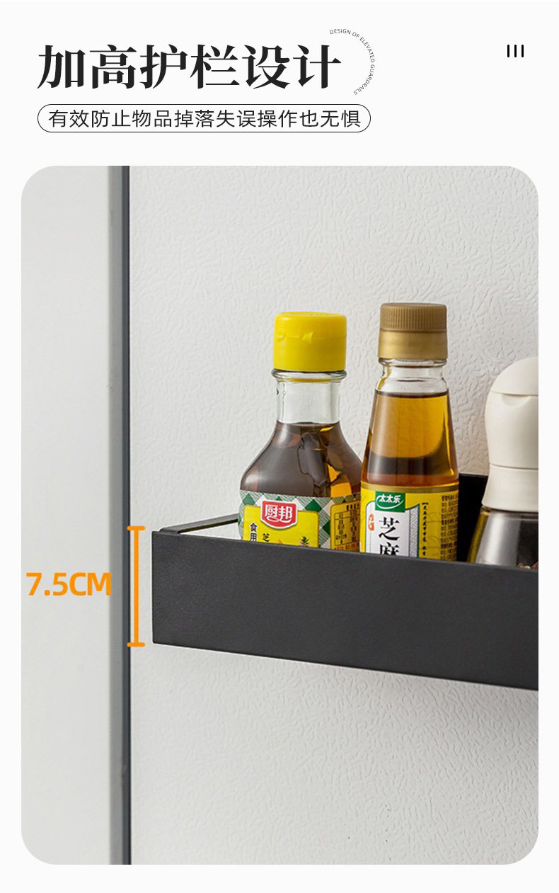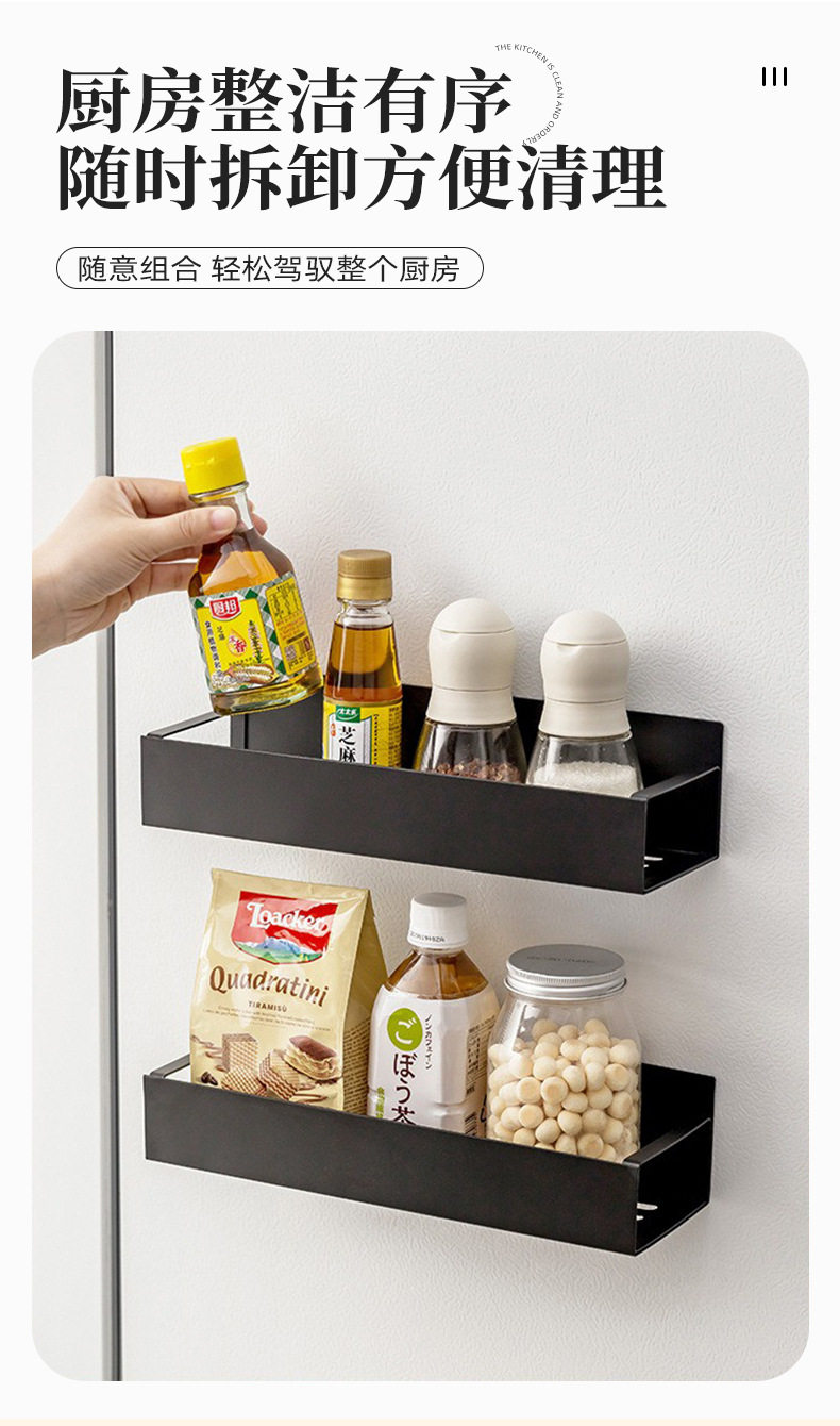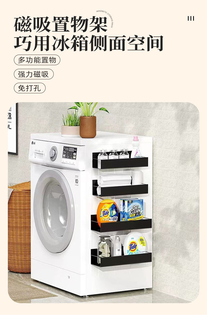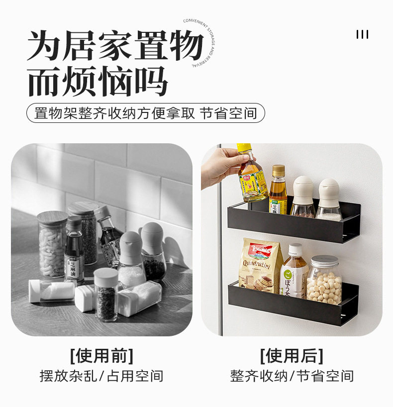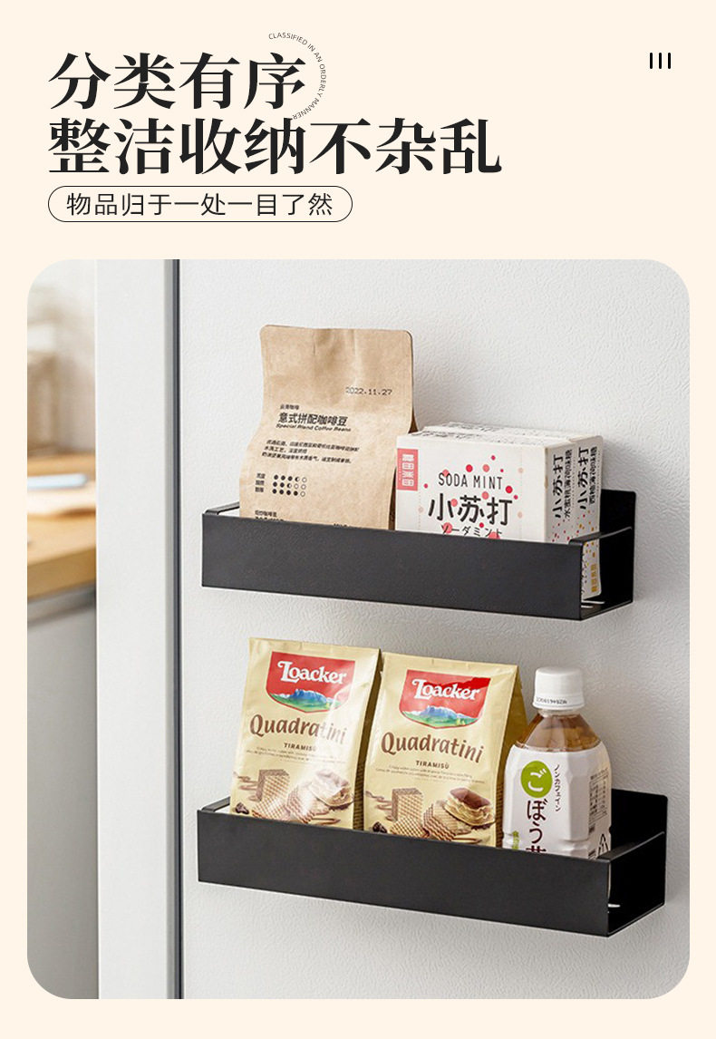 Cross-Border Popular Refrigerator Storage Rack Kitchen Supplies Magnetic Storage Rack Punch-Free Side Microwave Oven Rack