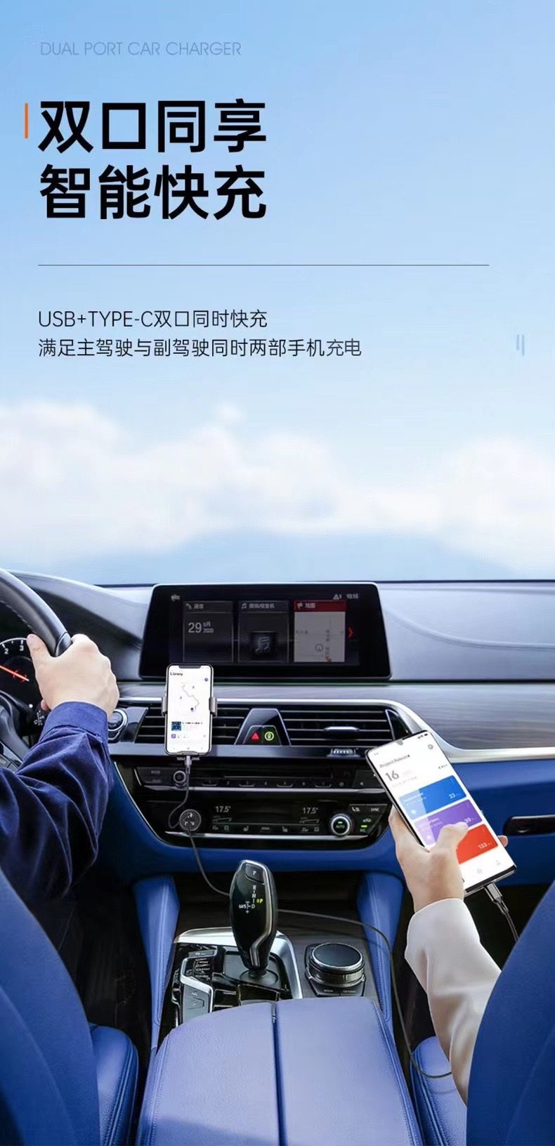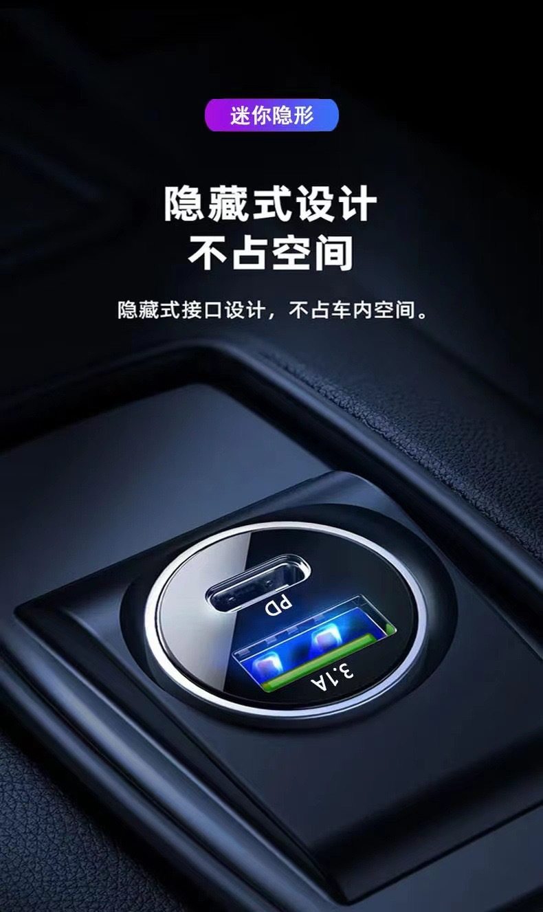 Wholesale A + C mini car charger PD fast charge car cigarette lighter 3.1A one to two USB portable adapter