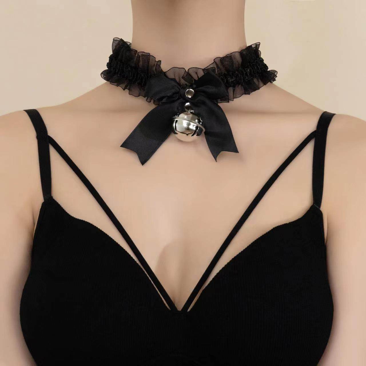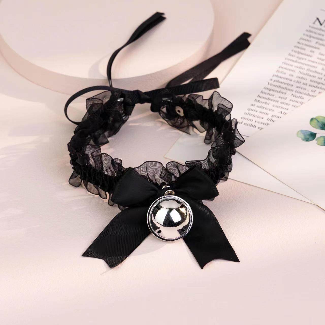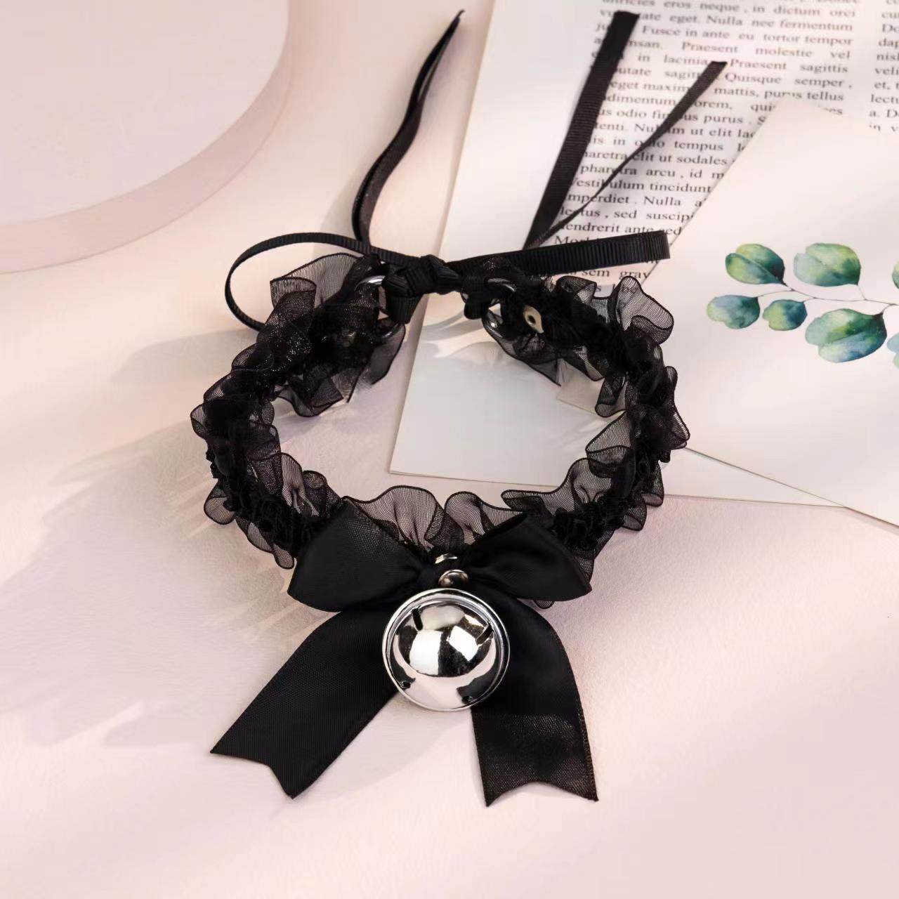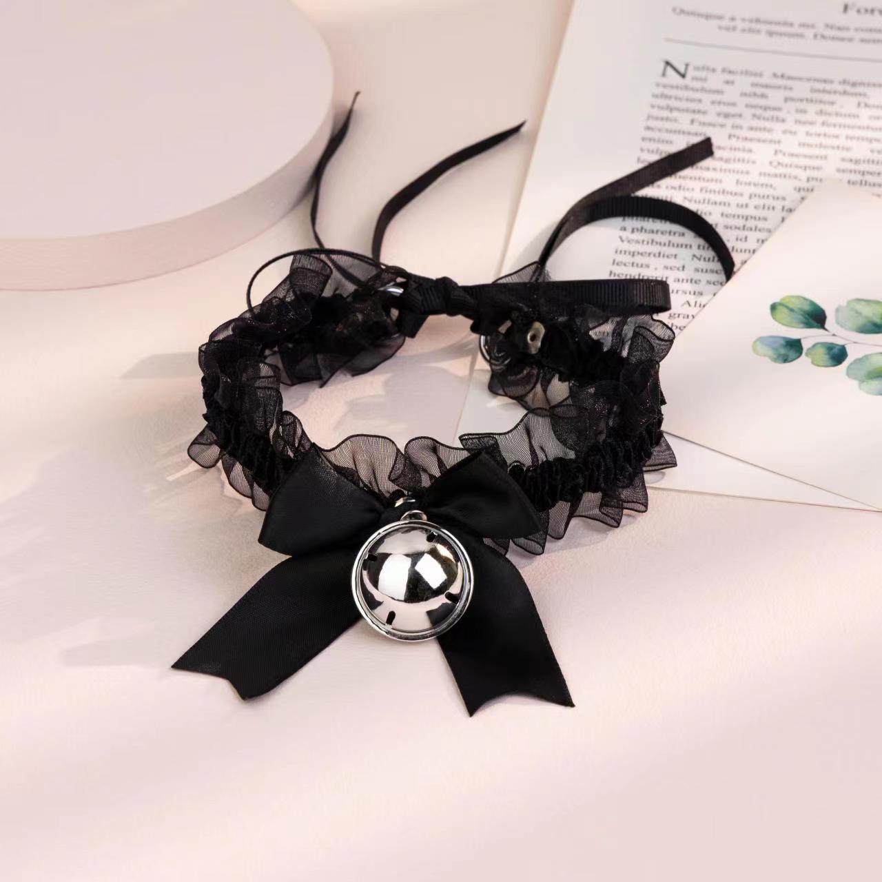 Bow Lace Bell Necklace choker Collarbone Neck Accessories Soft Girl Neck Strap cos Maid Collar