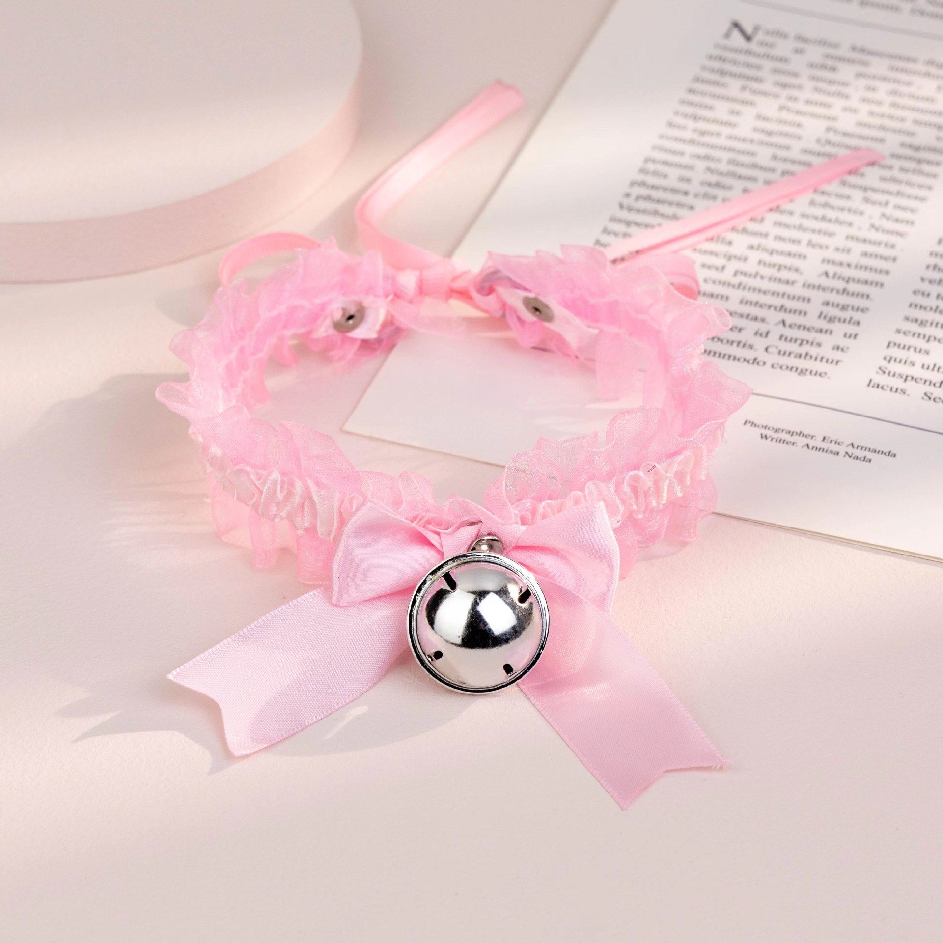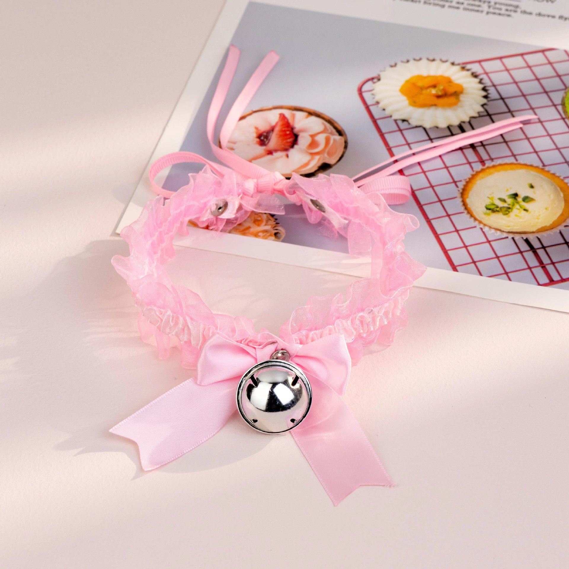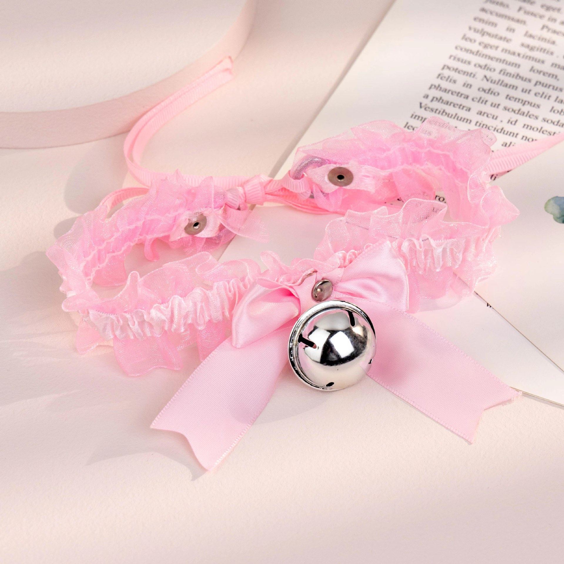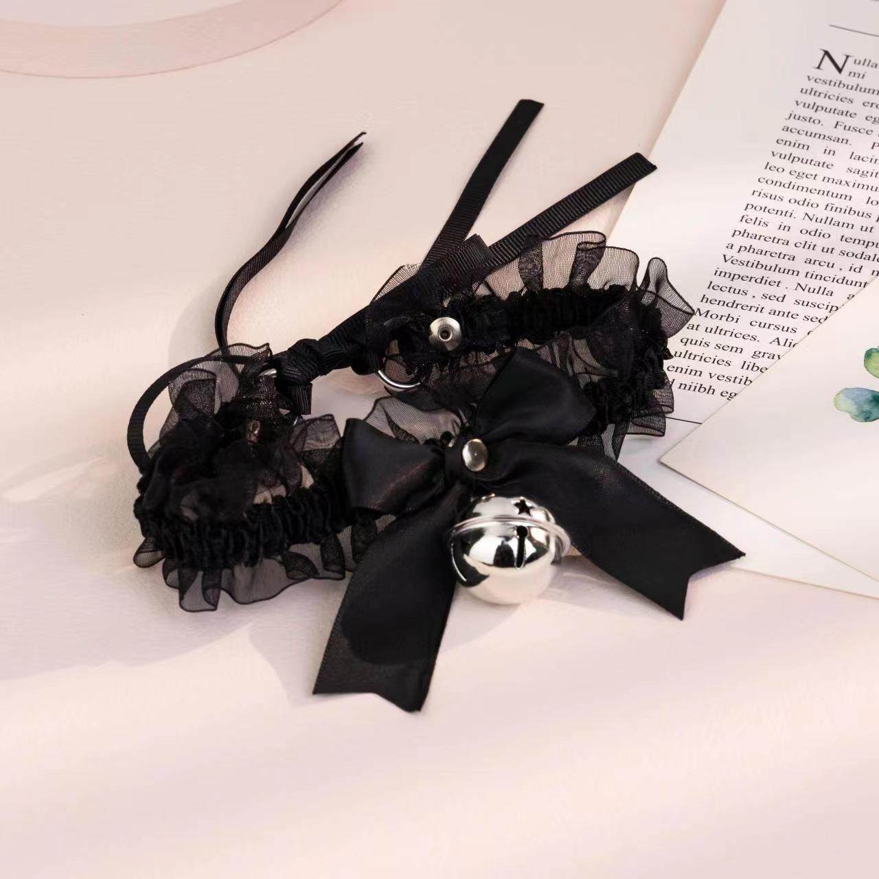 Bow Lace Bell Necklace choker Collarbone Neck Accessories Soft Girl Neck Strap cos Maid Collar