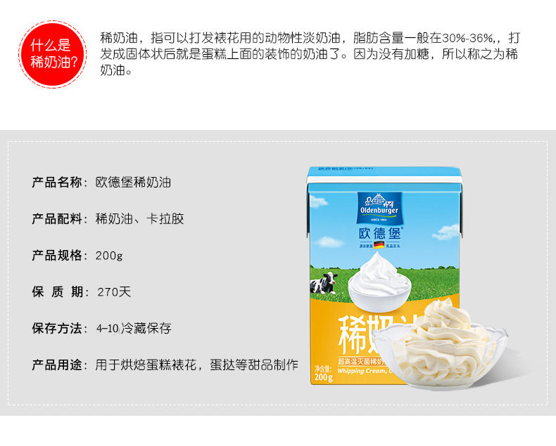 Free Shipping Odeburg Light Cream 200g 30% Cake Decoration Animal Cream Tart Liquid Baking