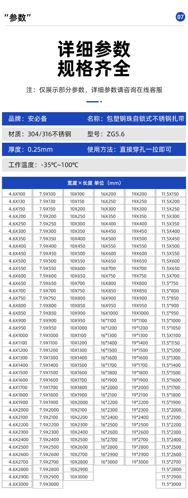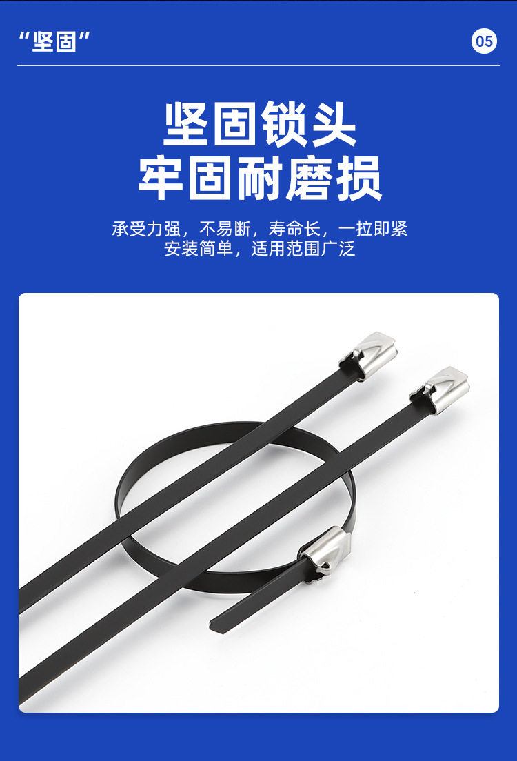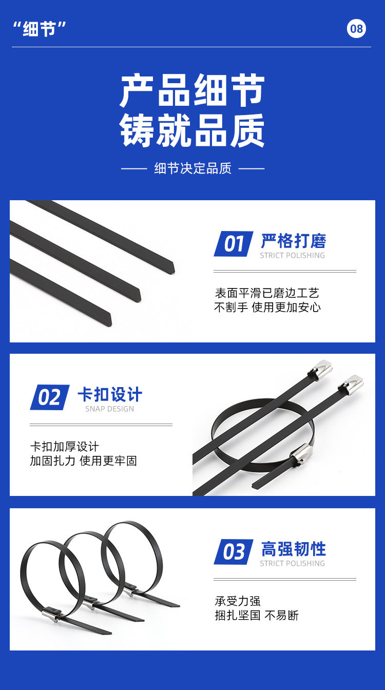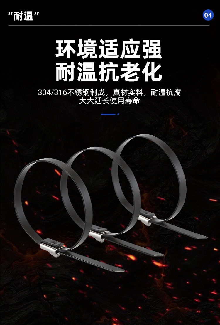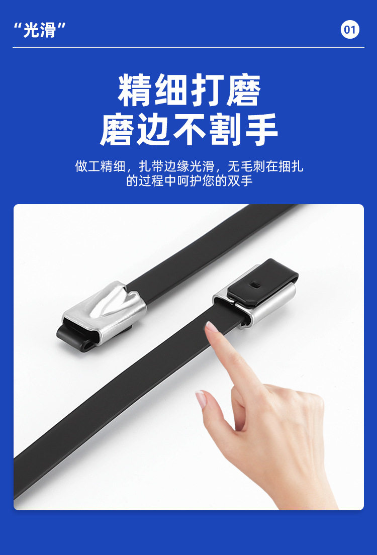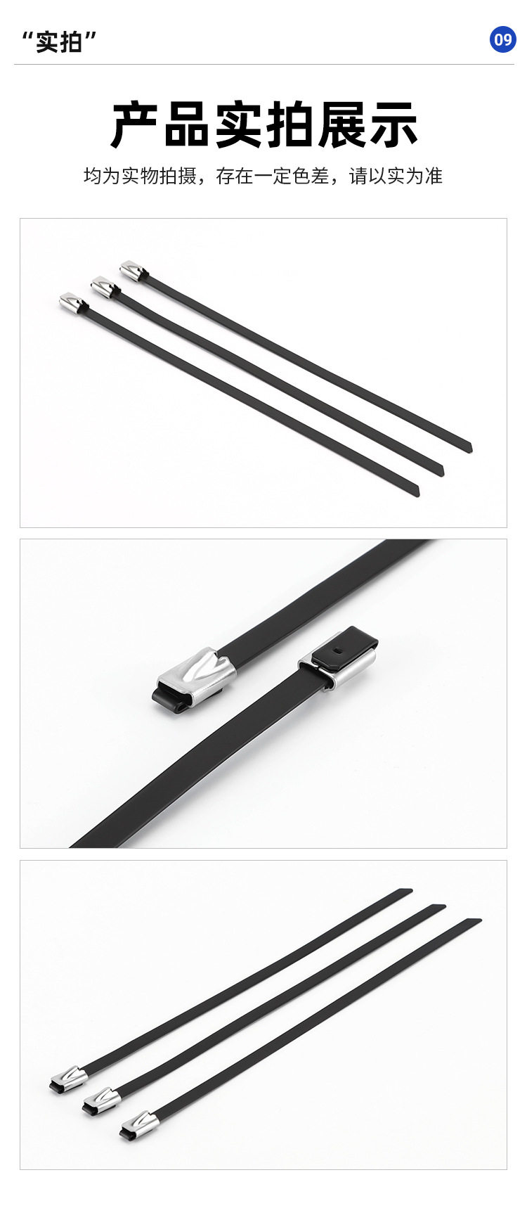 Plastic Coated 304 Stainless Steel Cable Tie 5.6*300mm Self-Locking Metal Marine Cable 316 Tightener 9*200mm