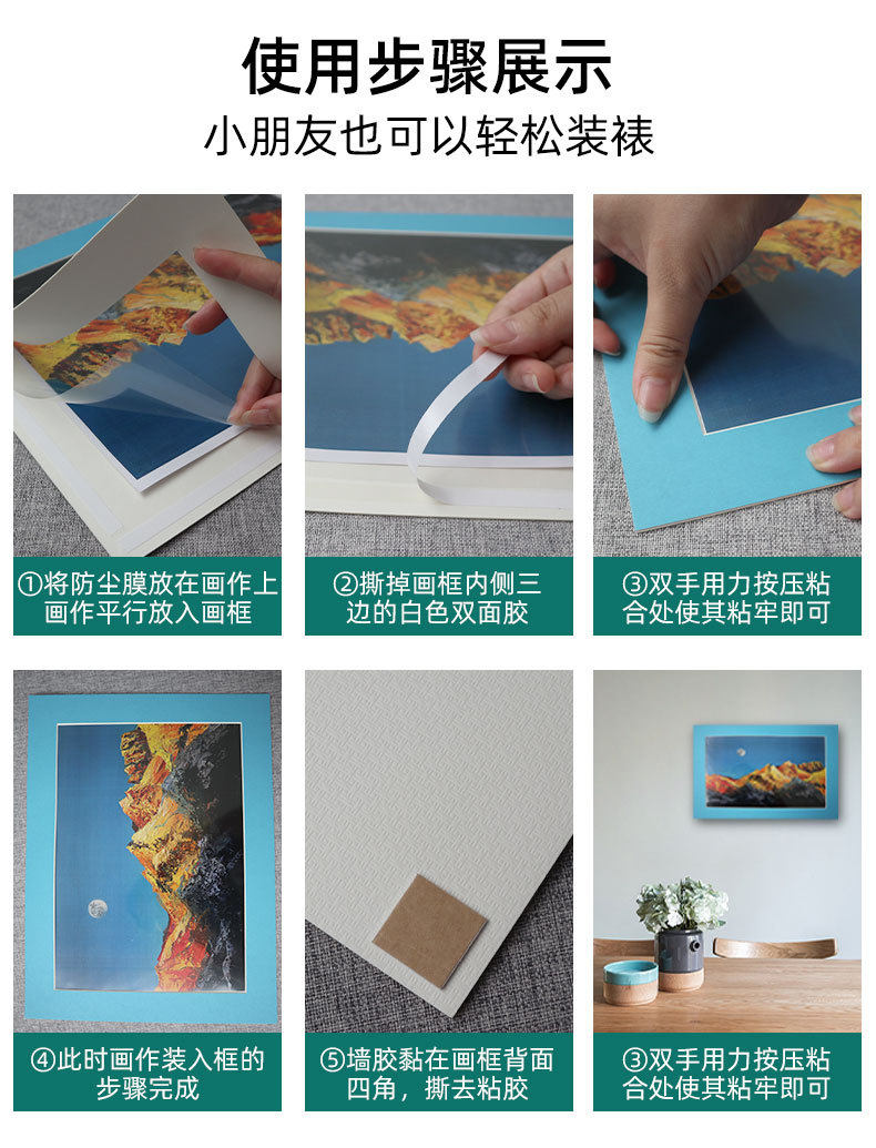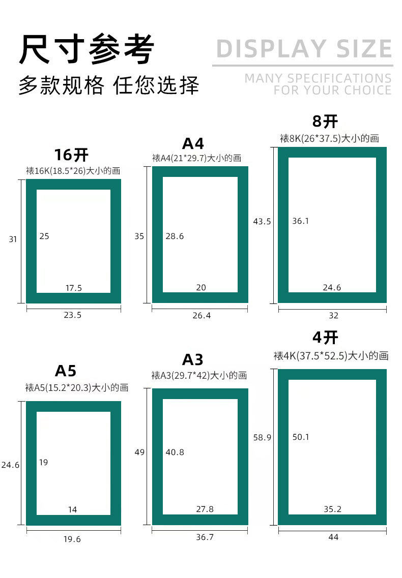 | Inner frame size | Mounted 4-karat work with film and glue set,Mounted 8-karat work with film and glue set,Mounted 16-karat work with film and glue set,Mounted A3 work with film And glue set,Mounted A4 work with film And glue set,Mounted A5 work with film And glue set,Other specifications are customized |