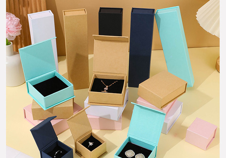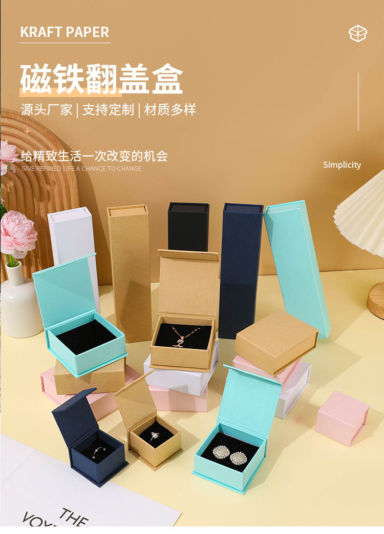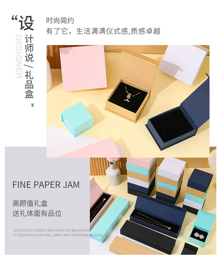 Necklace box in stock jewelry ring magnet flip box printed logo stud earrings bracelet pendant book jewelry box