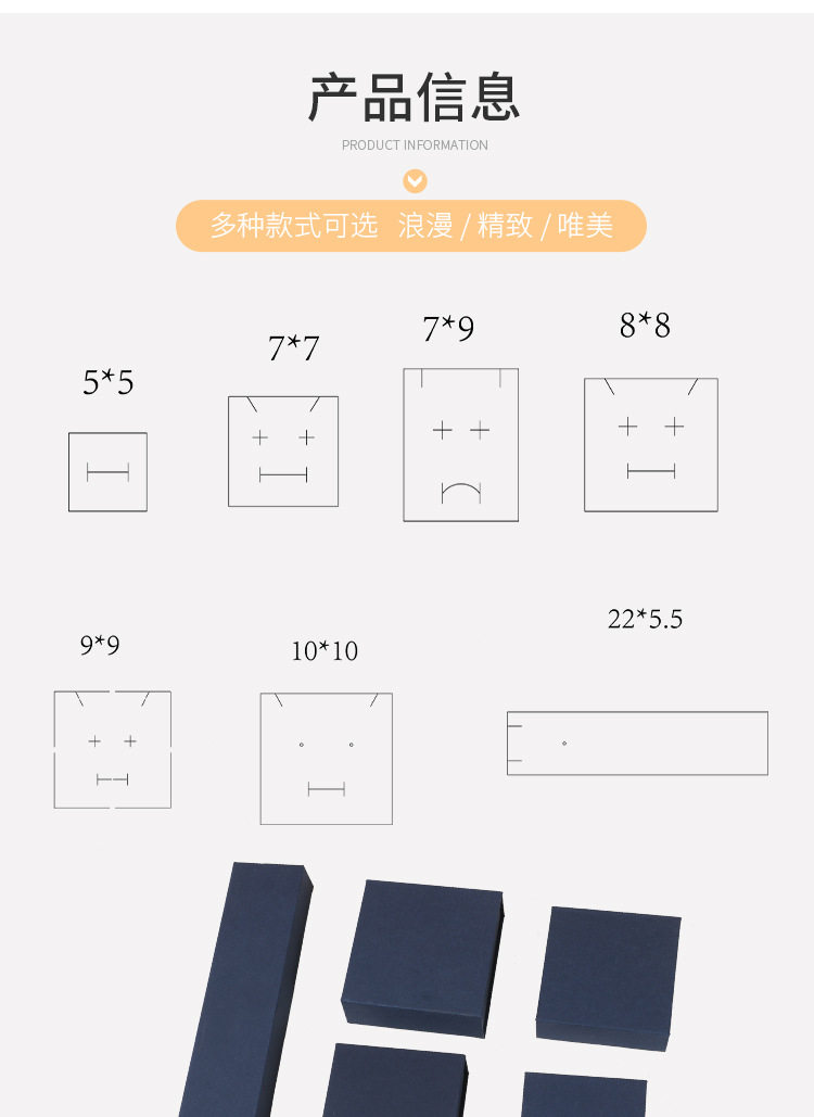 | Specifications and models | Pearlescent white;5*5*3.5cm,Pearlescent white;7*7*3.5cm,Pearl white;7*9*3cm,Pearlescent white;8*8*3.5cm,Pearlescent white;9*9*3.5cm,Pearl white;10*10*3.5cm,Pearlescent white;22*5.5*3cm,Pearlescent powder blue;5*5*3.5cm,Pearlescent powder blue;7*7*3.5cm,Pearlescent powder blue;7*9*3cm,Pearlescent powder blue;8*8*3.5cm,Pearlescent powder blue;9*9*3.5cm,Pearlescent powder blue;10*10*3.5cm,Pearlescent powder blue;22*5.5*3cm,Pearlescent powder;5*5*3.5cm,Pearlescent powder;7*7*3.5cm,Pearlescent powder;7*9*3cm,Pearlescent powder;8*8*3.5cm,Pearlescent powder;9*9*3.5cm,Pearlescent powder;10*10*3.5cm,Pearlescent powder;22*5.5*3cm,Dark blue;5*5*3.5cm,Dark blue;7*7*3.5cm,Dark blue;7*9*3cm,Dark blue;8*8*3.5cm,Dark blue;9*9*3.5cm,Dark blue;10*10*3.5cm,Dark blue;22*5.5*3cm,Kraft paper color;5*5*3.5cm,Kraft paper color;7*7*3.5cm,Kraft paper color;7*9*3cm,Kraft paper color;8*8*3.5cm,Kraft paper color;9*9*3.5cm,Kraft paper color;10*10*3.5cm,Kraft paper color;22*5.5*3cm,Black;5*5*3.5cm,Black;7*7*3.5cm,Black;7*9*3cm,Black;8*8*3.5cm,Black;9*9*3.5cm,Black;10*10*3.5cm,Black;22*5.5*3cm |