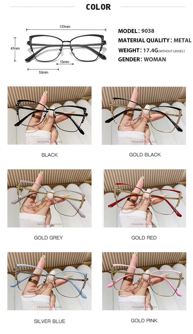 | Frame color | Black Frame,Black gold frame,Gray gold frame,Red gold frame,Blue silver frame,Pink gold frame |
