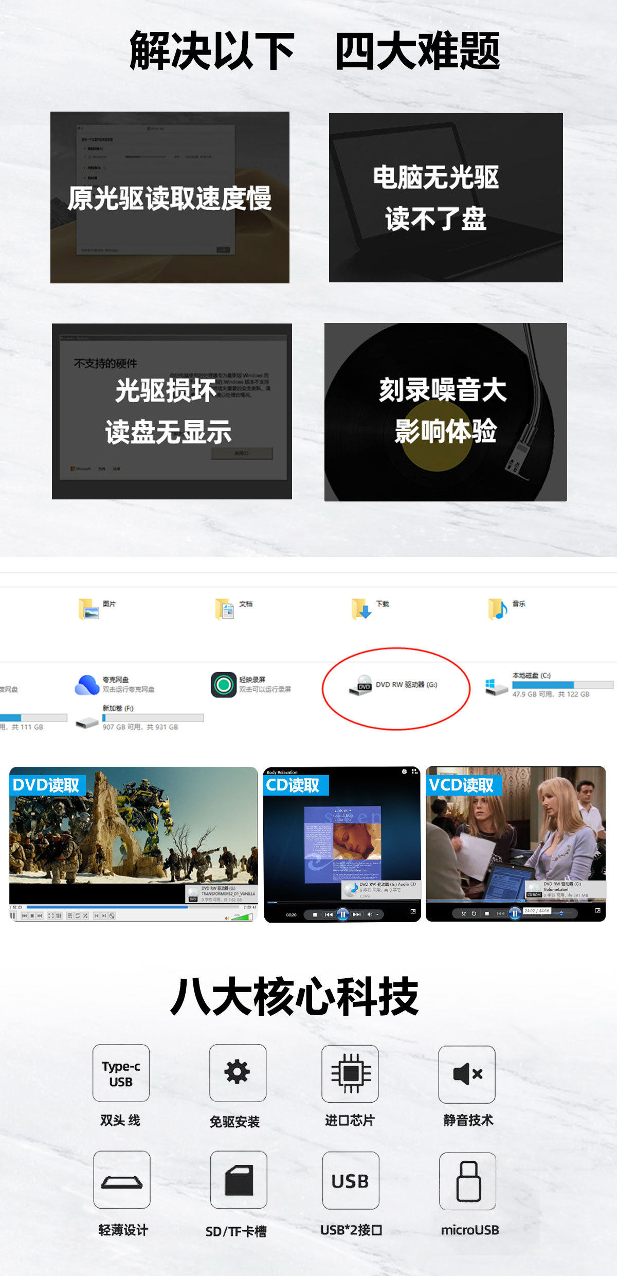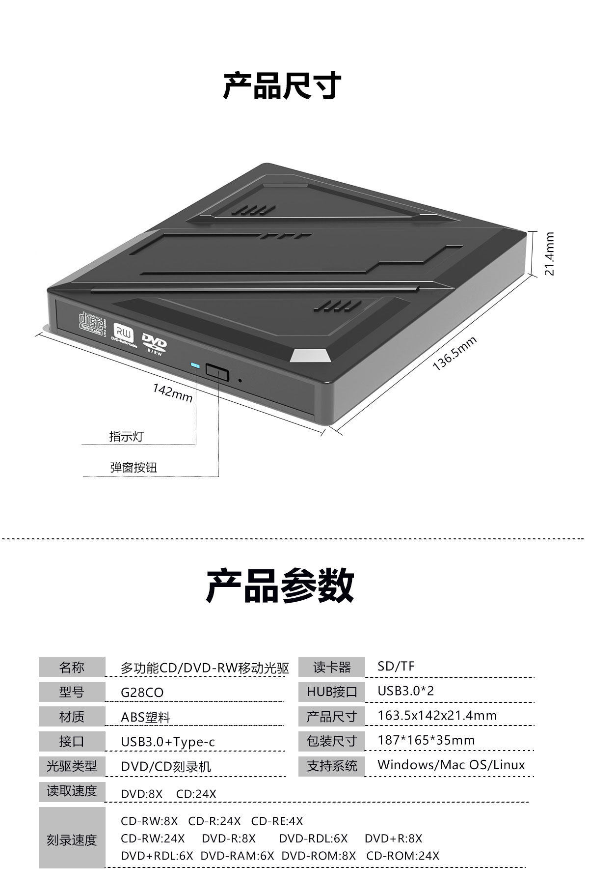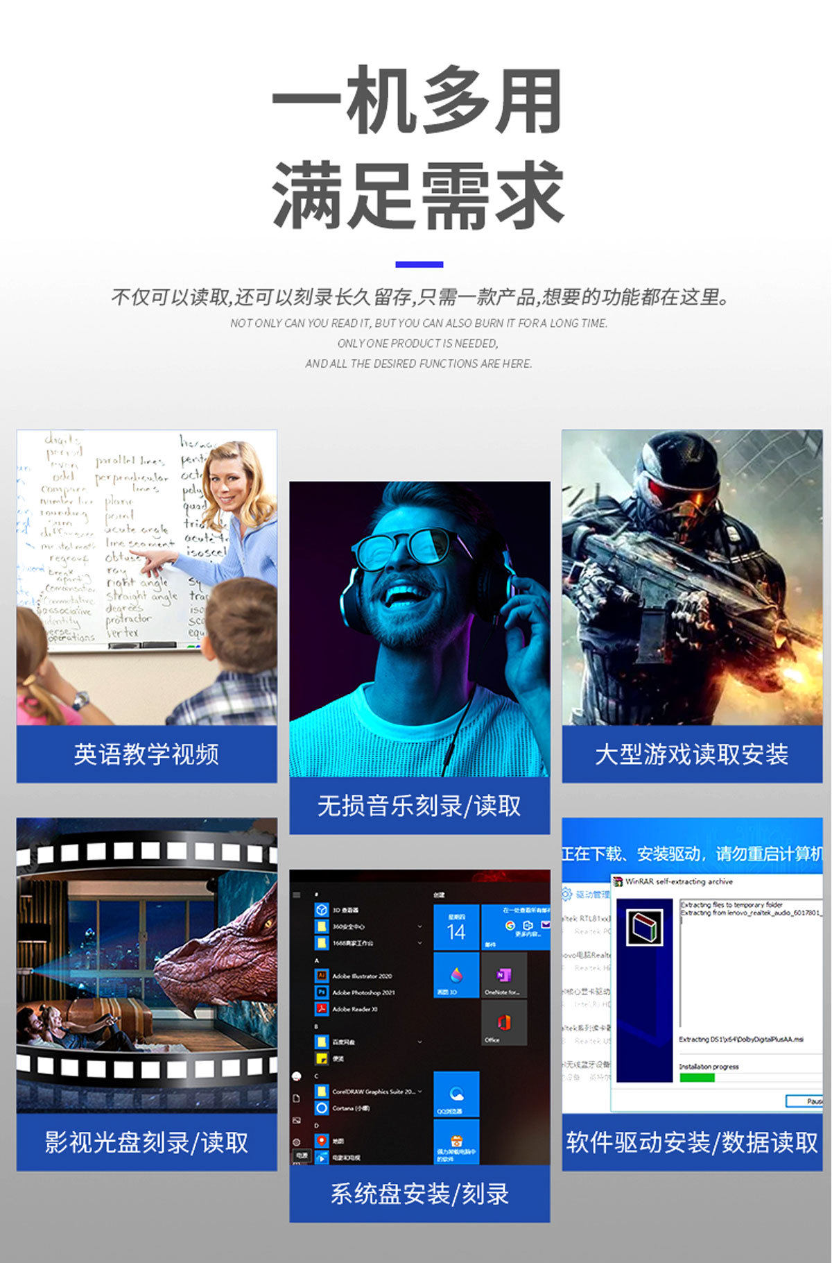 Multi-function external mobile DVD drive desktop notebook Universal USB/SD/TF card reading disc one-click recording