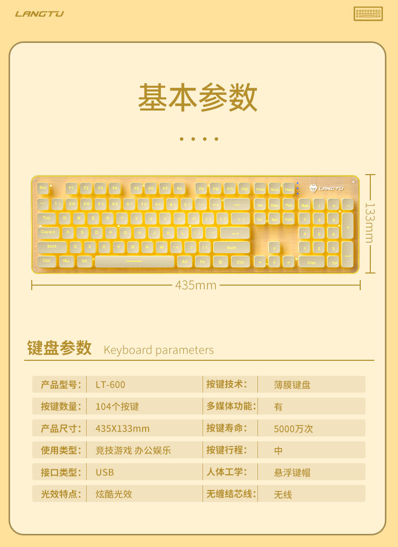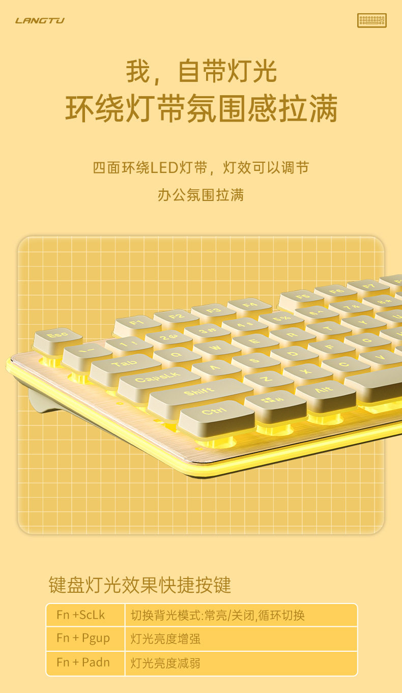Langtu LT600 mechanical feel mute wireless keyboard notebook office waterproof gift keyboard mouse suit