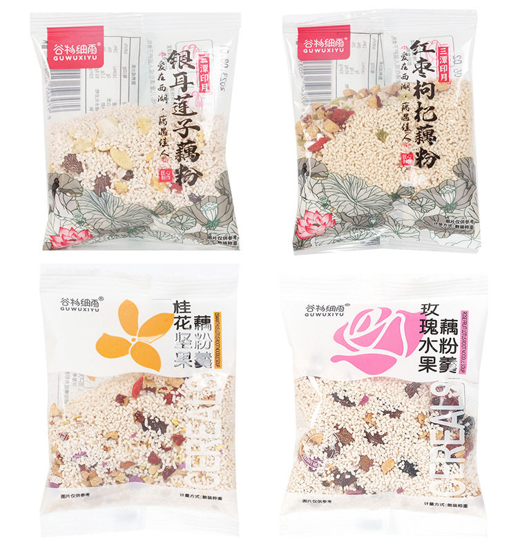 | Packaging specifications | Red dates medlar lotus root starch 5kg * 1 bag,Tremella lotus root starch 5kg * 1 bag,Osmanthus nuts lotus root starch soup 5kg * 1 bag,Rose fruit lotus root starch soup 5kg * 1 bag |