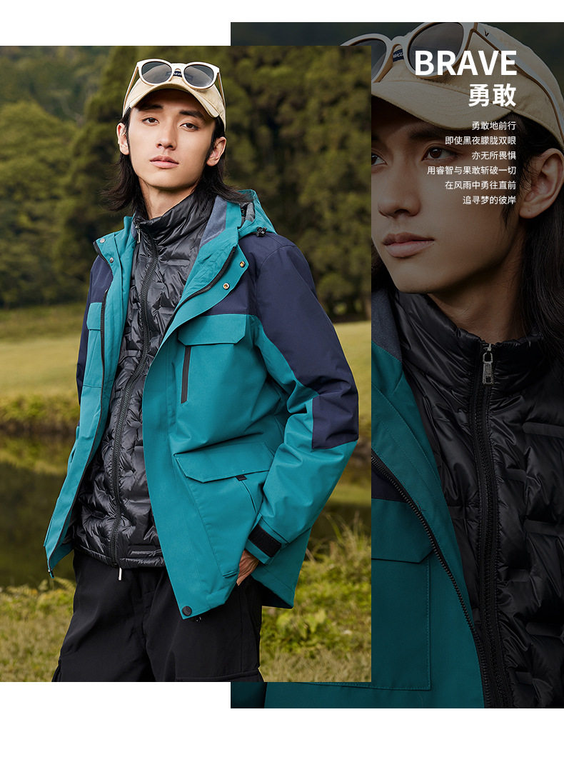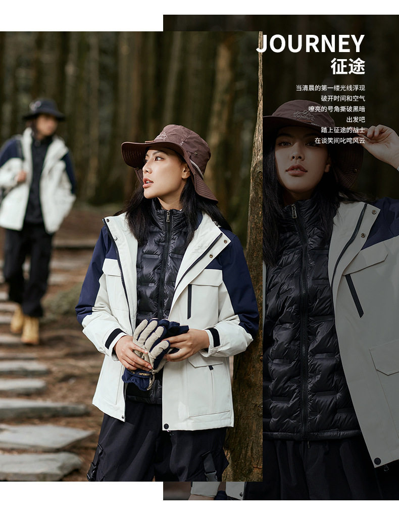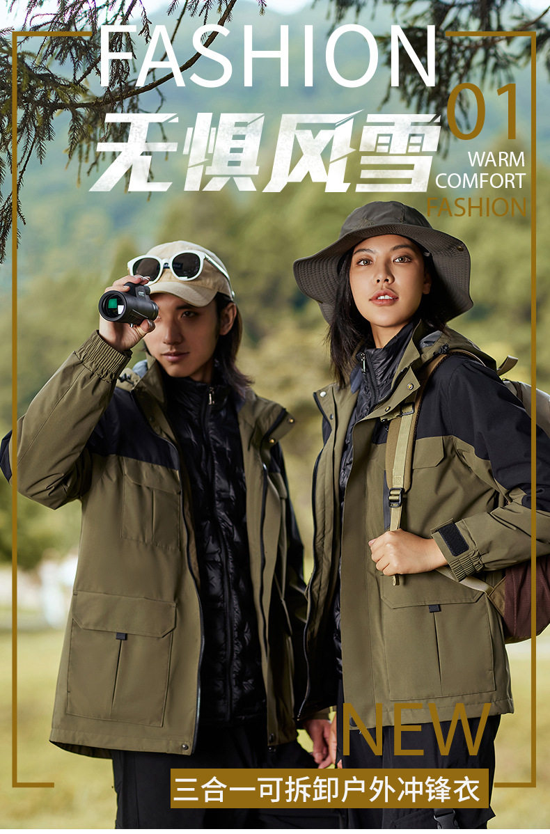 Outdoor jacket autumn and winter men's and women's three-in-one two-piece down thickened windproof waterproof mountaineering warm jacket