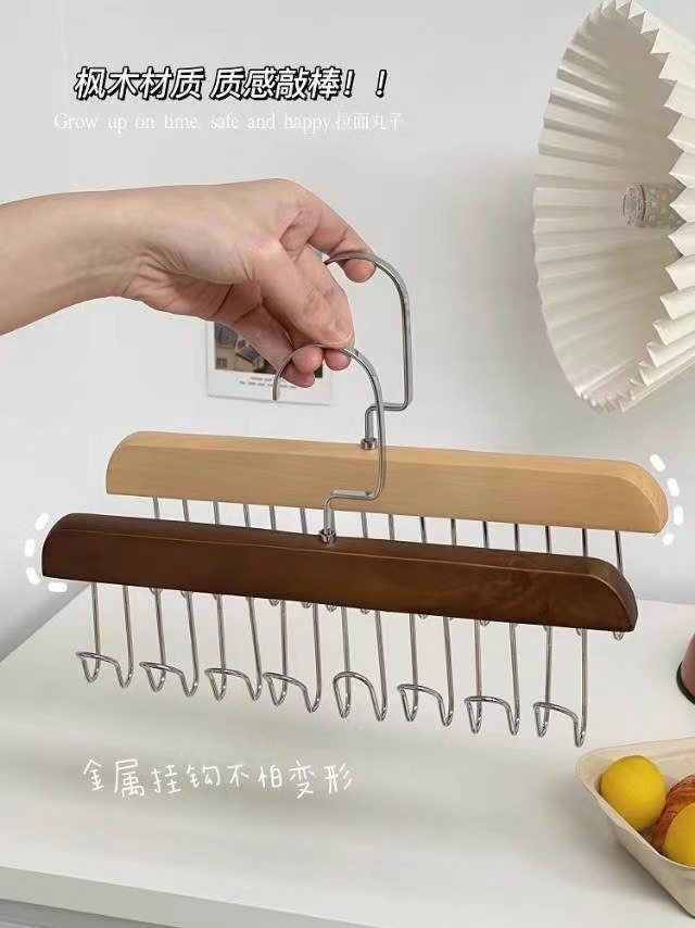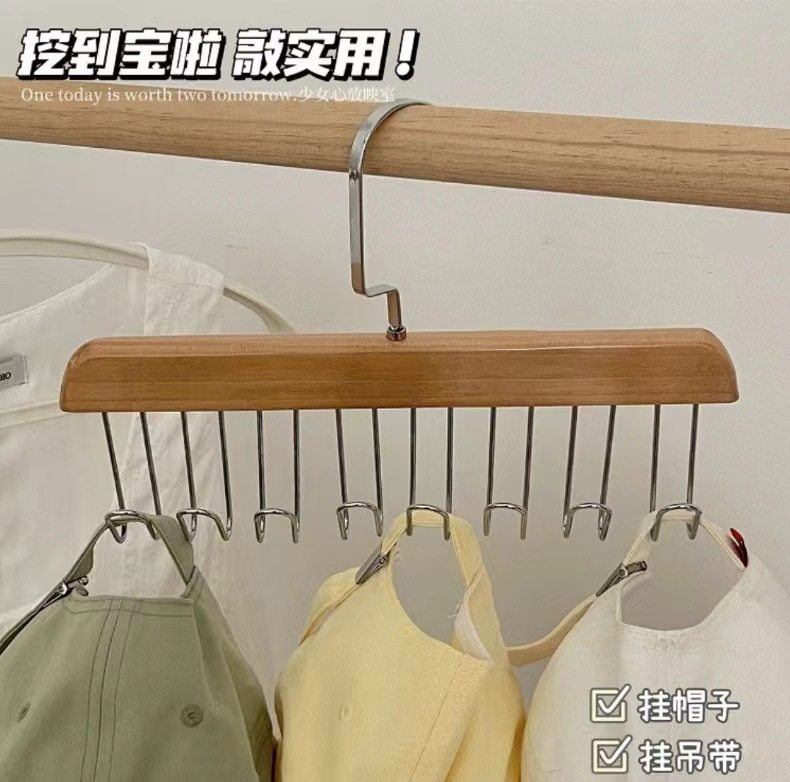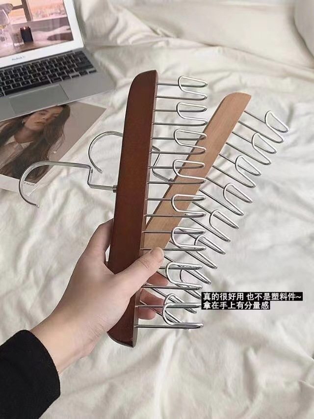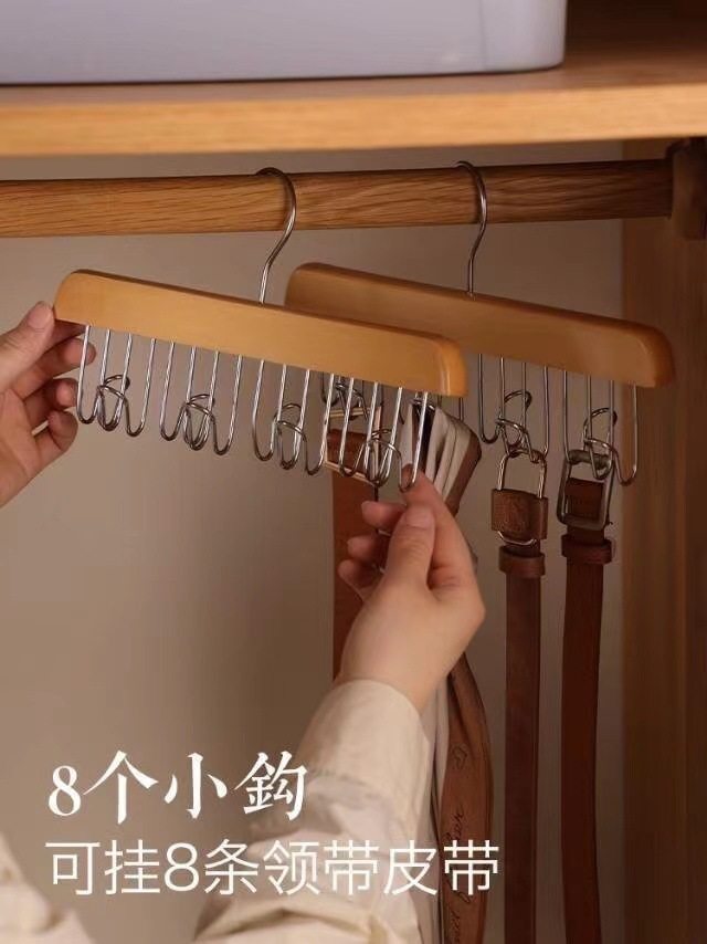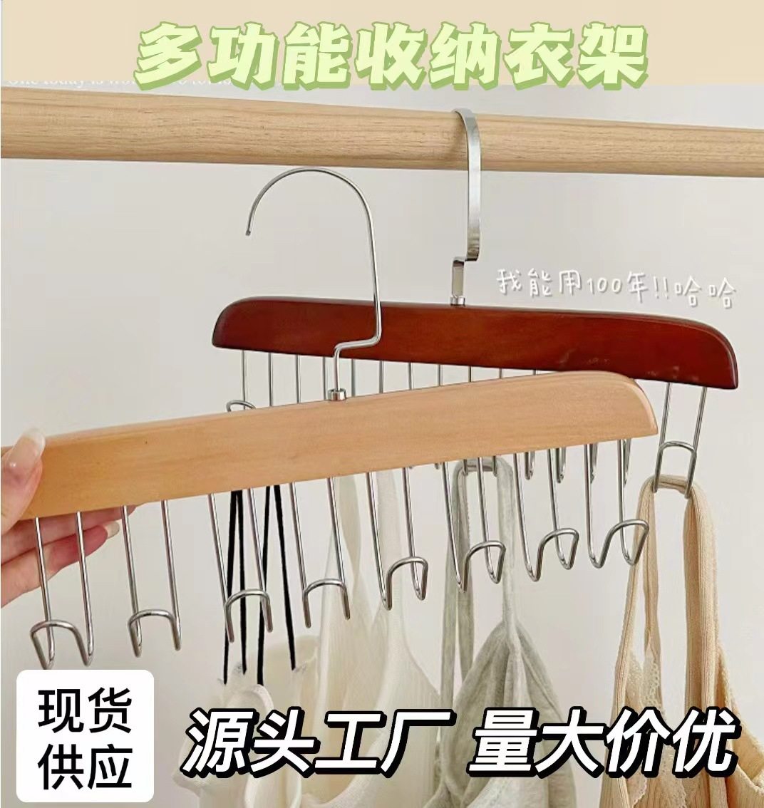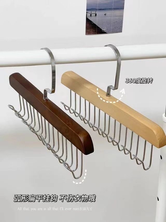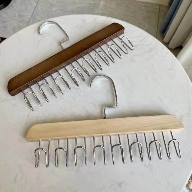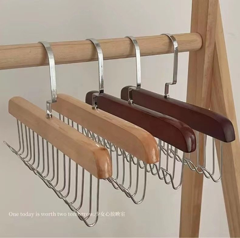 8-hook multi-functional wooden sling hanger vest tie hook solid wood wave drying hanger for student dormitory