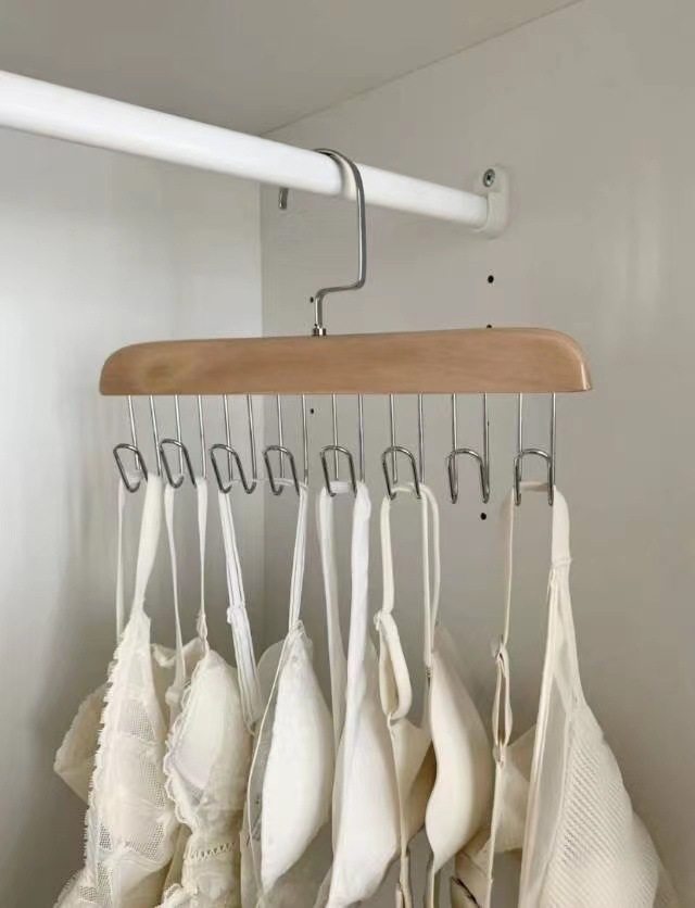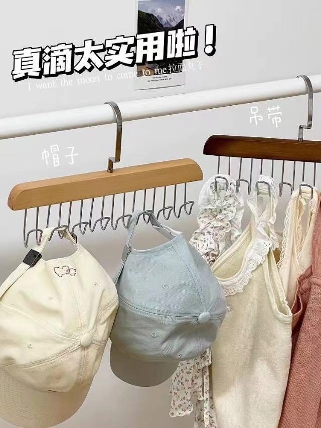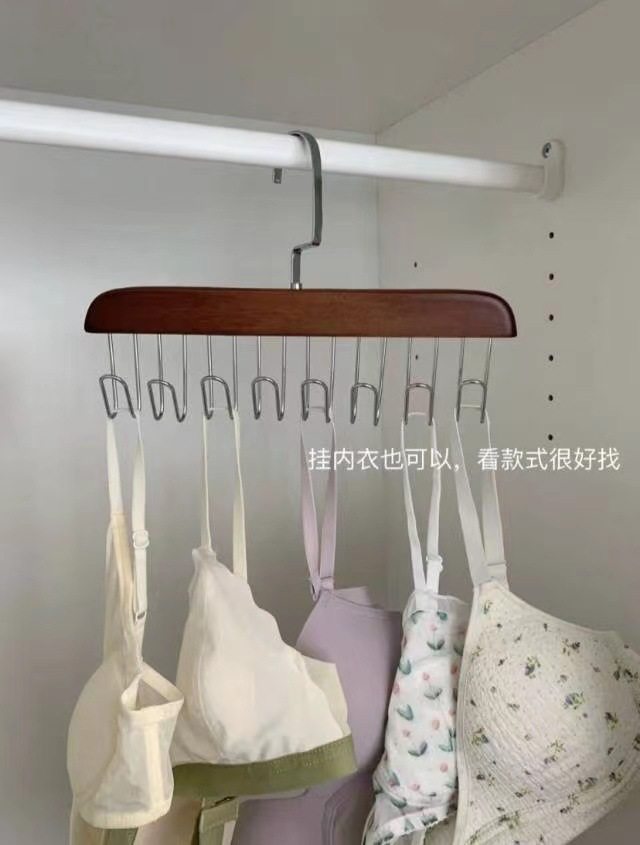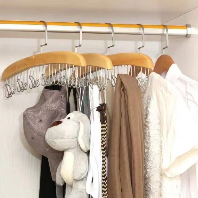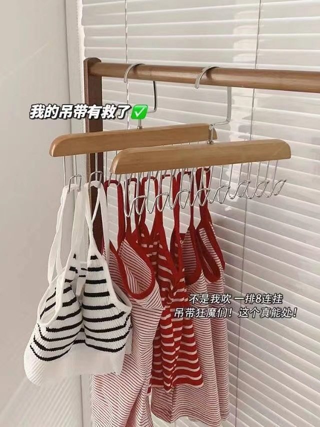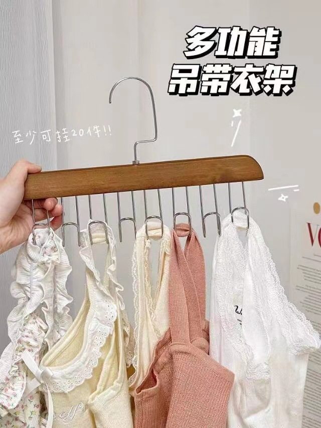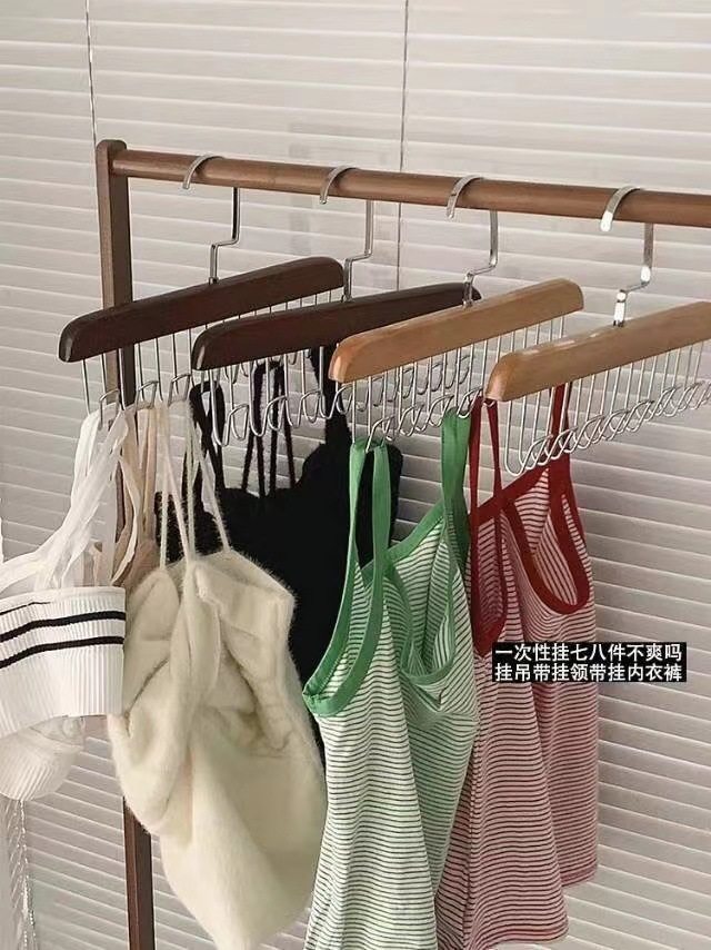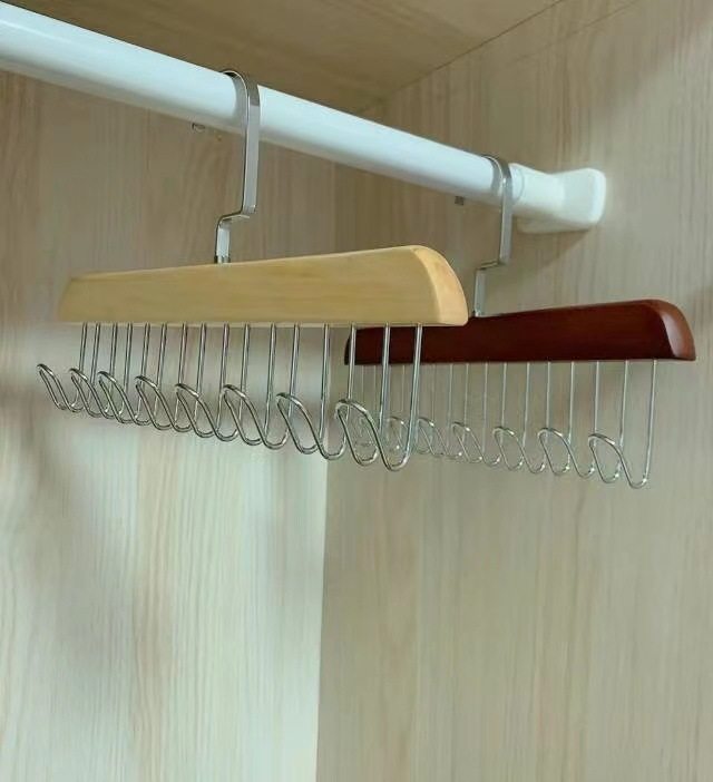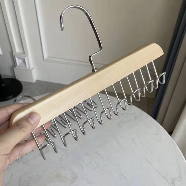 8-hook multi-functional wooden sling hanger vest tie hook solid wood wave drying hanger for student dormitory
