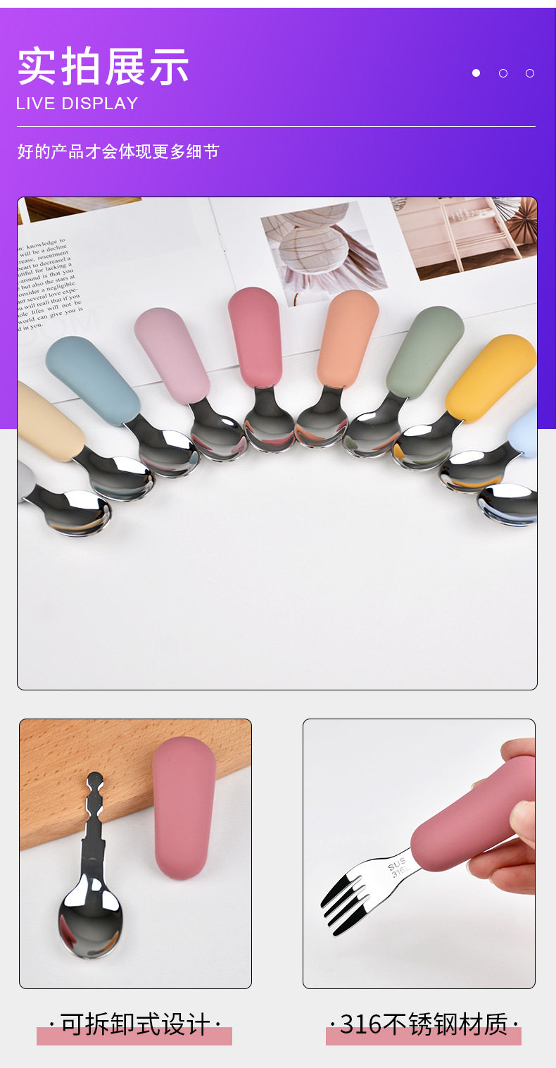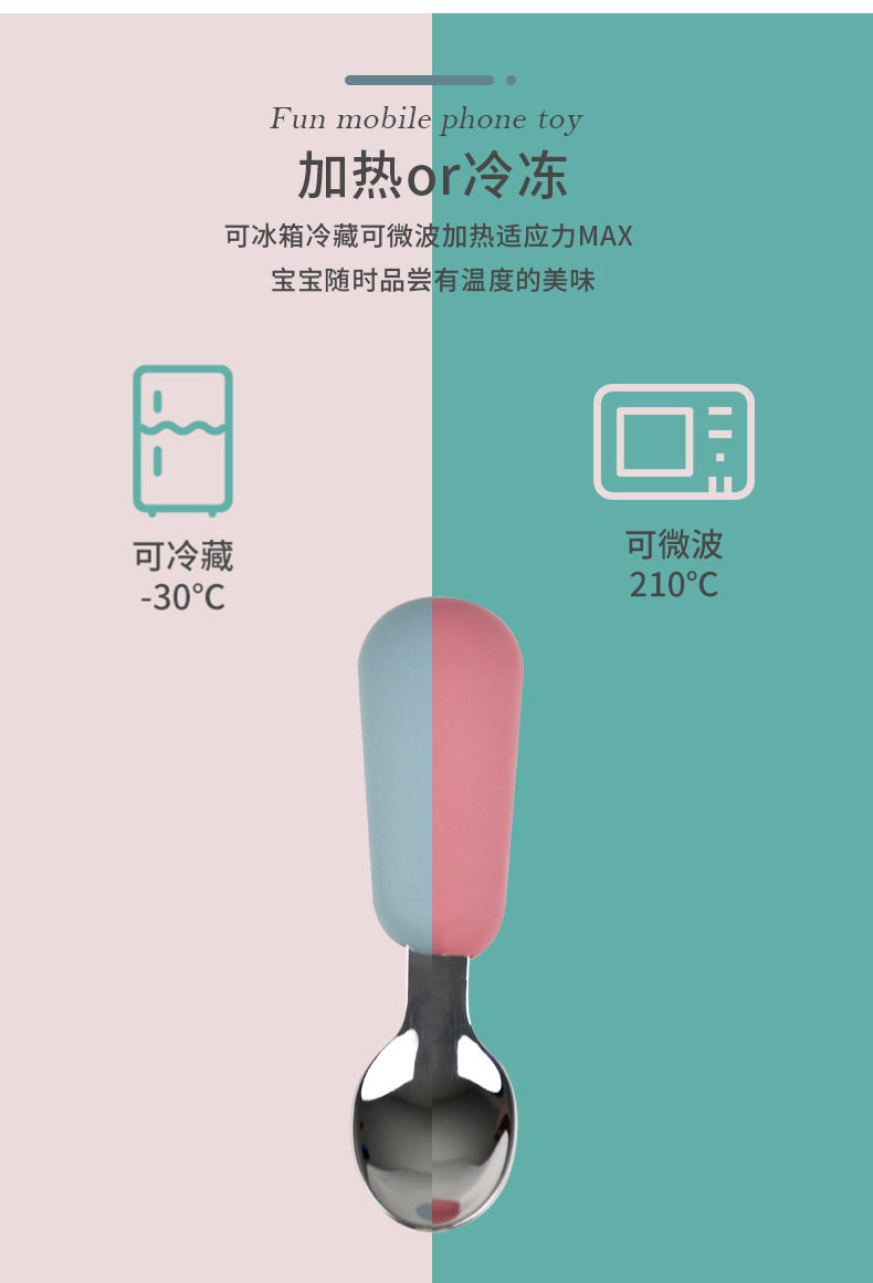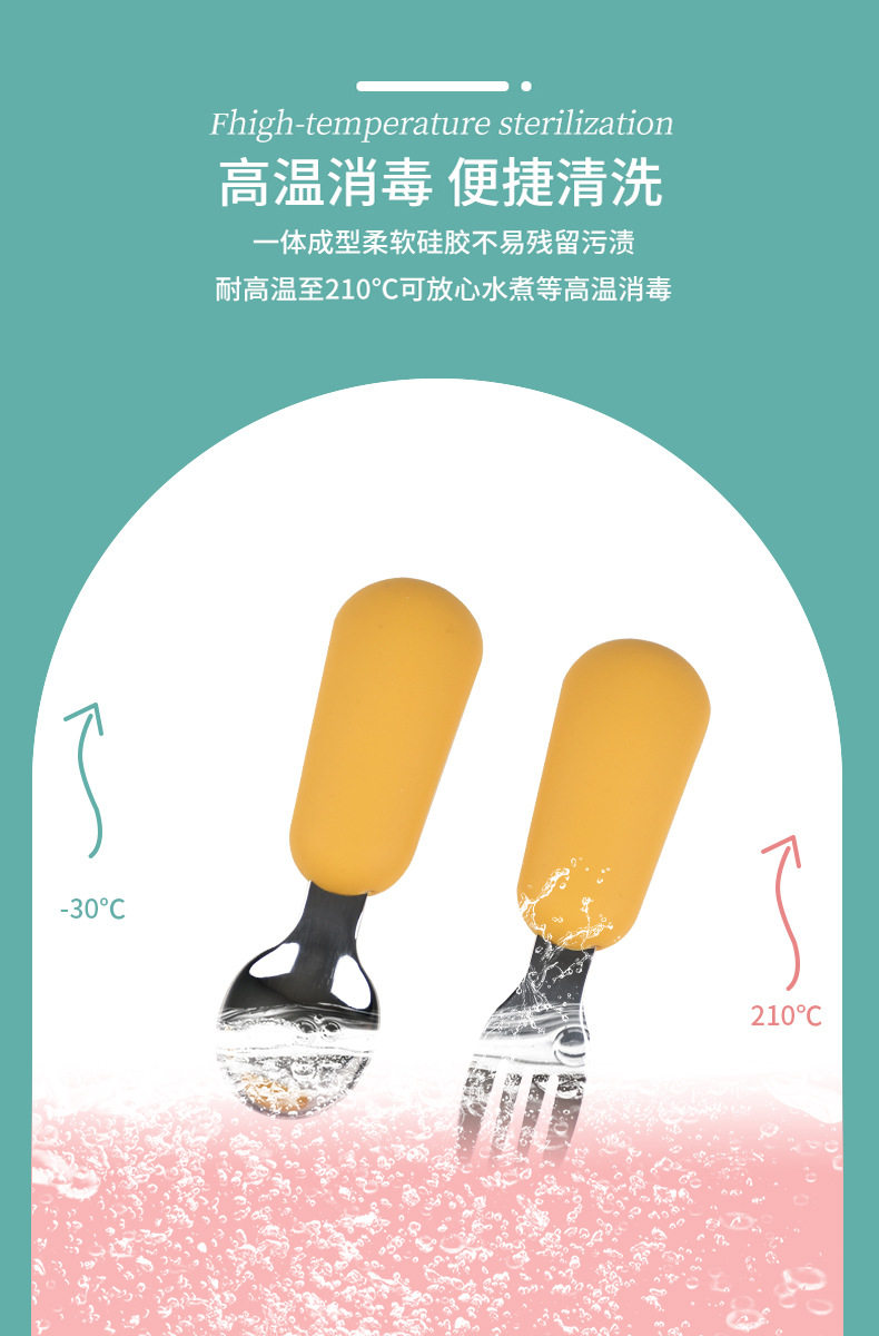 Fruit Scooping Spoon Silicone 316 Stainless Steel Fork Spoon Children's Feeding Tableware Training Set Feeding Supplementary Food