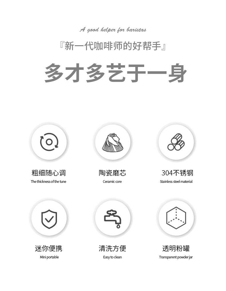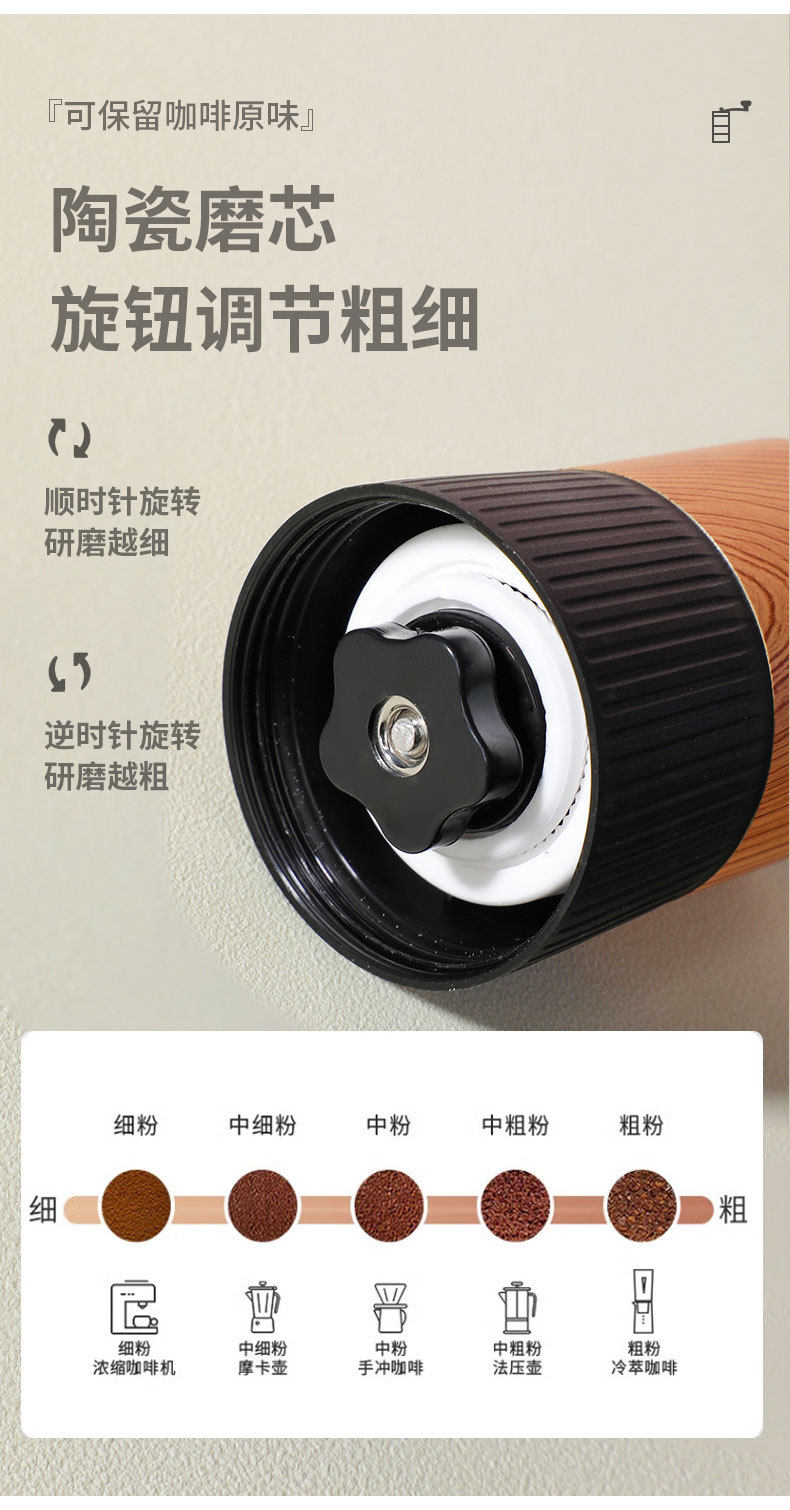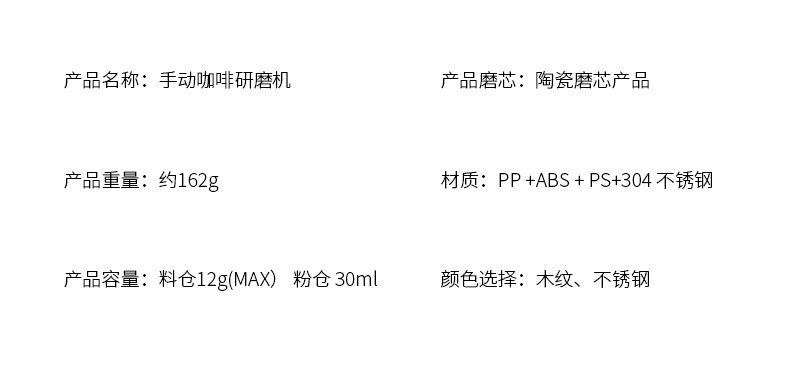 | Specifications | 304 steel hand grinder [silver]],304 steel hand grinder [wood grain]],304 steel hand grinder [milk white]] |