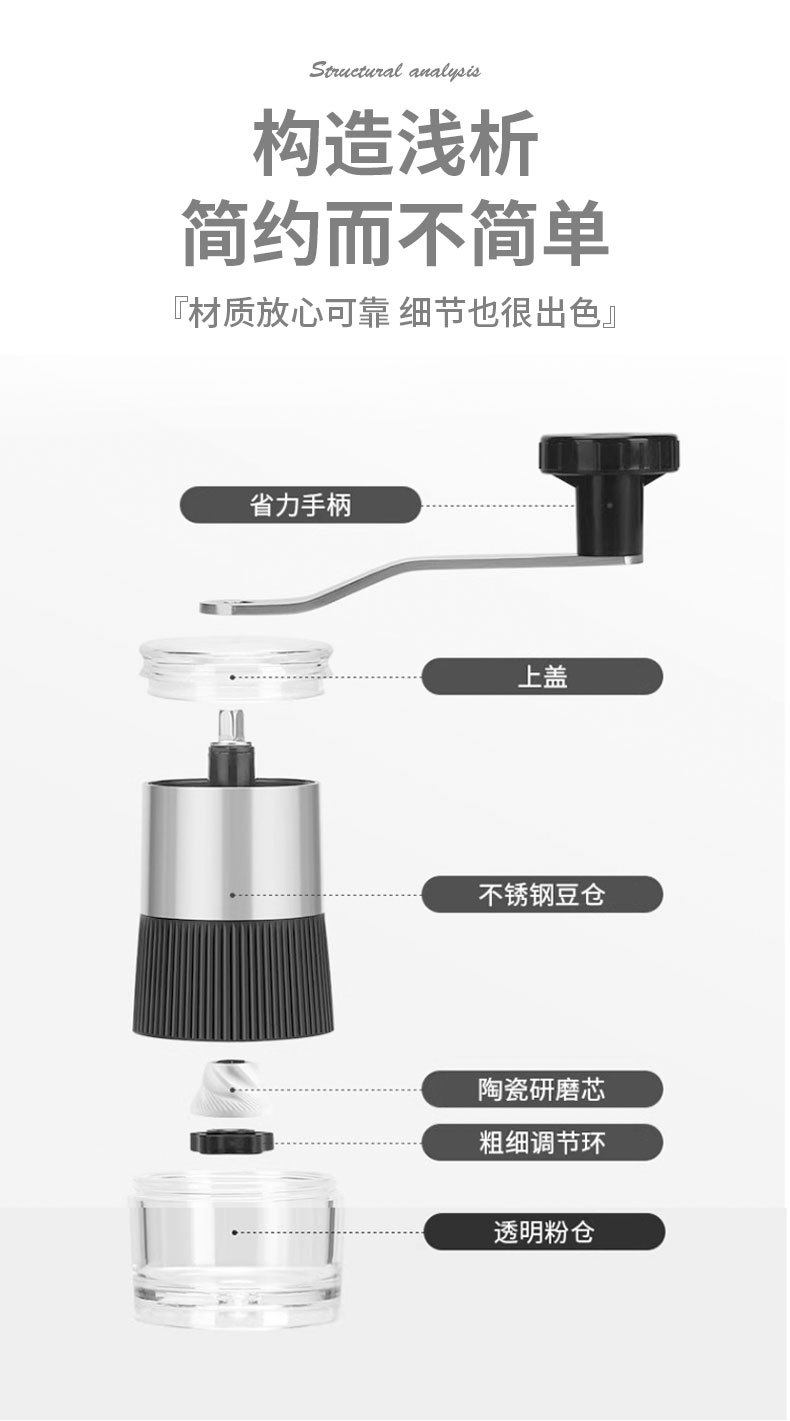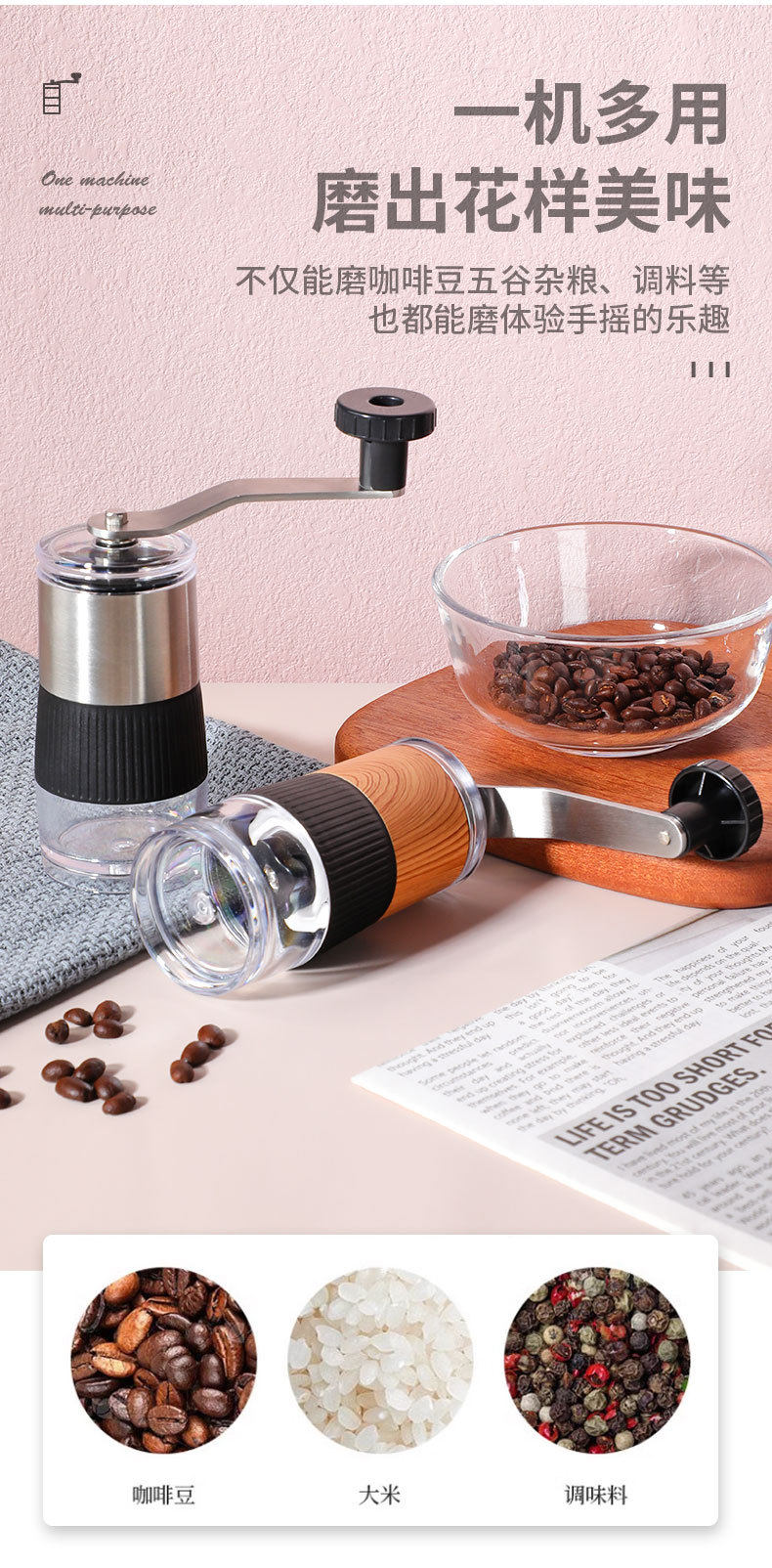 Cross-border hot mining 304 stainless steel hand-cranked coffee machine office adjustable thickness manual grinder portable grinder