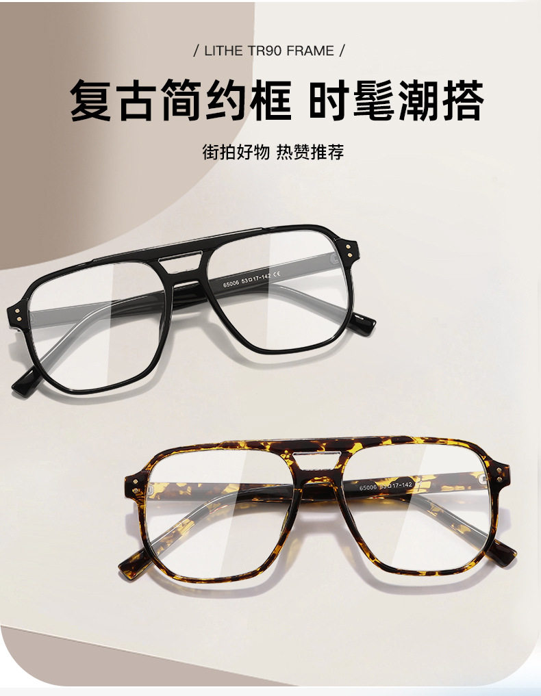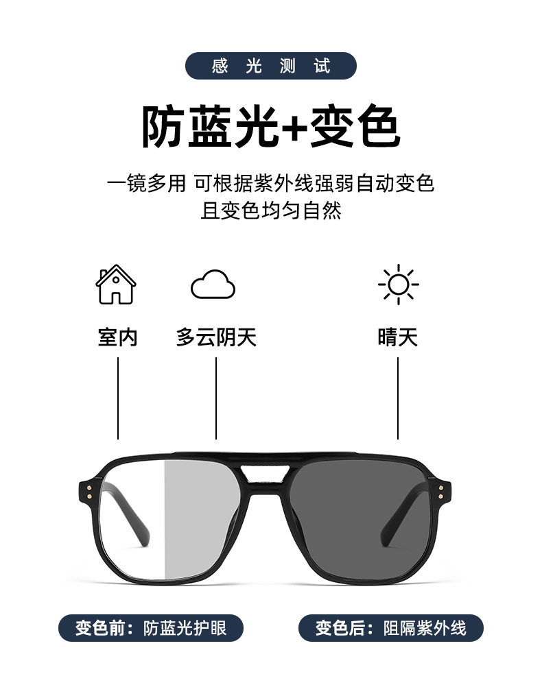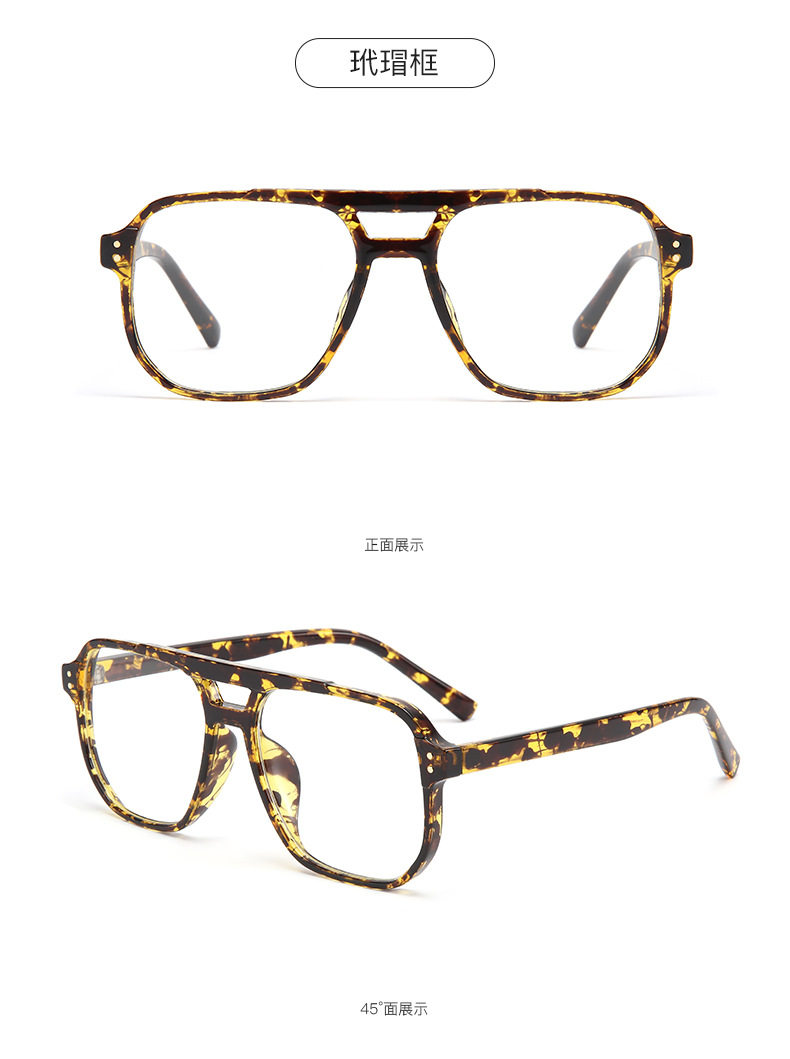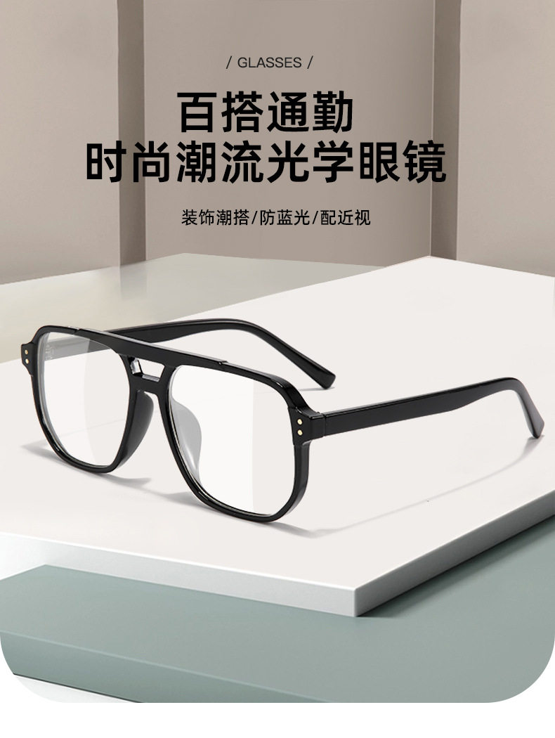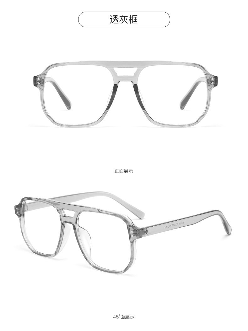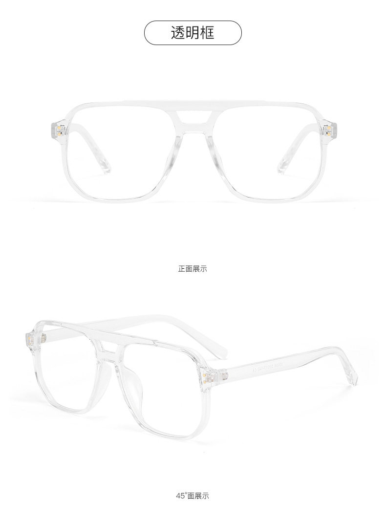 Xiaohongshu Large Frame Aviator Double Bridge Glasses Frame Men's Trendy Transparent Photochromic Glasses Women's Anti-Blue Light Goggles Hong Kong Style