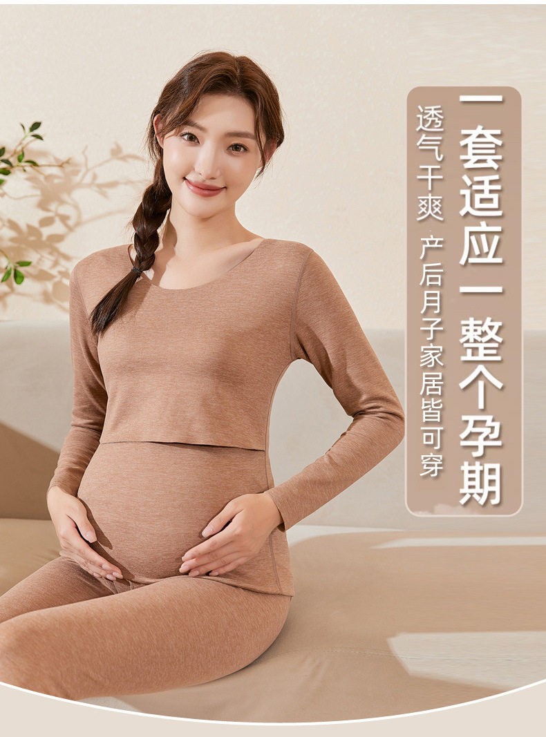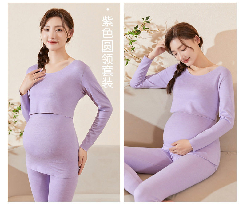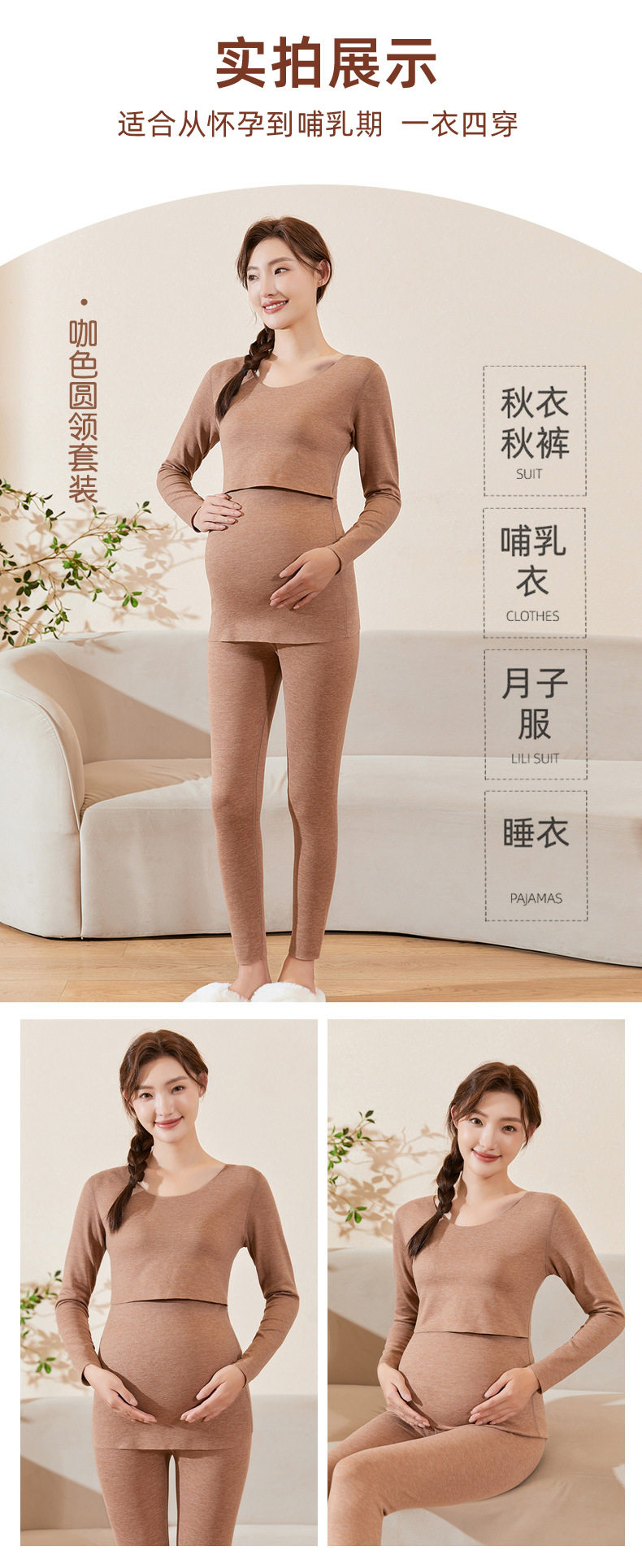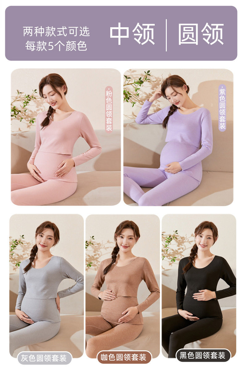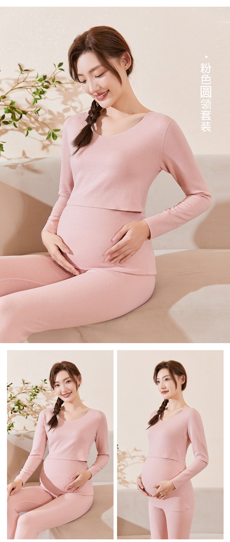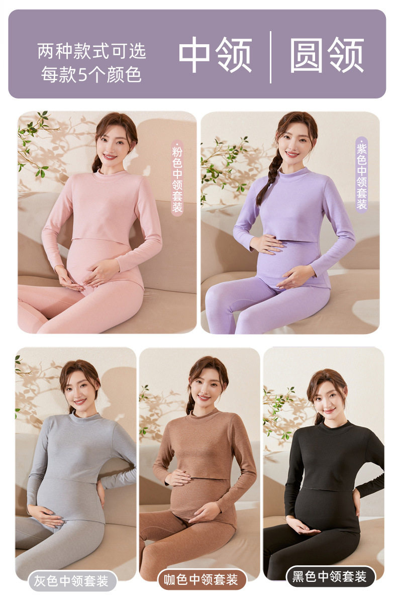 Pregnant women's autumn clothes long pants suit de Velvet wool silk pregnant women's pajamas thermal underwear postpartum nursing confinement clothes