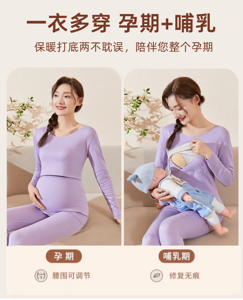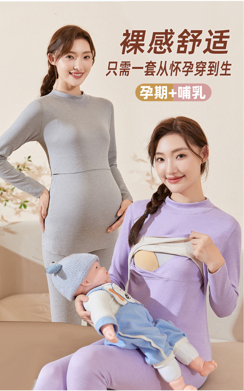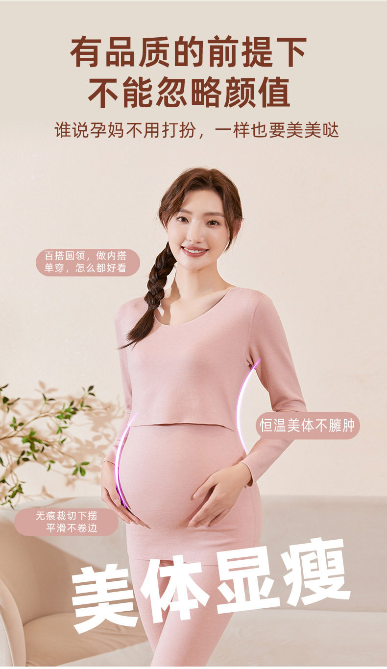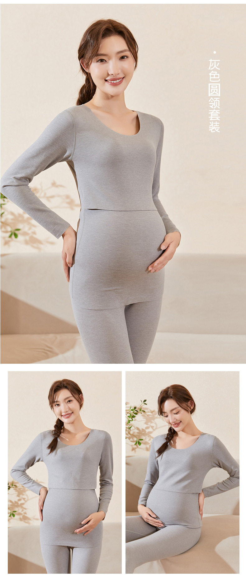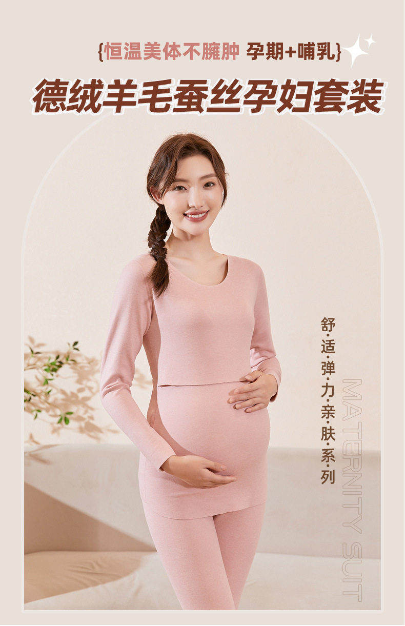 Pregnant women's autumn clothes long pants suit de Velvet wool silk pregnant women's pajamas thermal underwear postpartum nursing confinement clothes