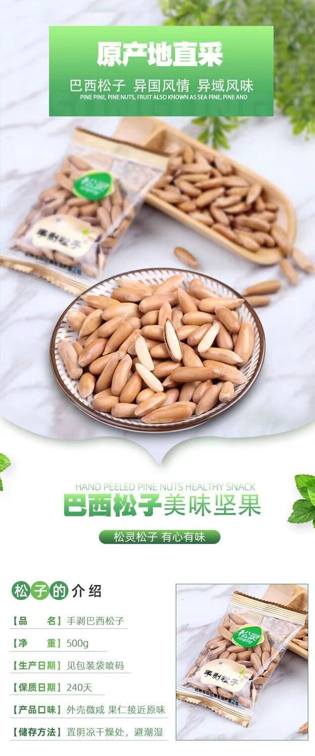 Songling Hand-Peeled Brazilian Pine Nuts 2024 Afghan Small Bag 500g Large Capsuless Nuts Roasted Seeds and Nuts Long Capsuless