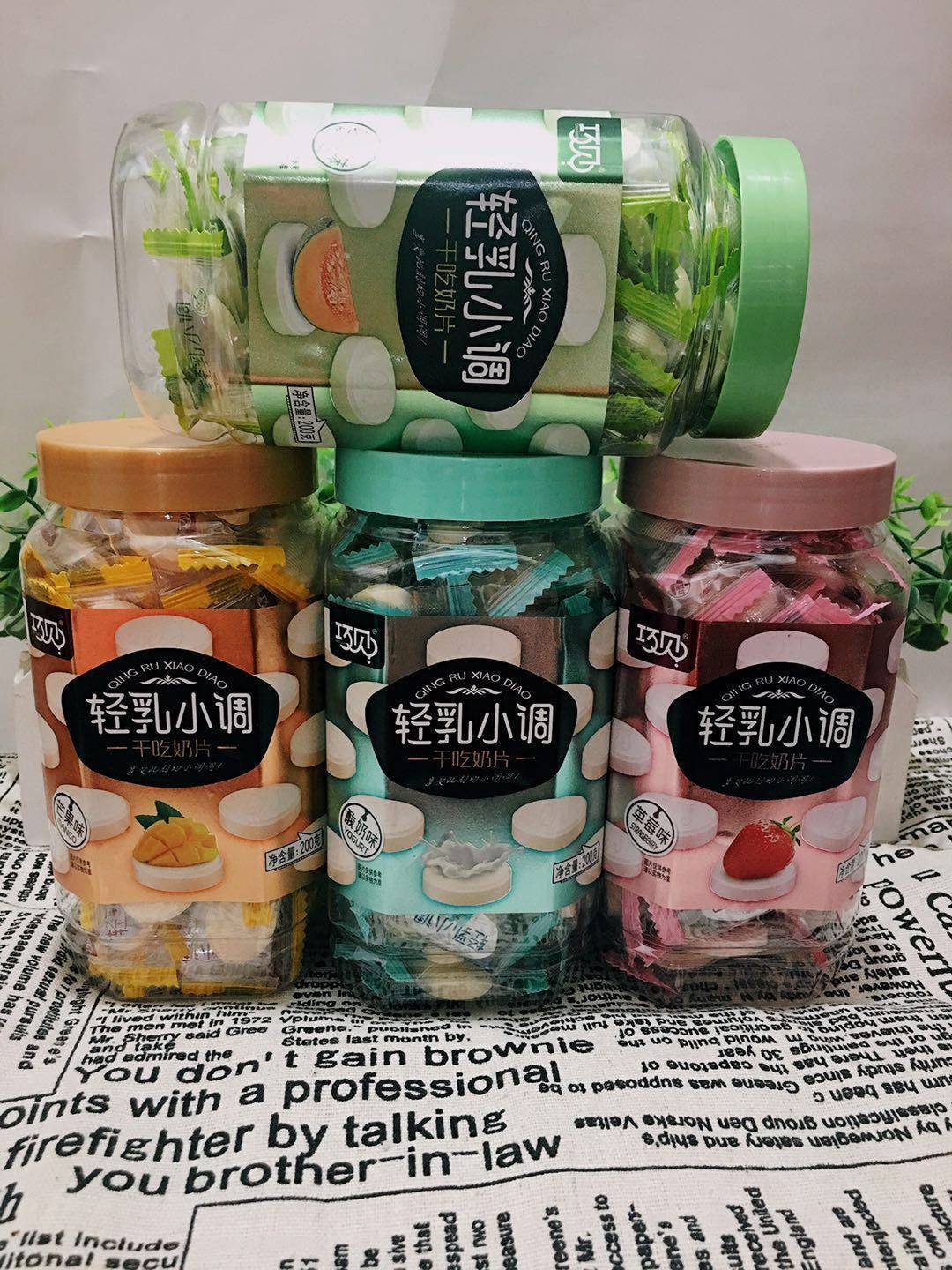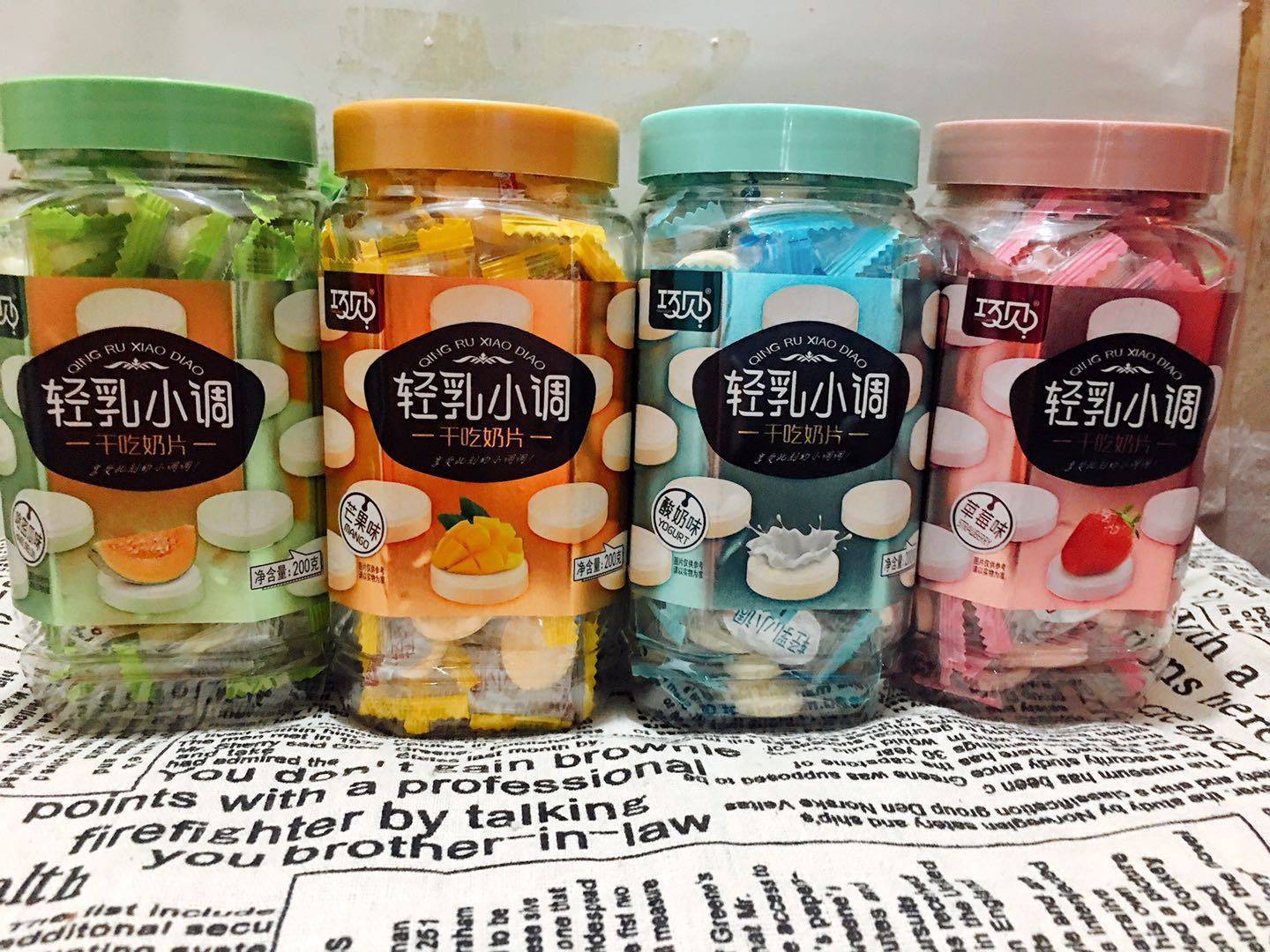 Qiaoxiao light milk small tone dry milk slices Strawberry Mango fruit flavor dry milk slices nostalgic snacks children candy milk slices