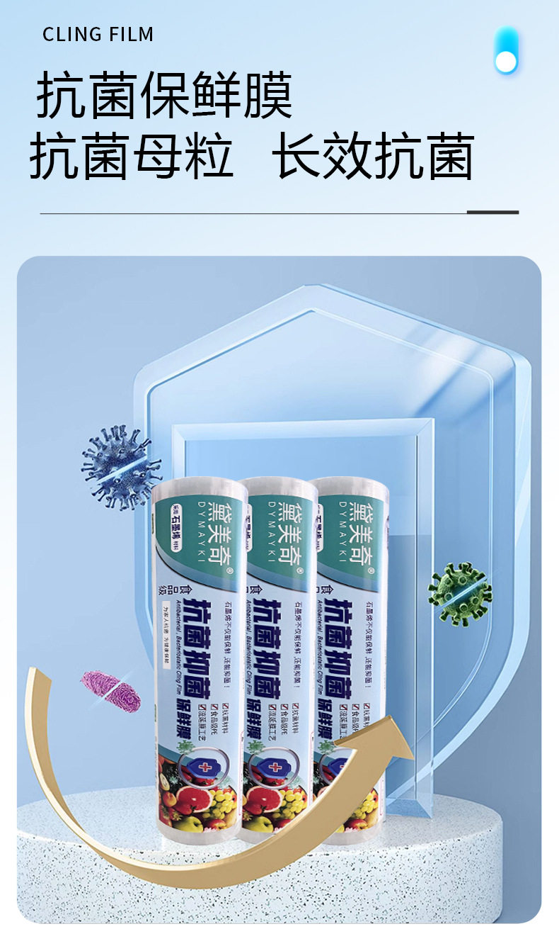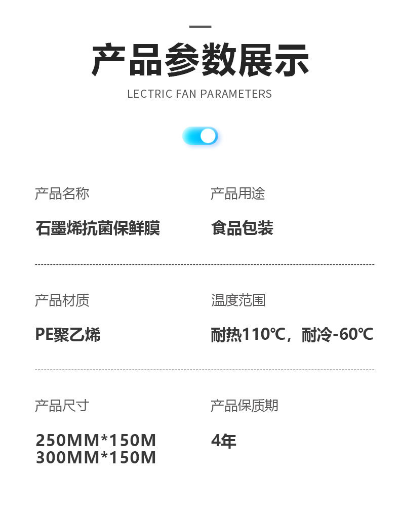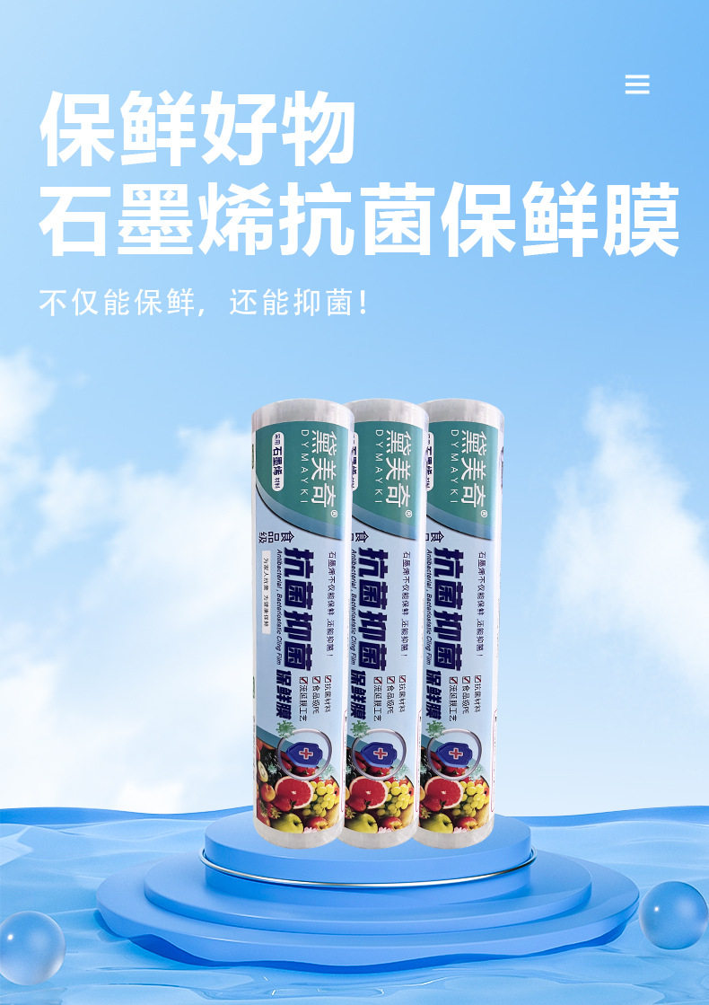 Graphene antibacterial plastic wrap food grade household fresh-keeping high temperature resistant disposable fruit commercial large roll wholesale