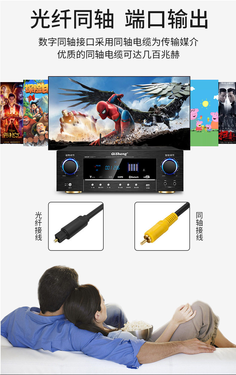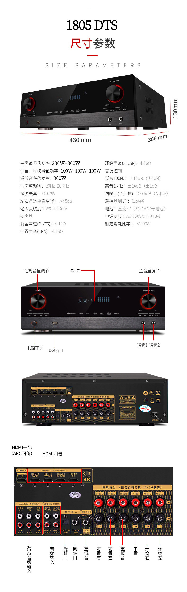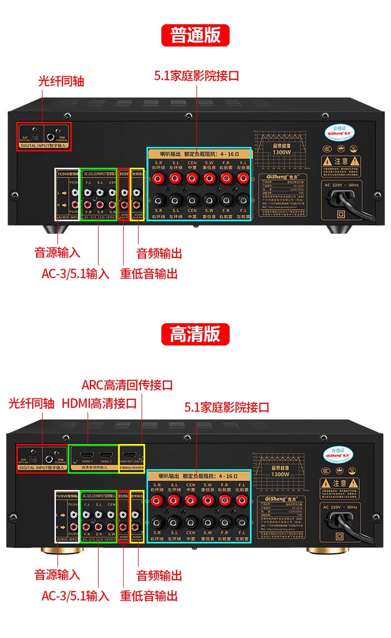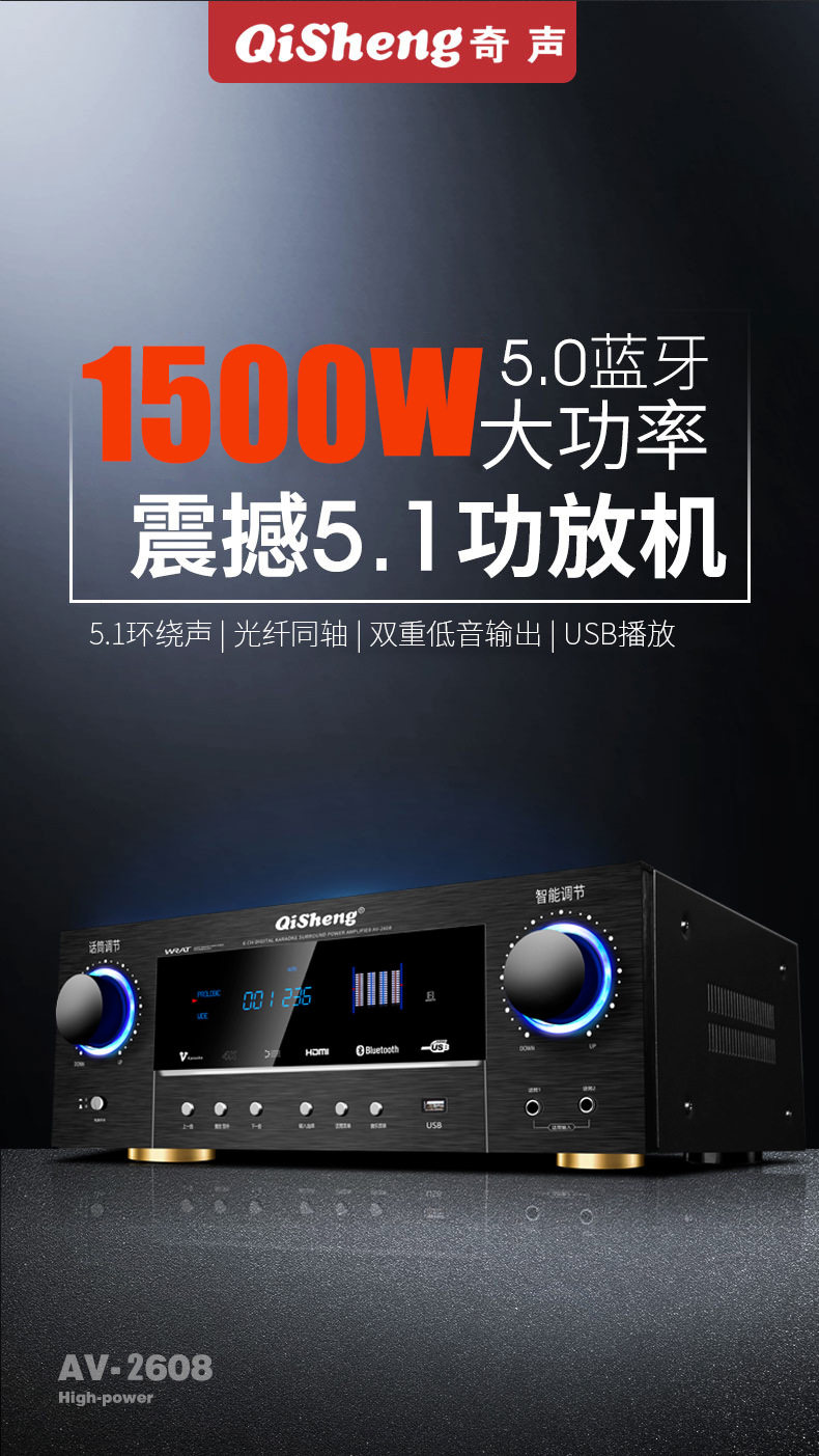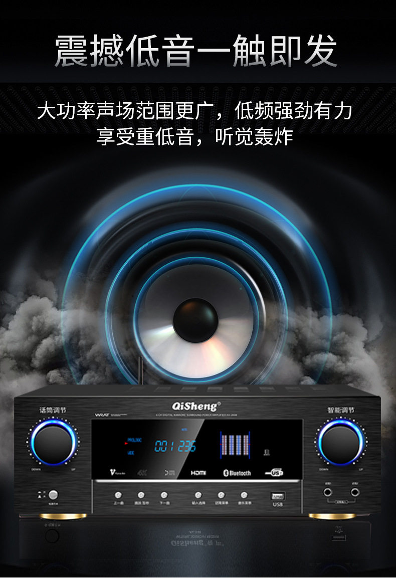 Power amplifier 5.1 home high-power professional Bluetooth HIFI fever subwoofer home theater amplifier