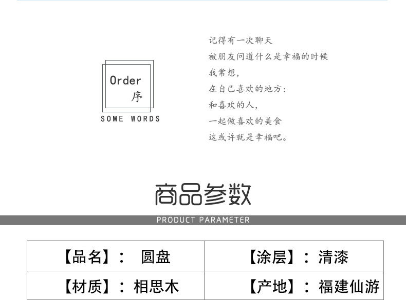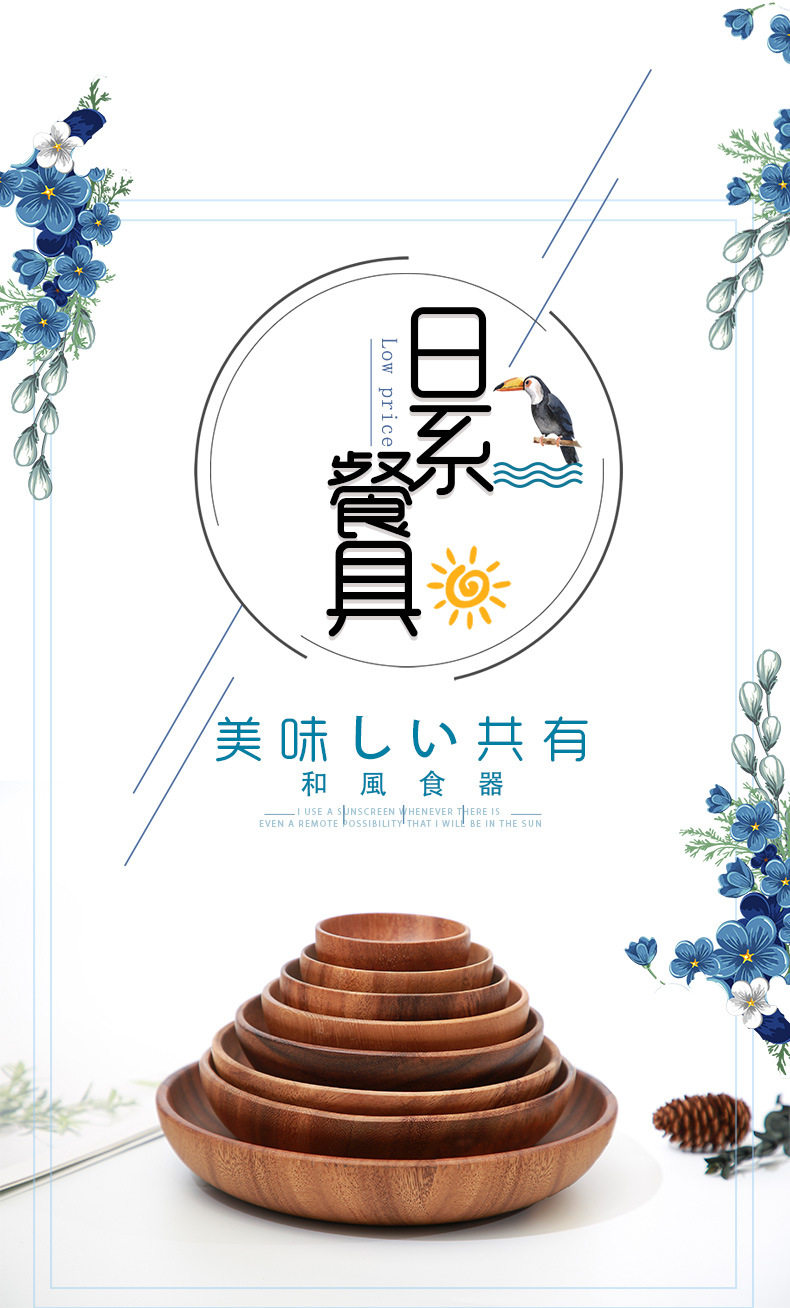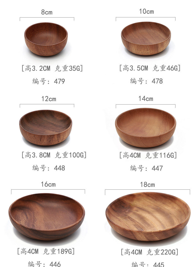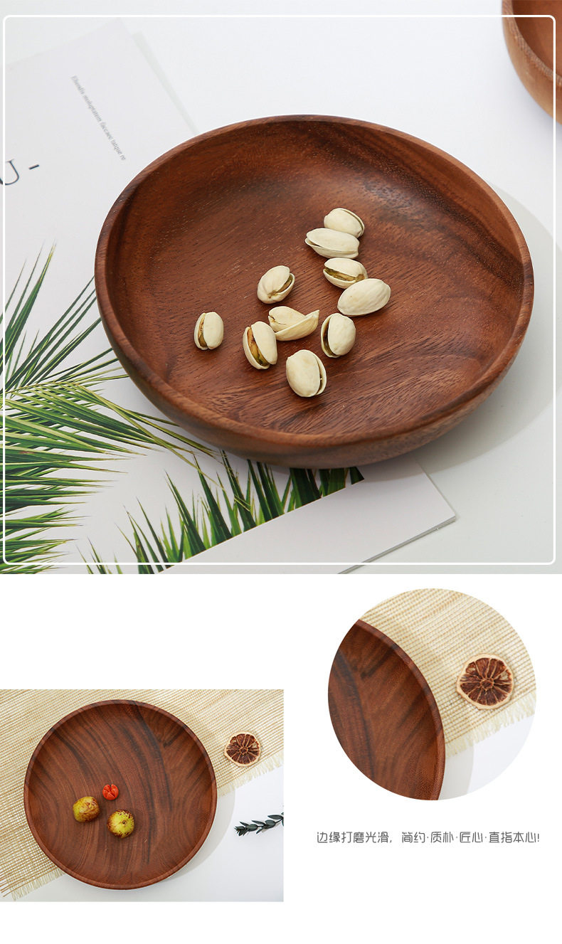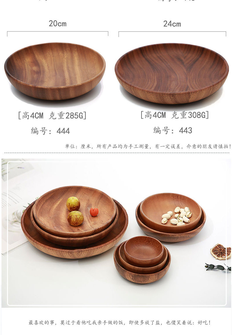 Japanese-style solid wood round plate creative fruit plate acacia wood household plate multi-specification melon and fruit dessert wooden plate carving