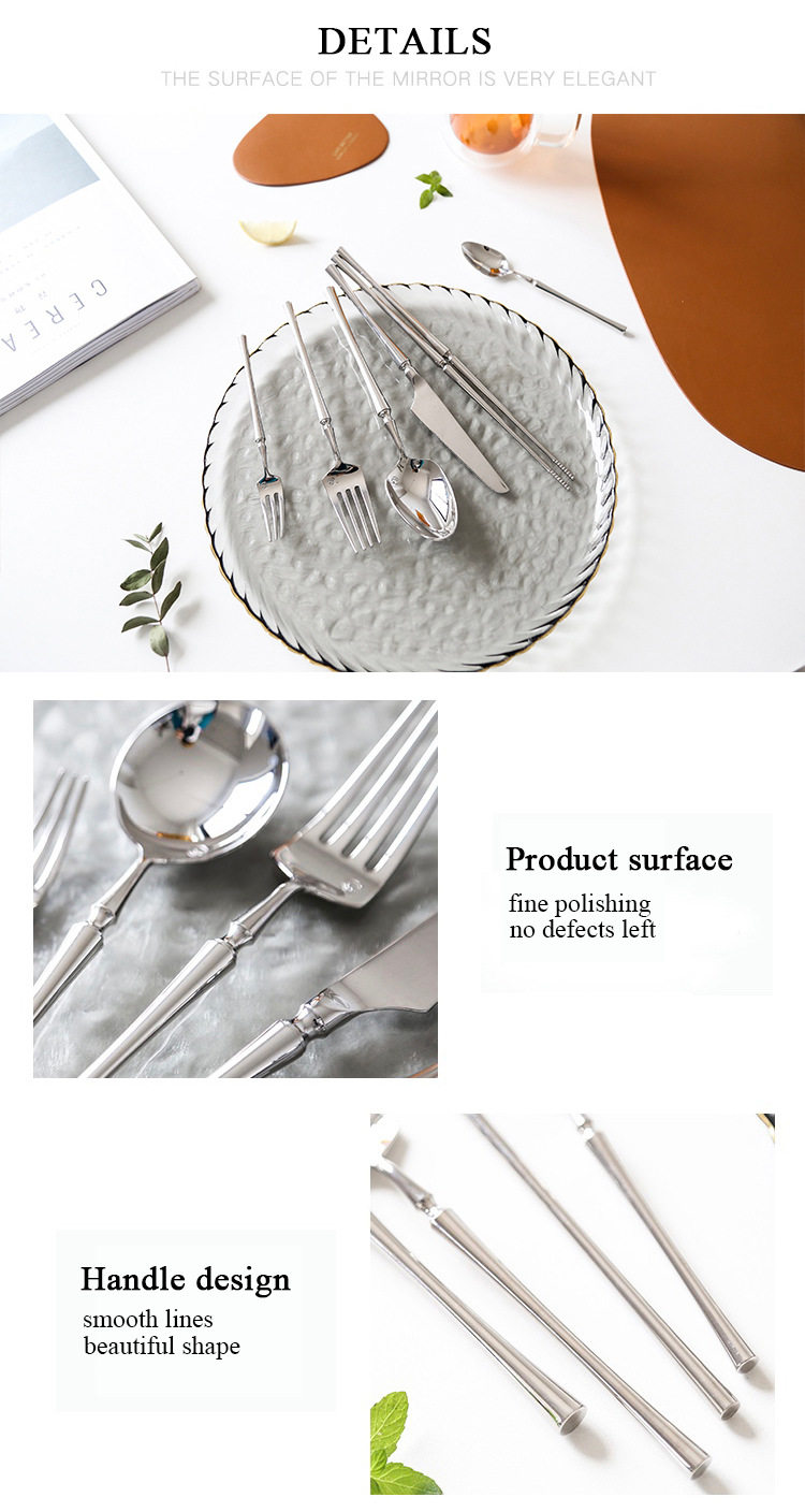 | Color | Main knife,steak knife,main fork,Main meal spoon,Main Tangyuan,Dessert knife,Dessert fork,Dessert spoon,Three-tooth cake fork,teaspoon,fruit fork,Long handle spoon,Chopsticks,square chopsticks |