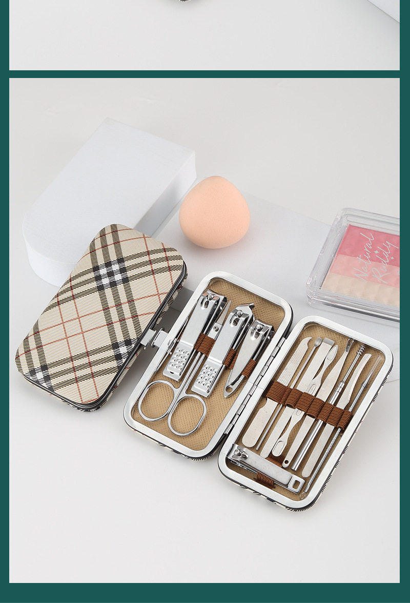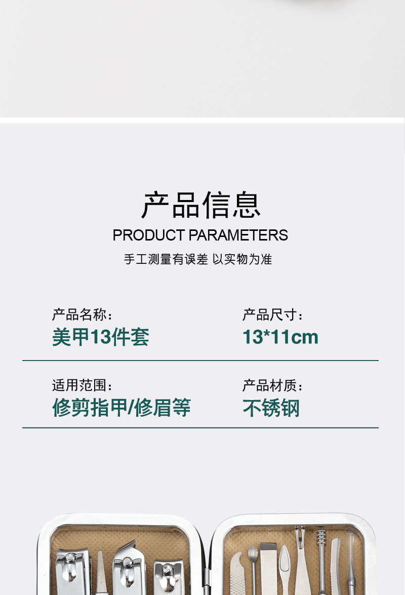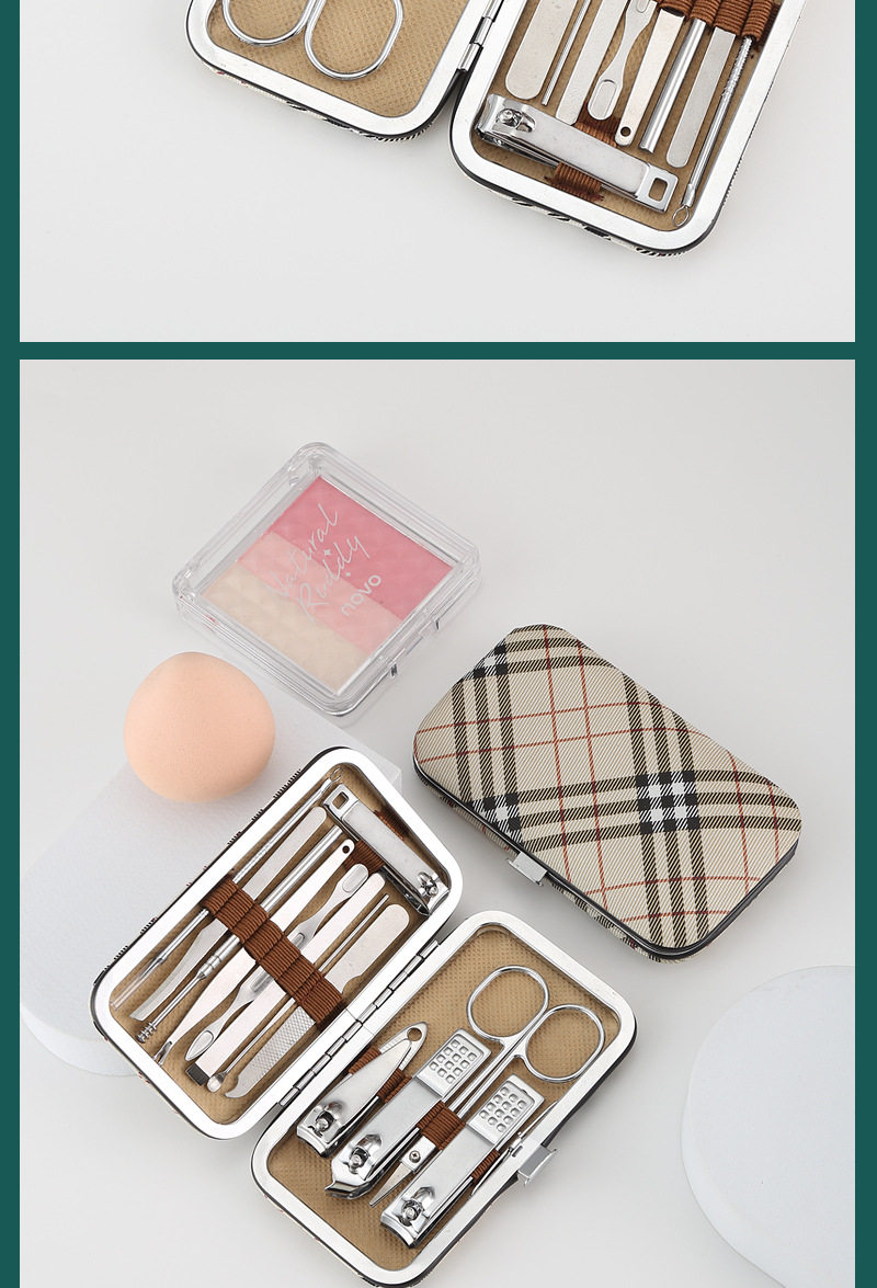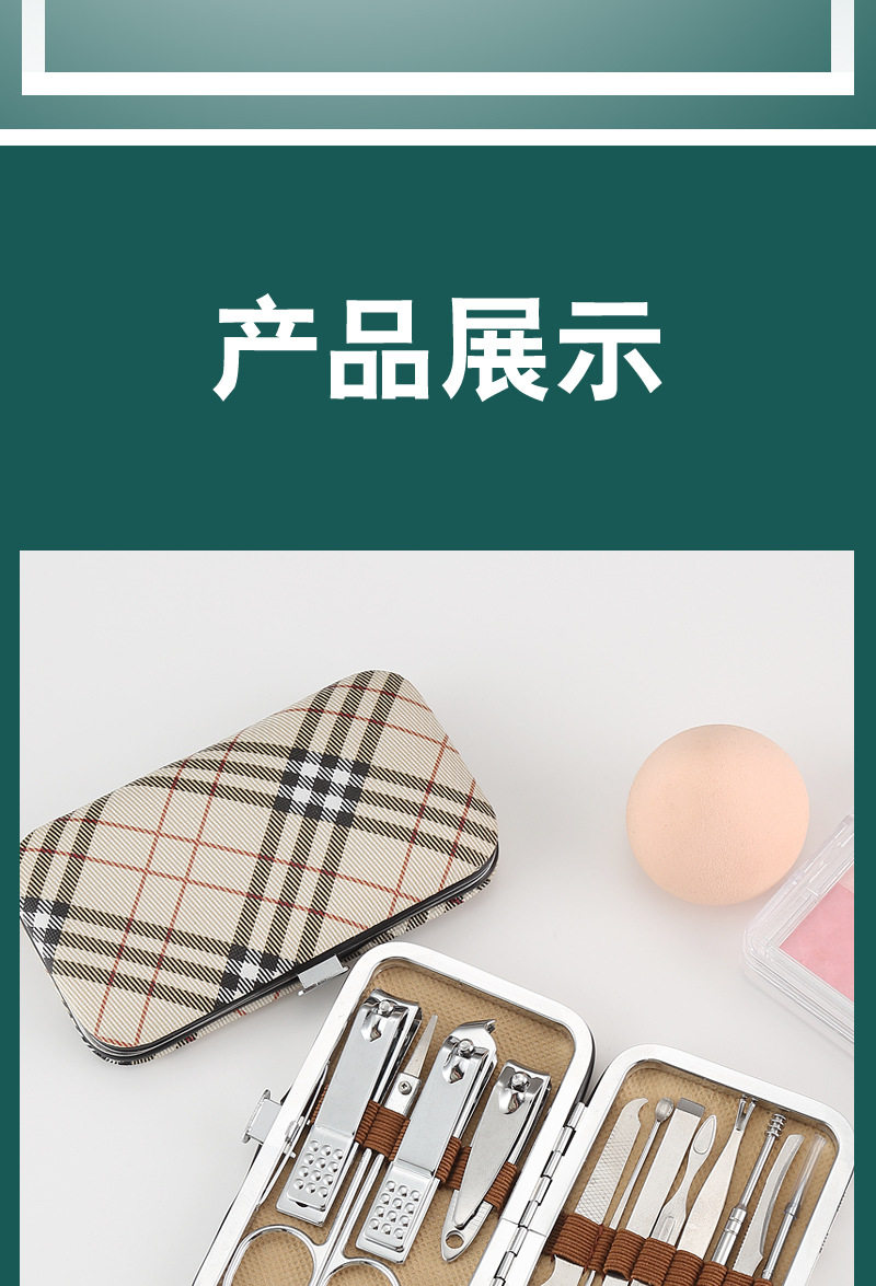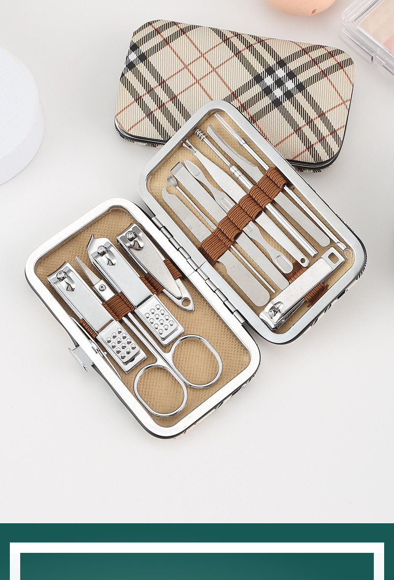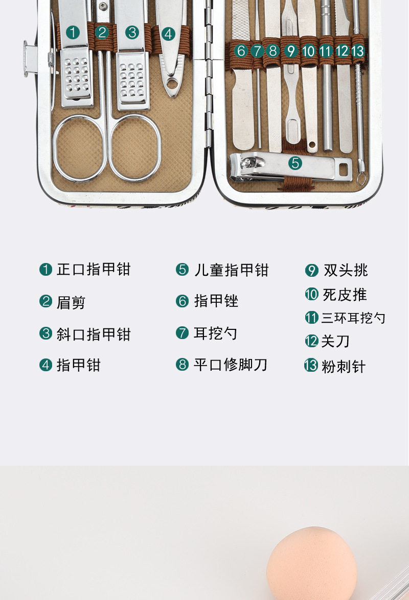 White oblique grid nail clippers suit 13-piece nail clippers beauty tools combination nail clippers trimming suit
