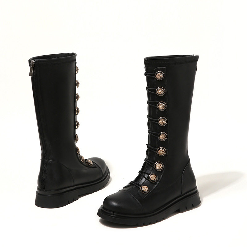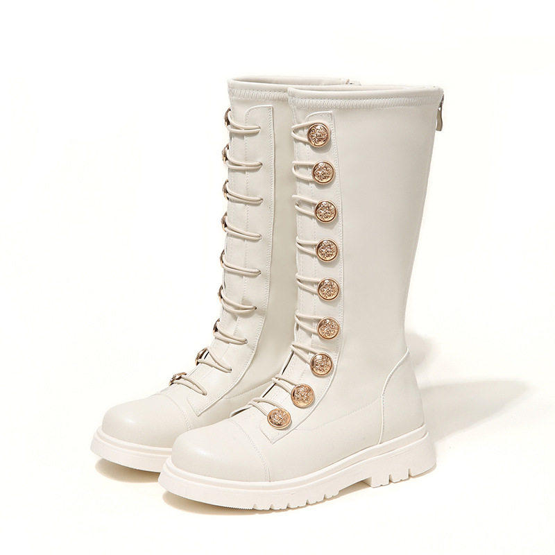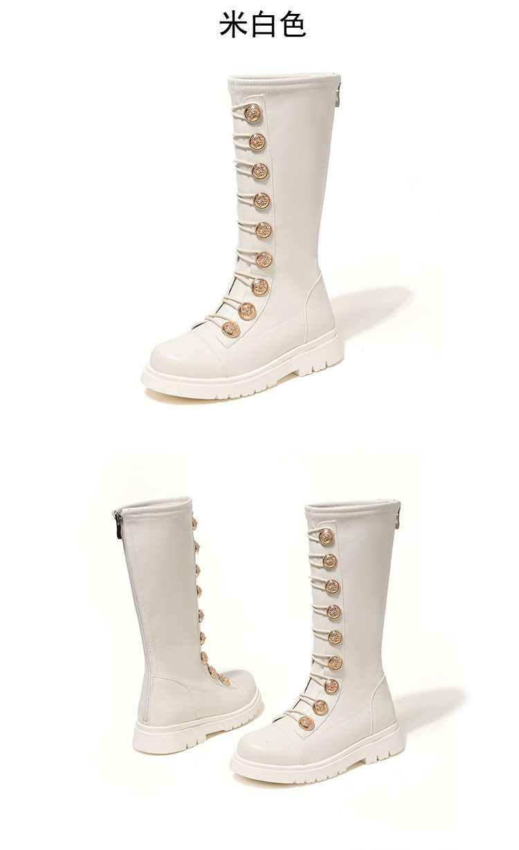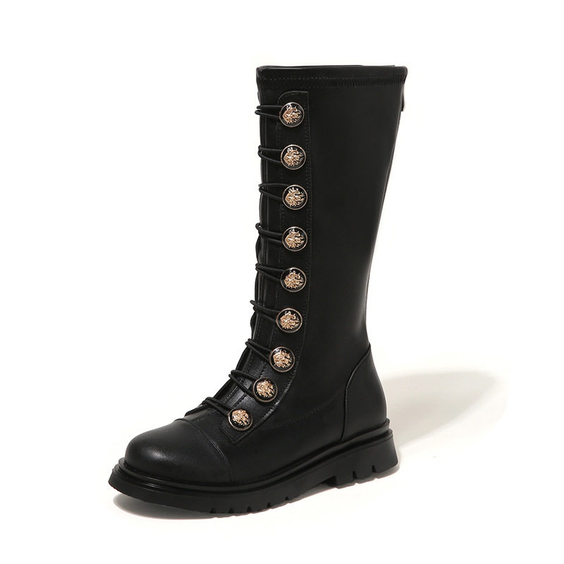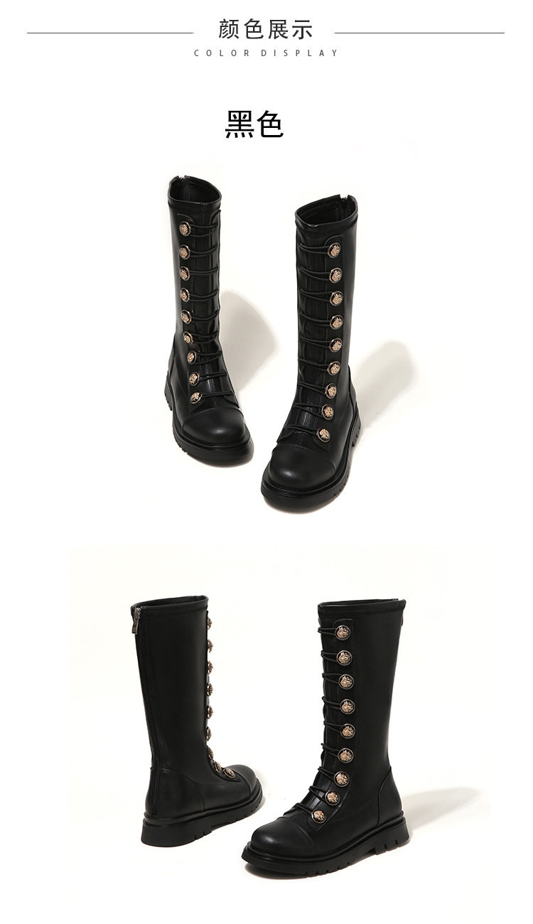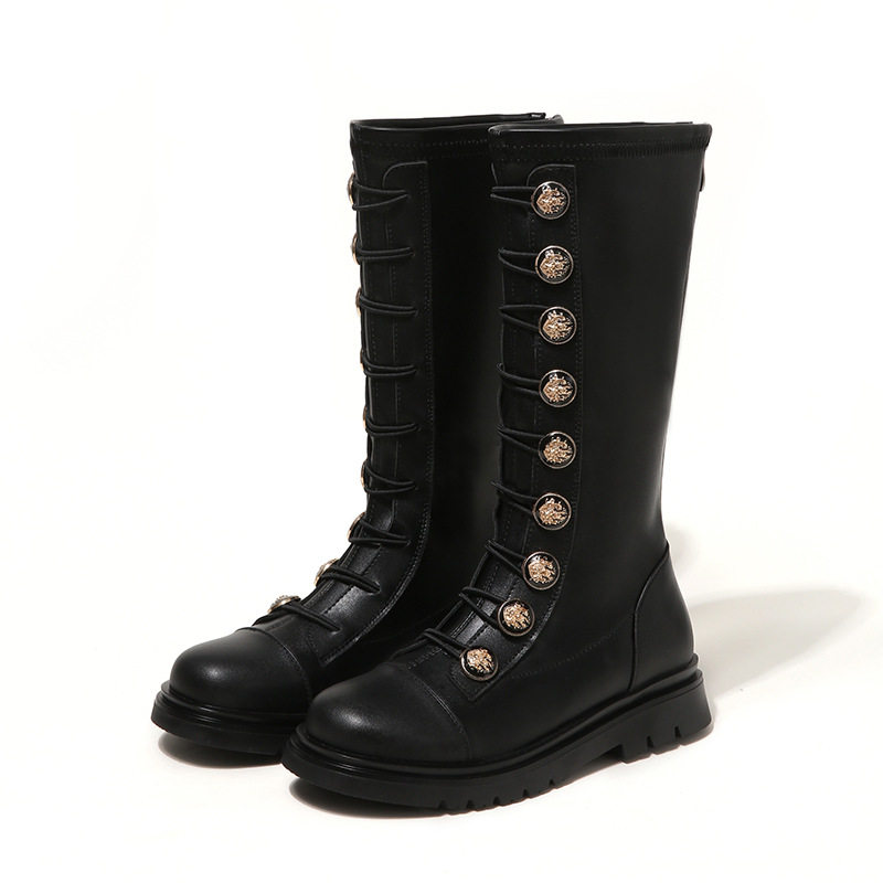 Girls' Shoes Children's Long Boots 2025 Spring and Autumn New Big Children's Catwalk Martin Boots Single Boots Girls' High Leather Boots