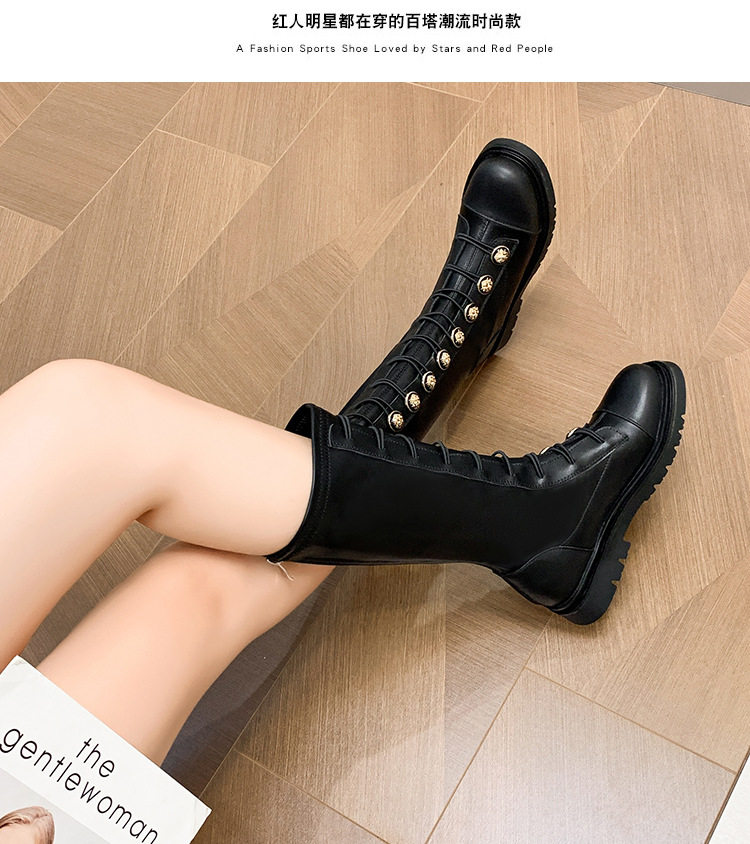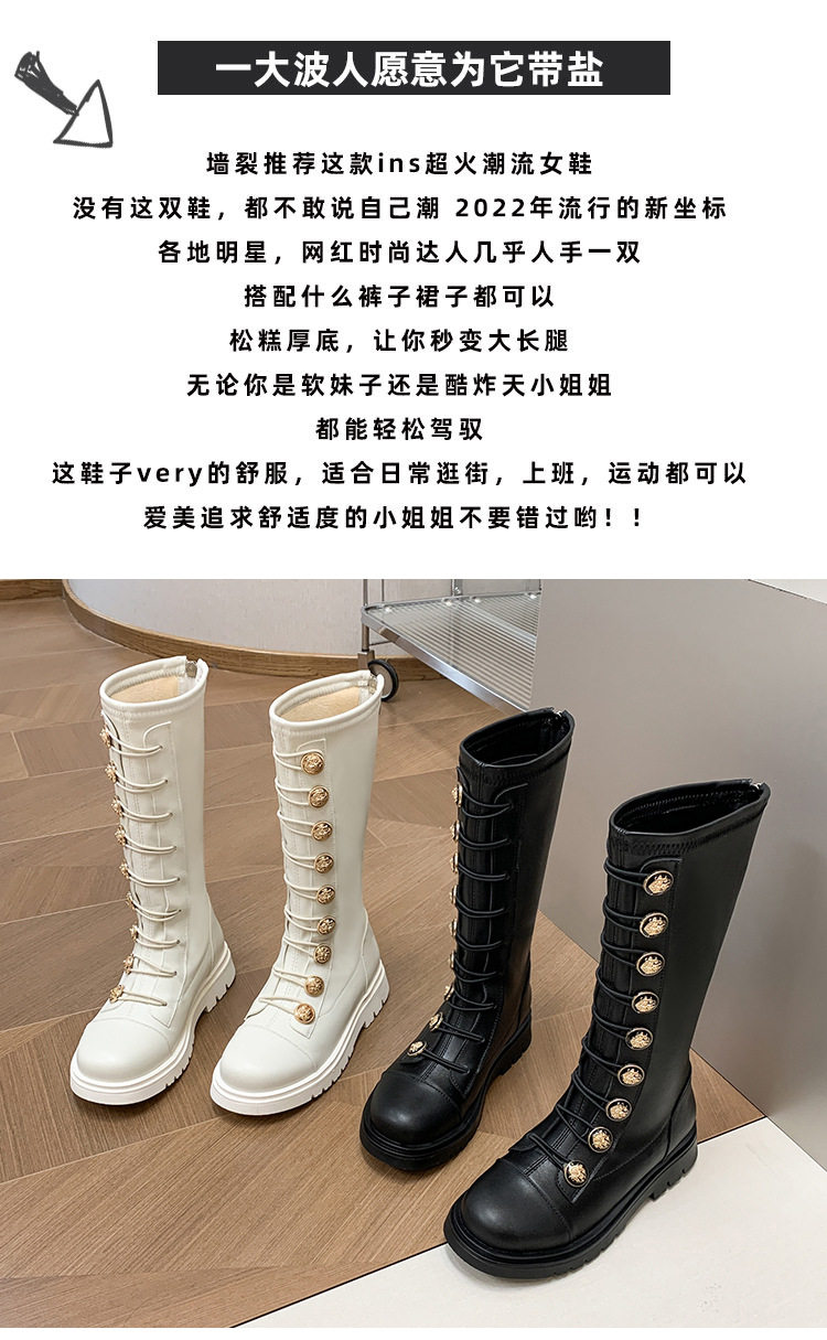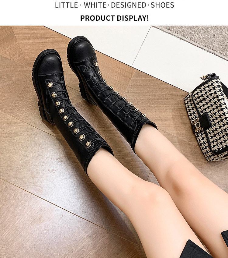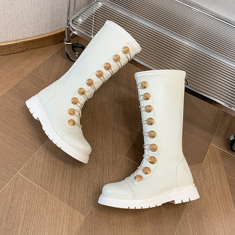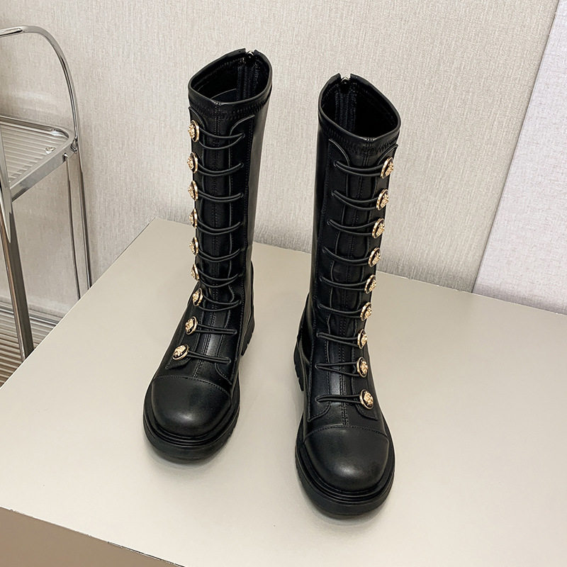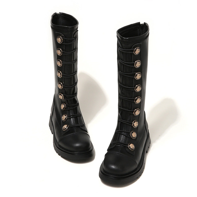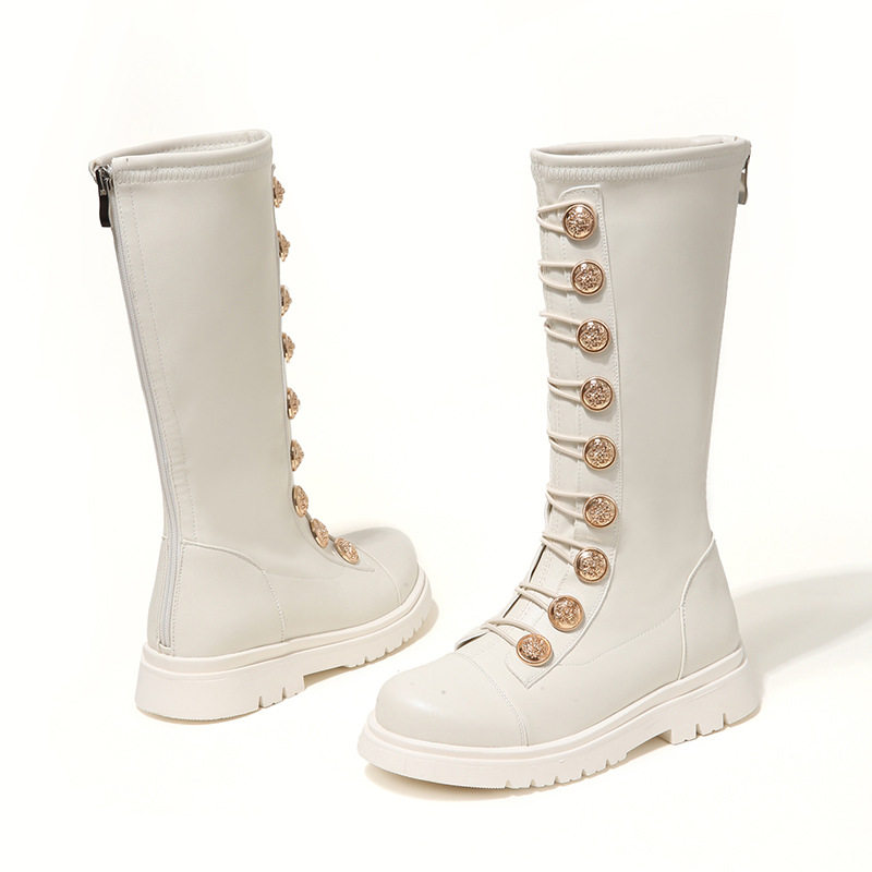 Girls' Shoes Children's Long Boots 2025 Spring and Autumn New Big Children's Catwalk Martin Boots Single Boots Girls' High Leather Boots