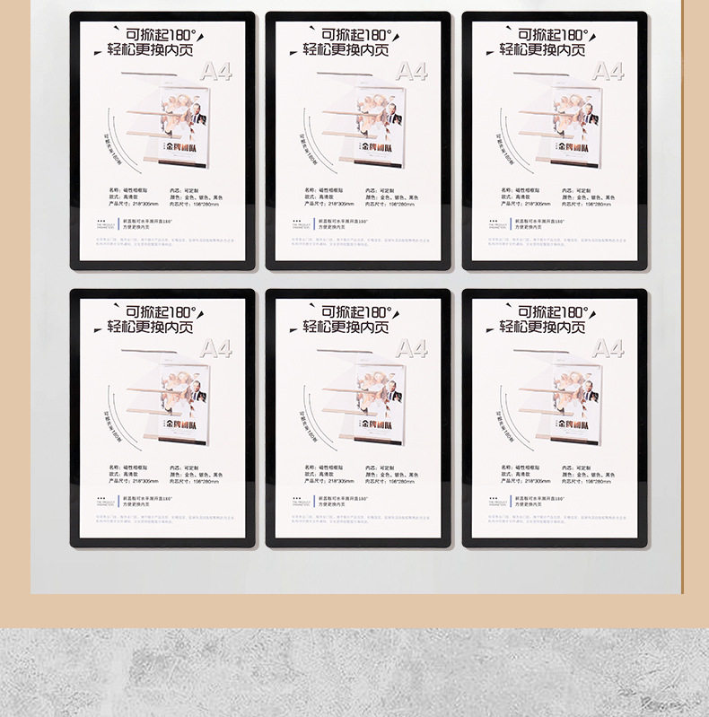 Wholesale PVC magnetic photo frame business license certificate photo magnetic display stickers thickened A4 magnetic display picture frame