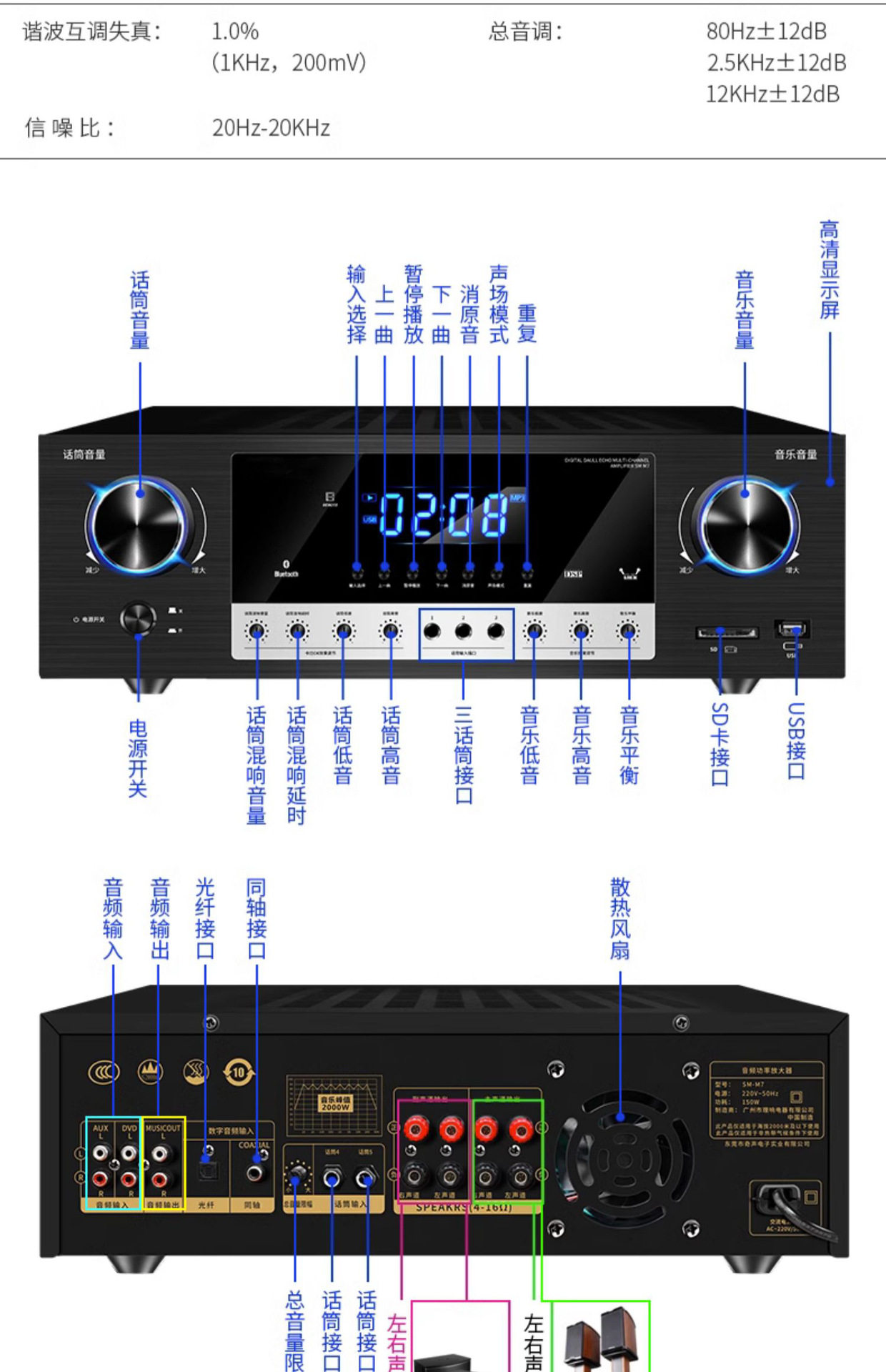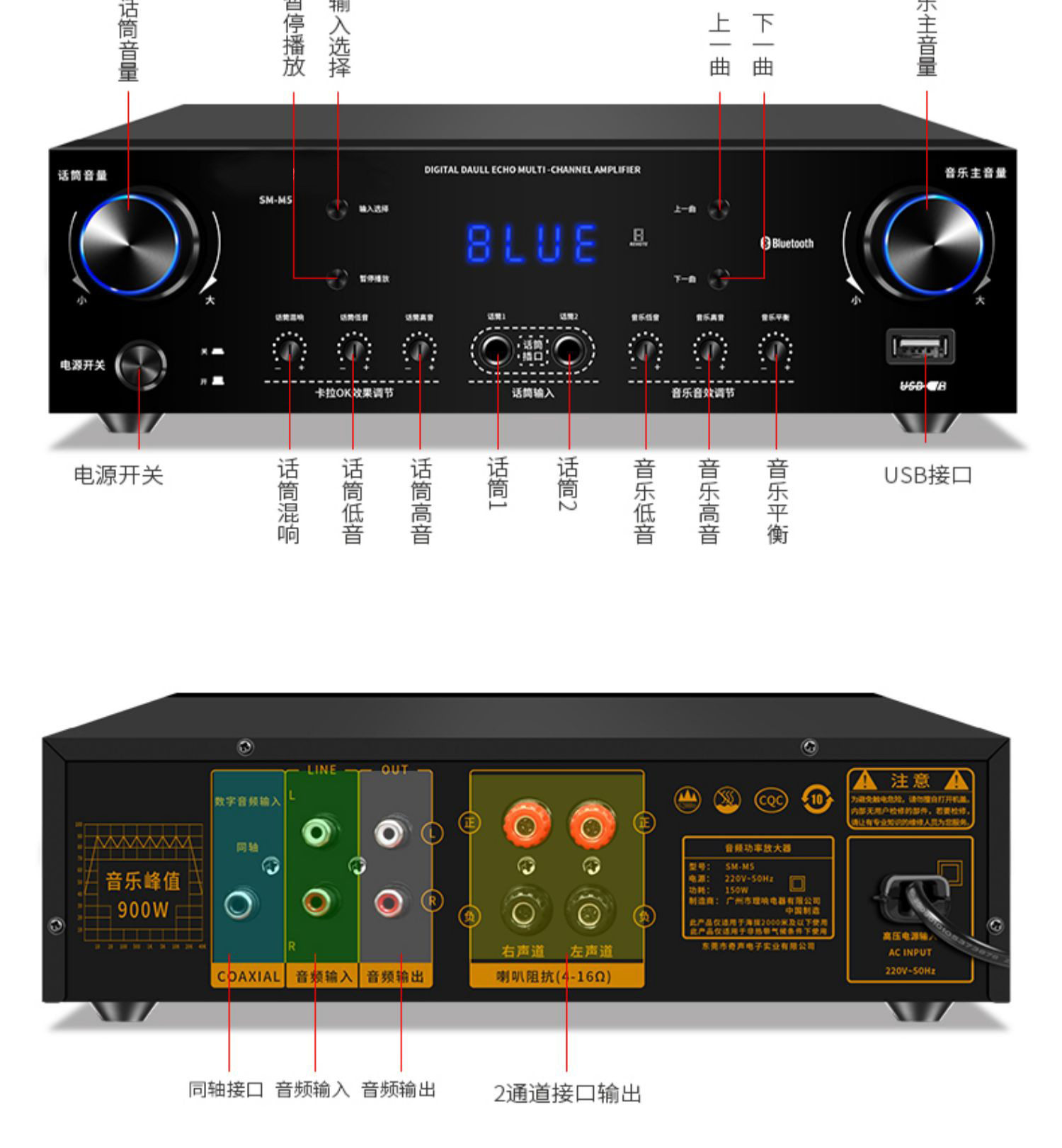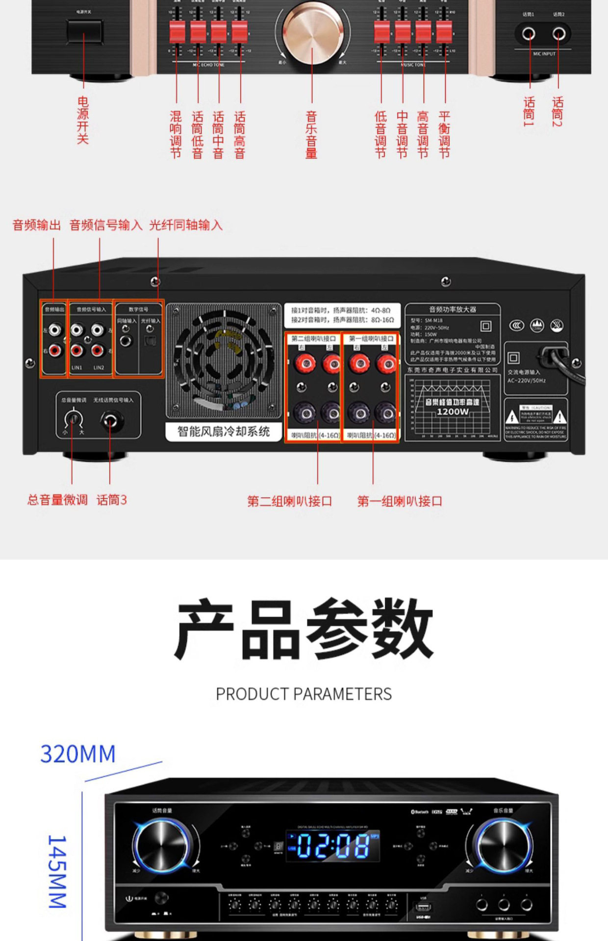 M23 power amplifier household high-power professional Bluetooth fever HIFI subwoofer KTV karaoke speaker