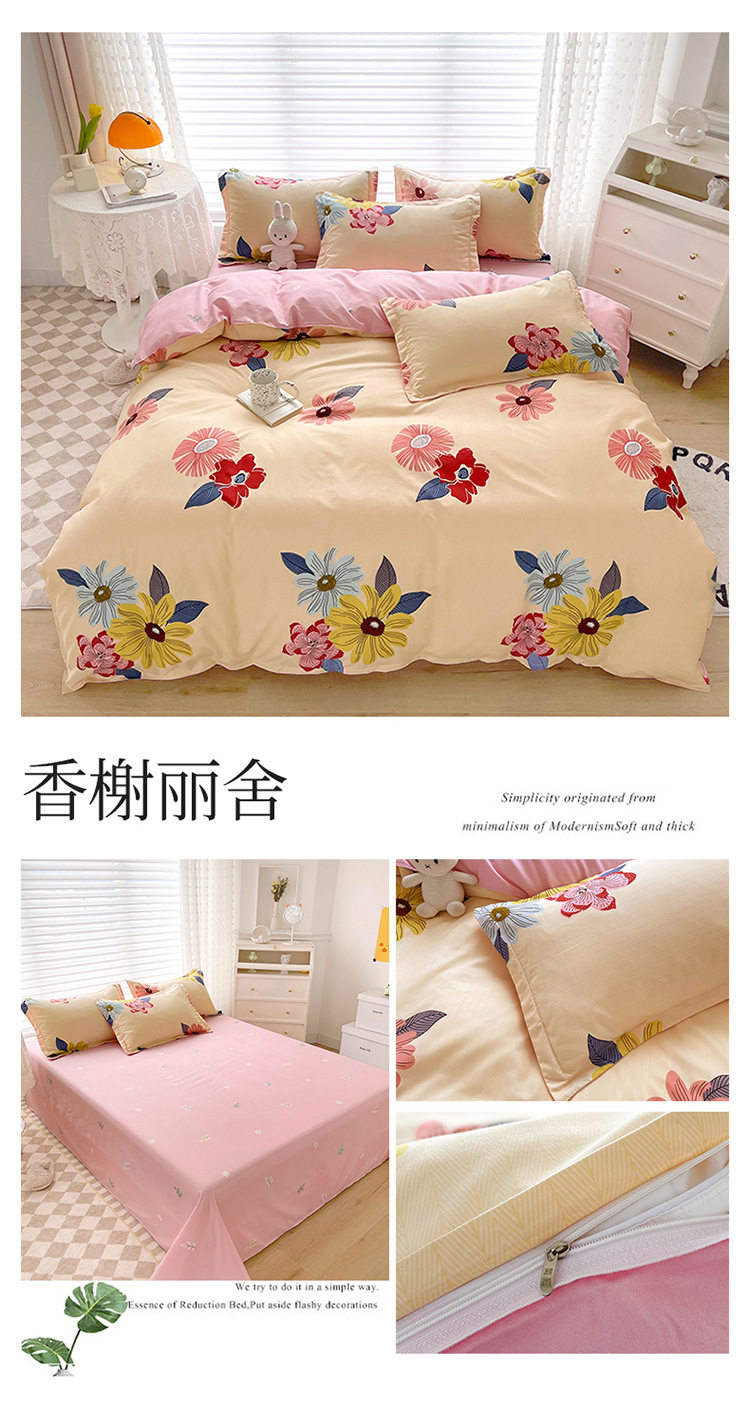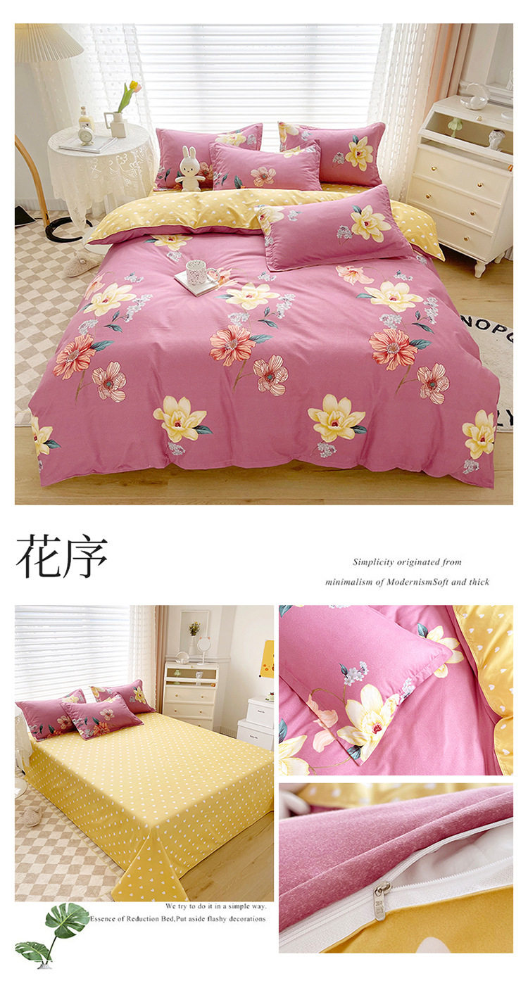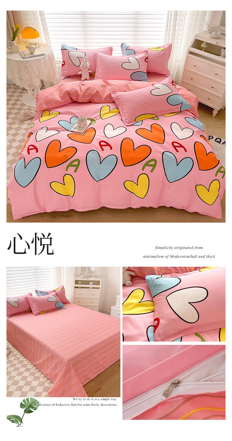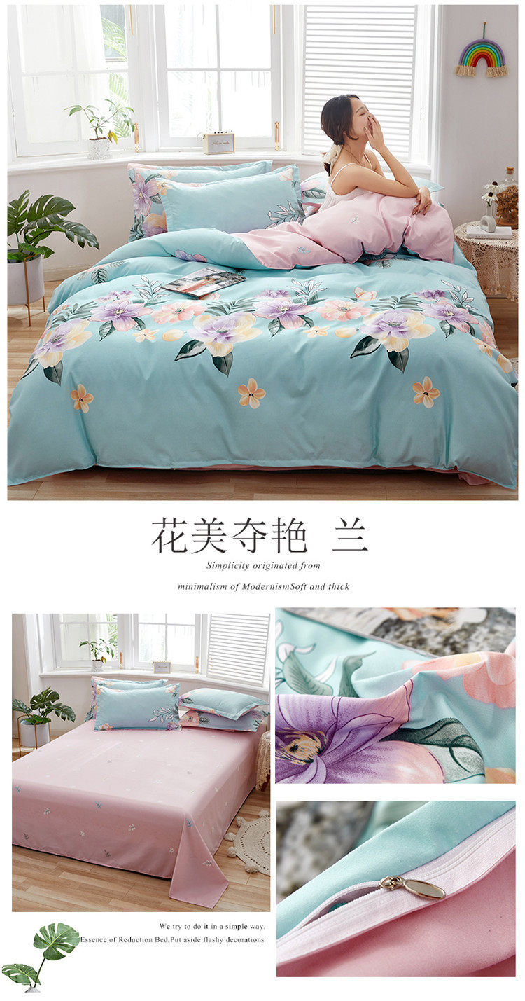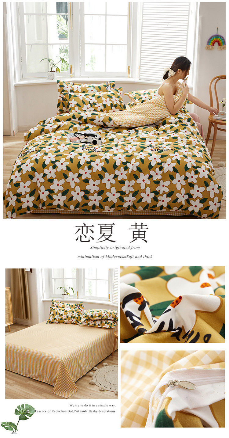 Korean Style Brushed Four-Piece Set Wholesale Small Fresh Student Dormitory Bed Sheets and Quilt Cover Three-Piece Set for All Seasons
