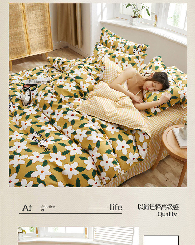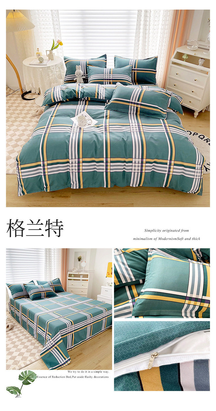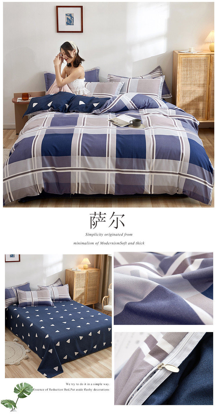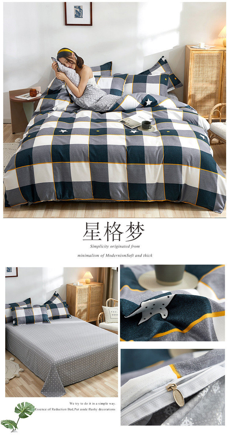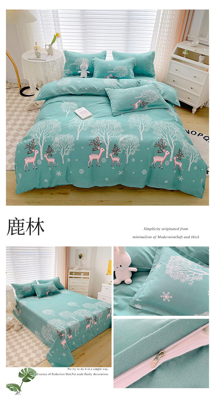 Korean Style Brushed Four-Piece Set Wholesale Small Fresh Student Dormitory Bed Sheets and Quilt Cover Three-Piece Set for All Seasons
