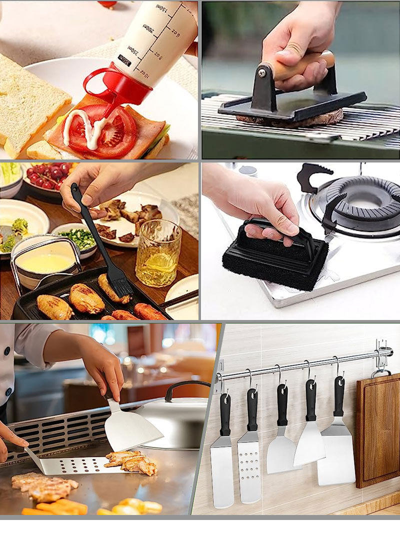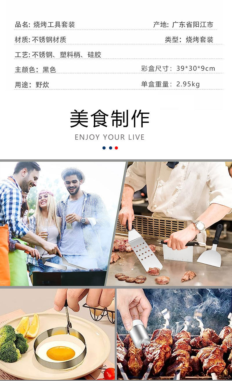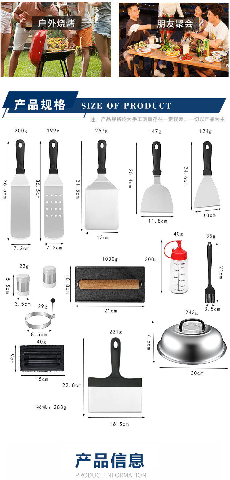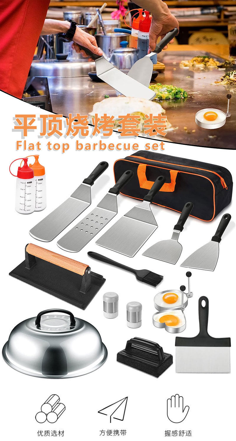 Amazon outdoor barbecue spatula suit stainless steel tool accessories combination grill BBQ teppanyaki set