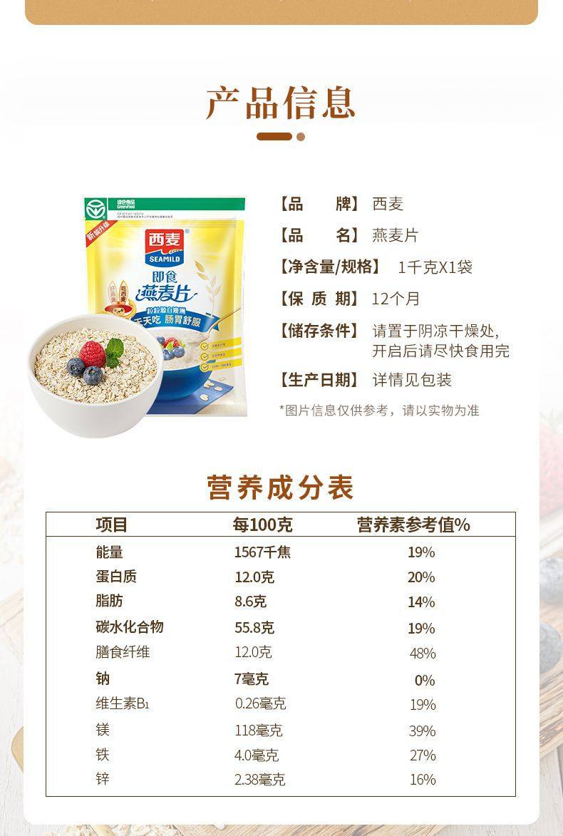 West Wheat Pure Oatmeal High Protein 0 Added Sucrose Ready-To-Eat Oatmeal Cereal Instant Nutritious Breakfast Bag 1kg