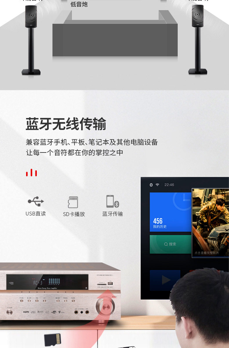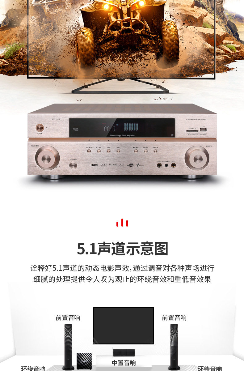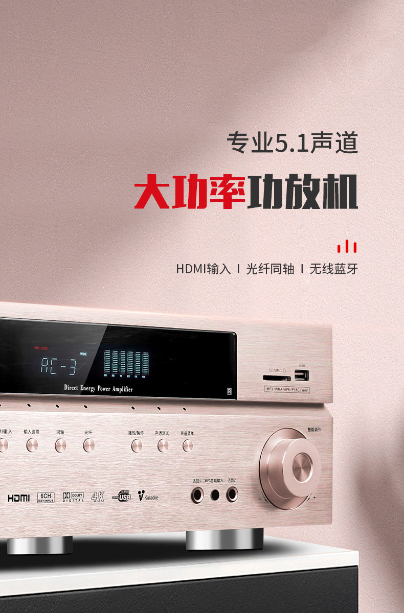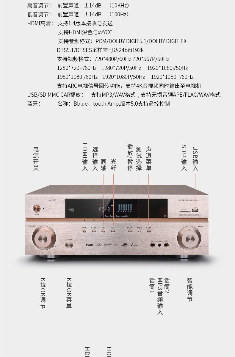 1809 power amplifier household 5.1 Dolby DTS professional high-power Bluetooth 4K HD karaoke amplifier