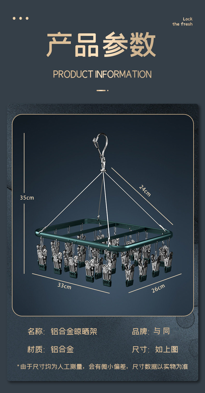 Multi-clip drying tray socks underwear aluminum alloy metal clip hanger balcony drying multi-functional seamless clothes hanger