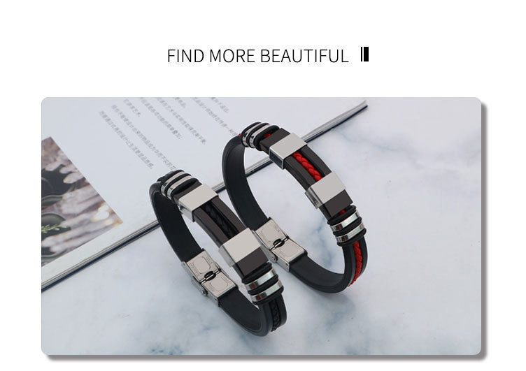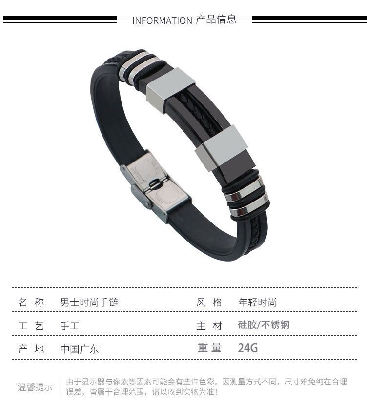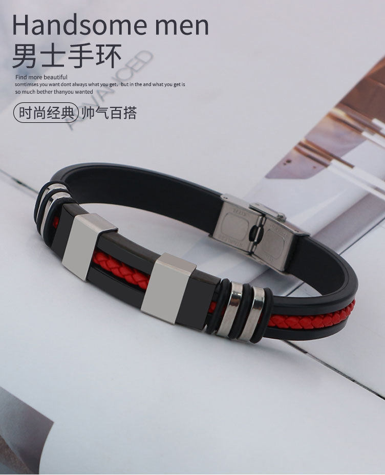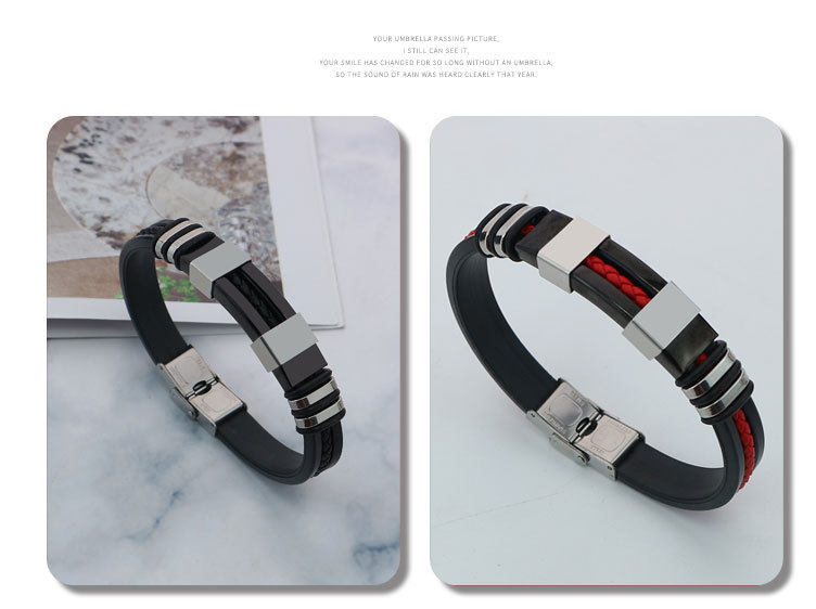 AliExpress foreign trade cross-border titanium steel jewelry fashion silicone stainless steel punk style trendy men's exaggerated bracelet wholesale