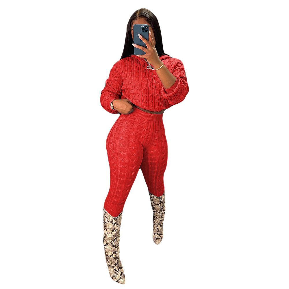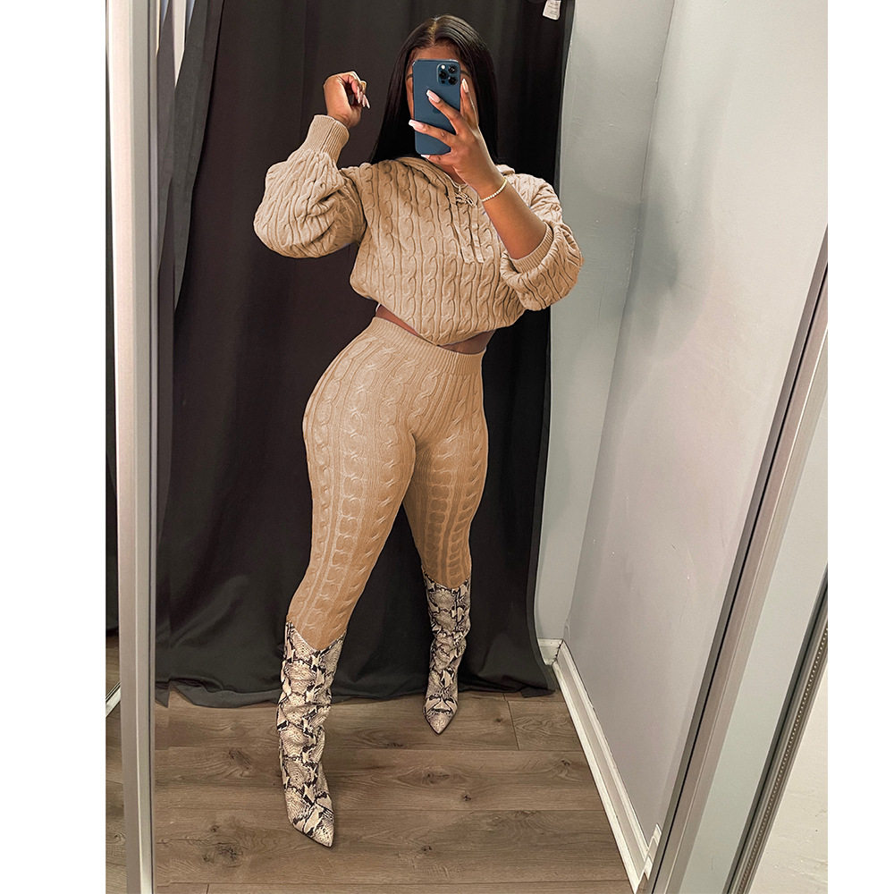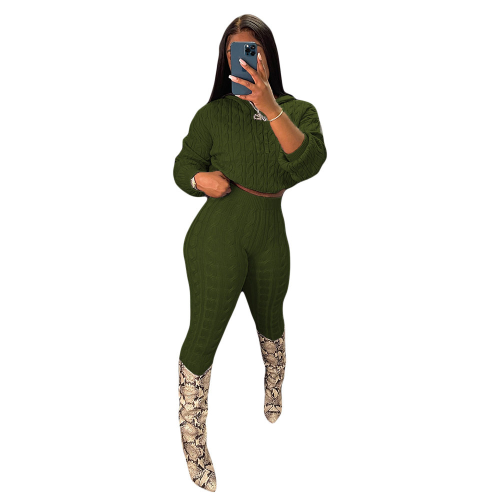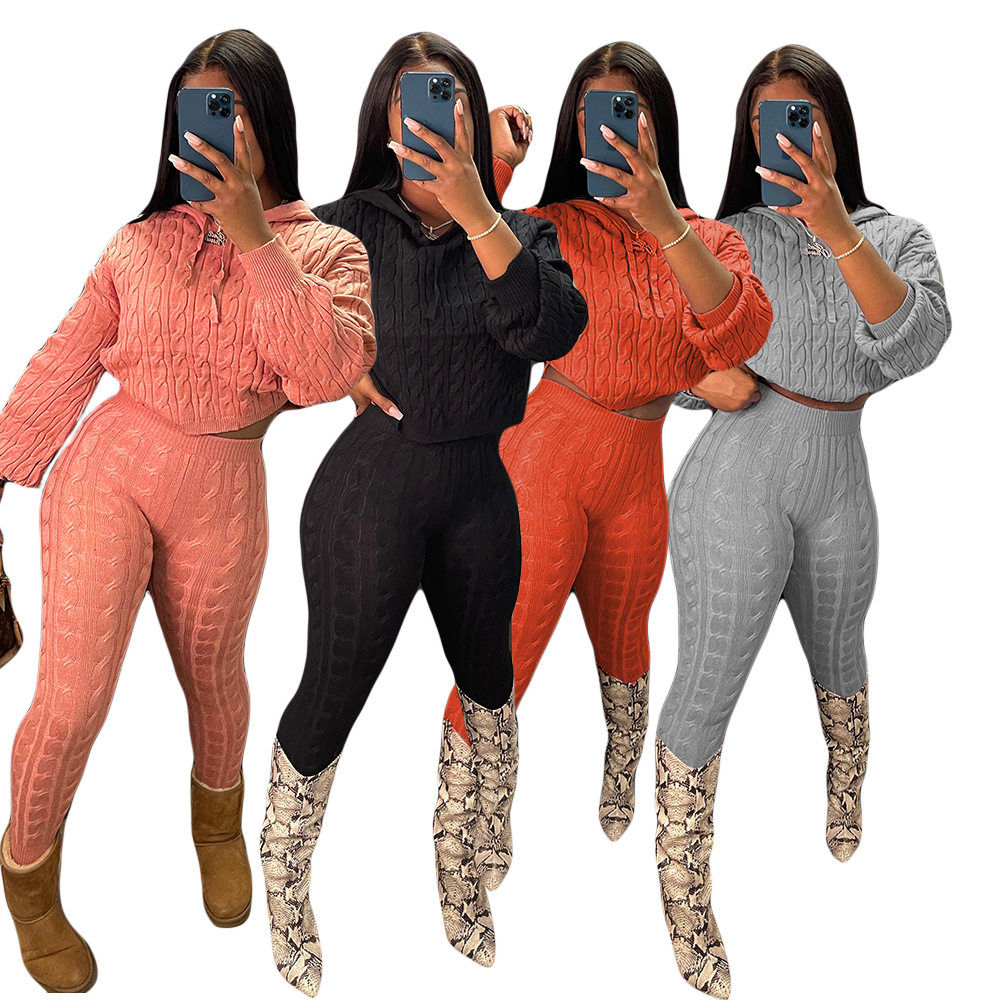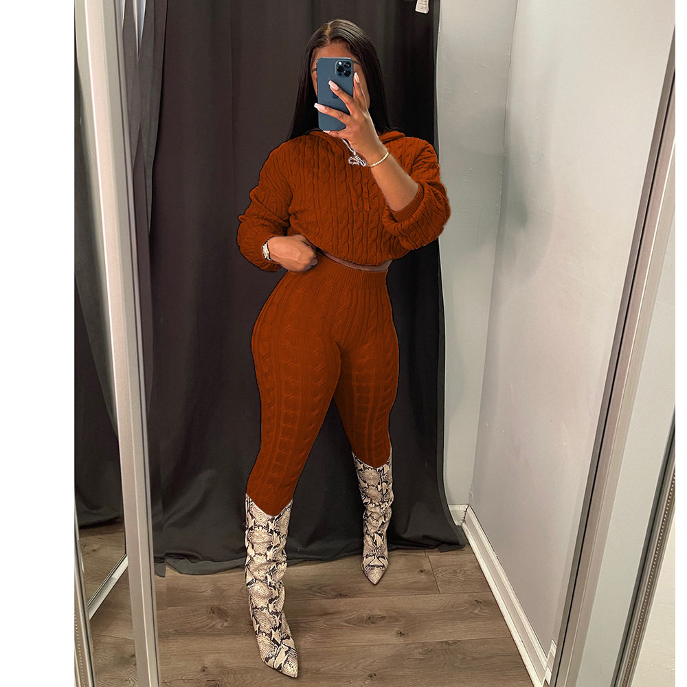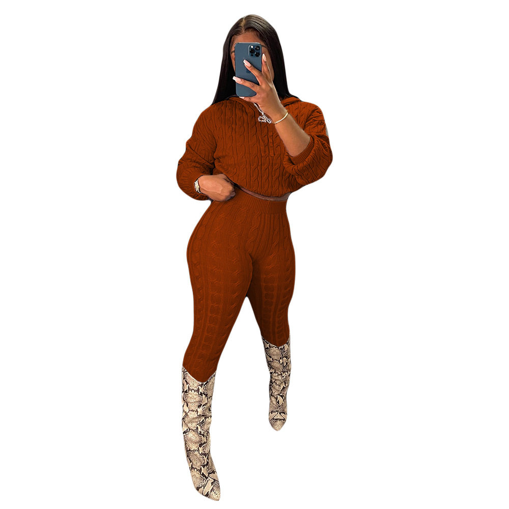 CN0193 Amazon AliExpress European and American women's high elastic solid color anti-Pilling sweater sweater suit two-piece set