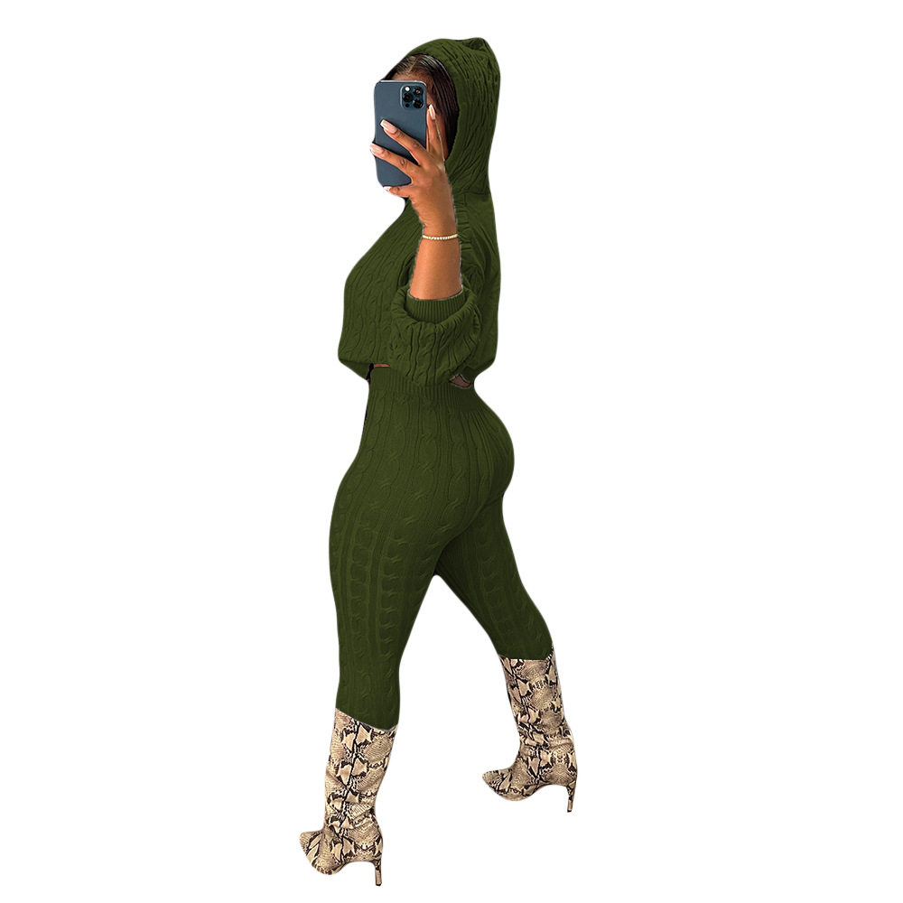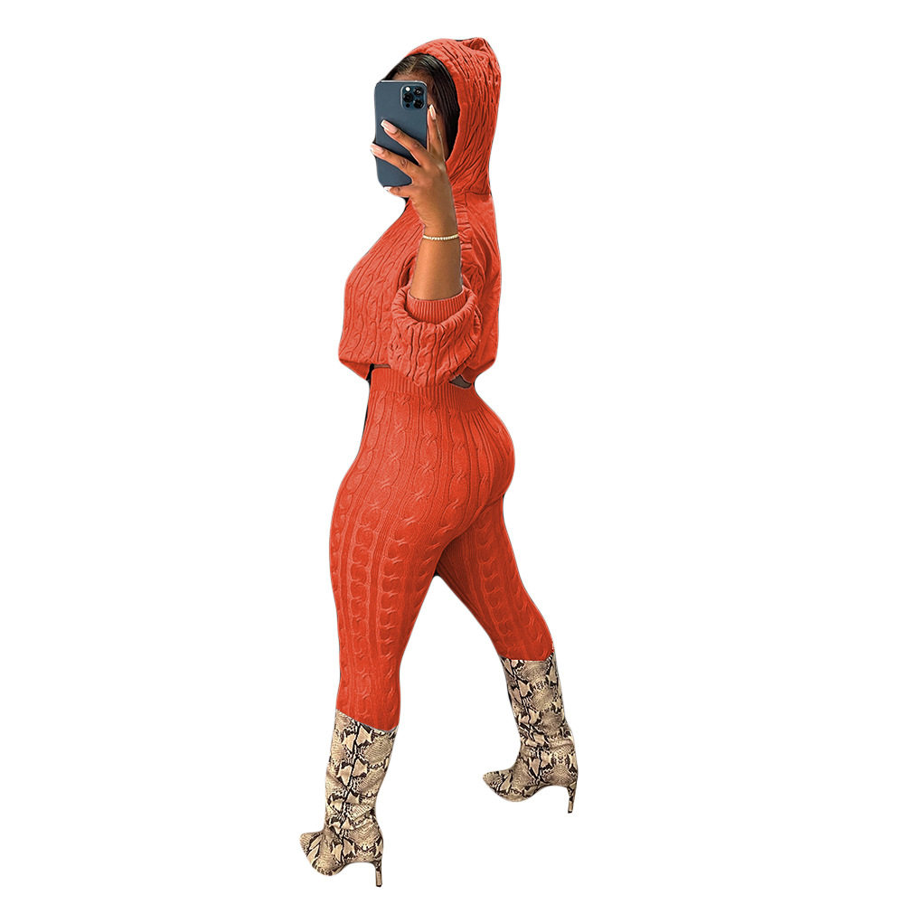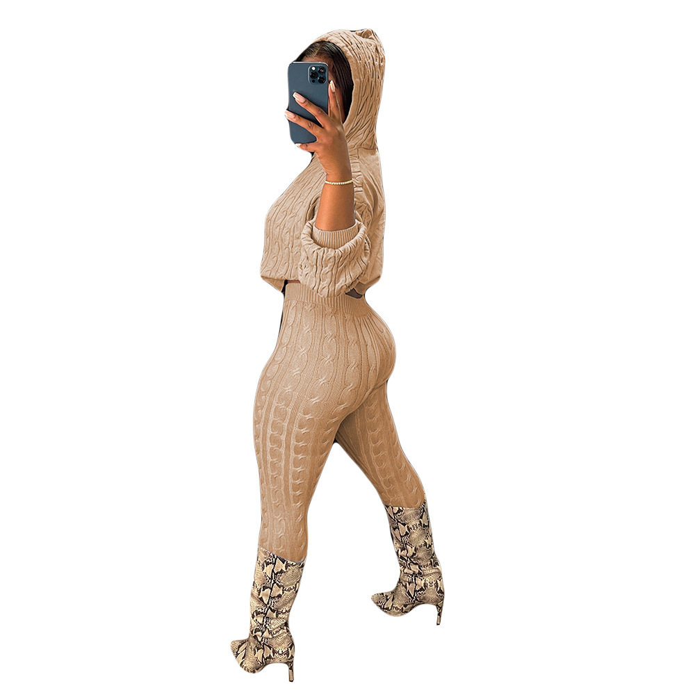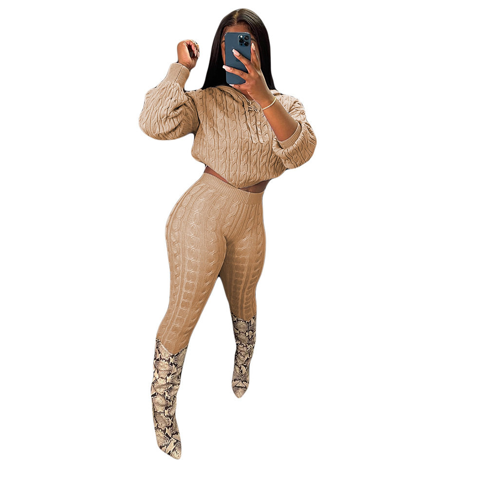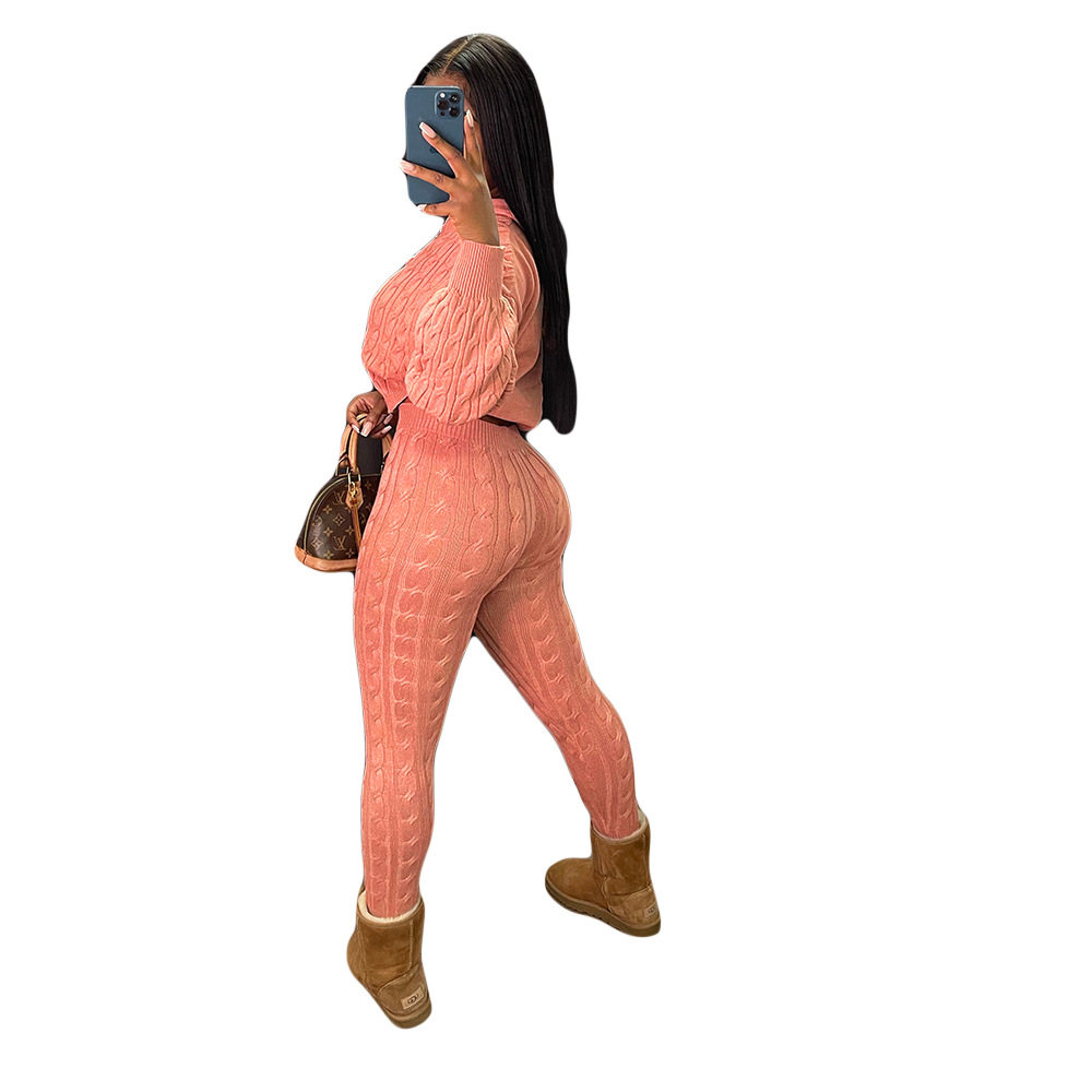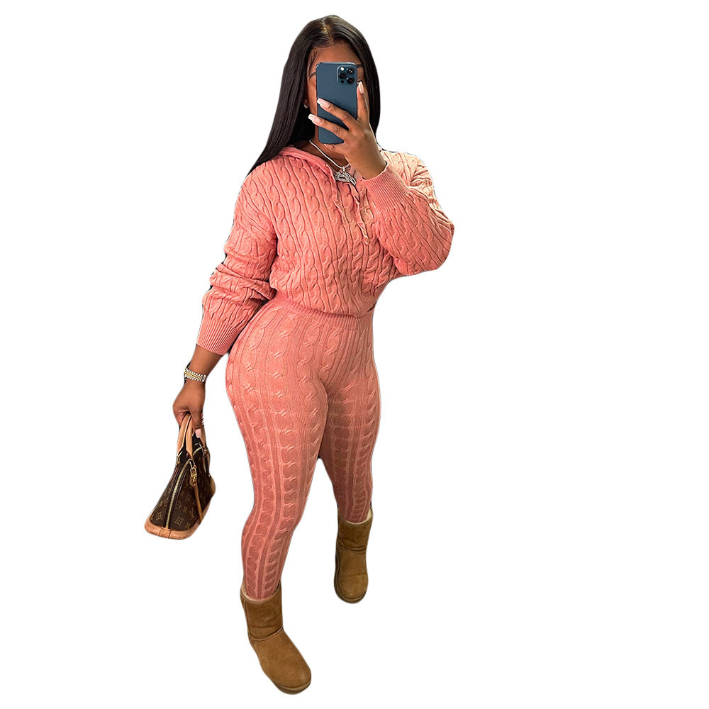 CN0193 Amazon AliExpress European and American women's high elastic solid color anti-Pilling sweater sweater suit two-piece set