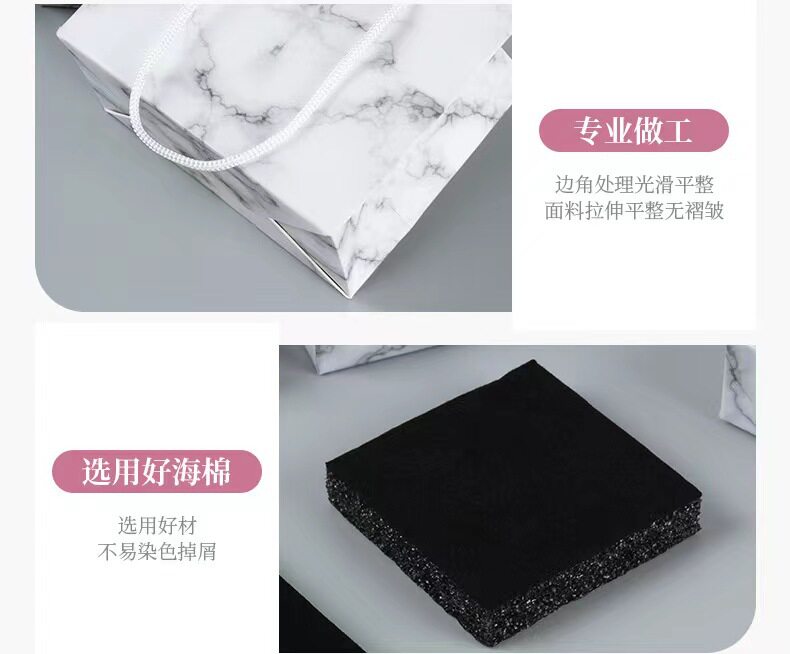 | Specifications and models | 5*5 * white marble series,5*8 * white marble series,7*7 * white marble series,7.5*7.5 * white marble series,9*9 * white marble series,4.8*22 * white marble series,Tote bag (horizontal) * white marble series |