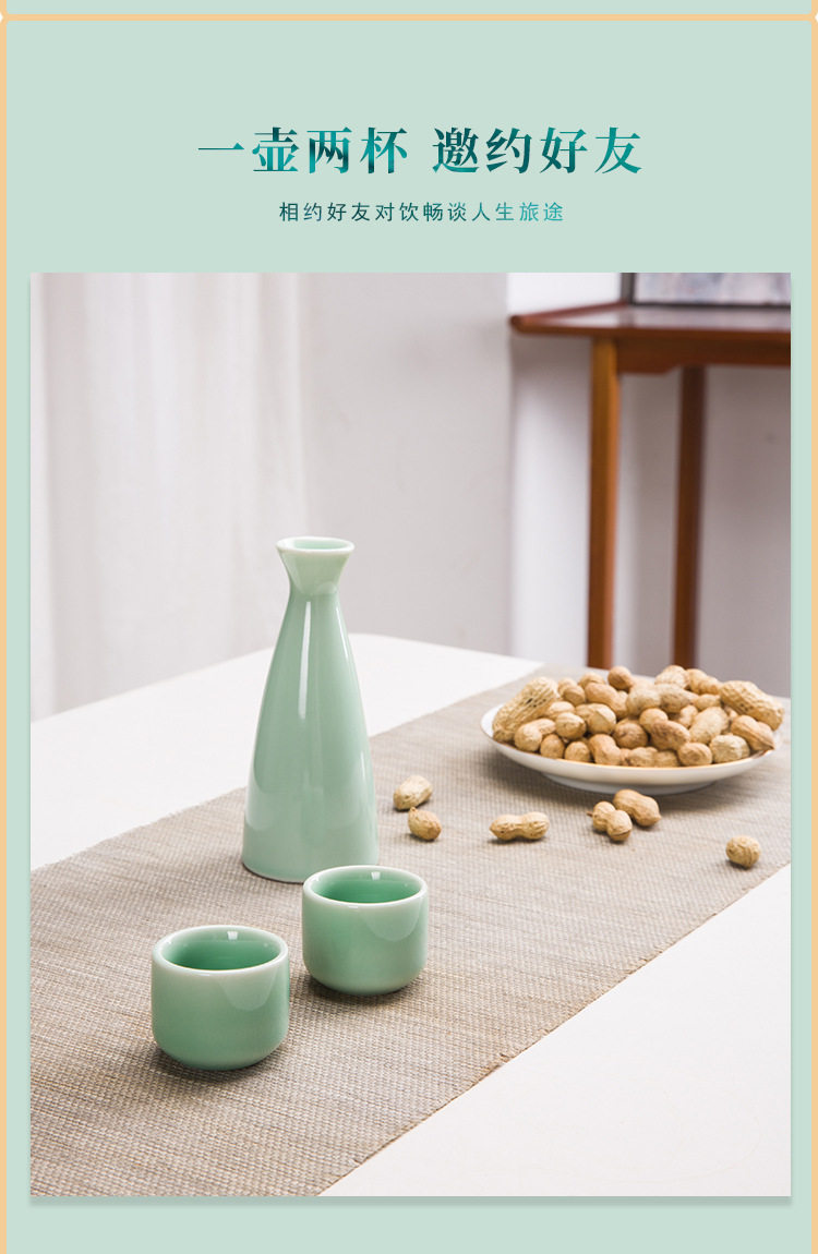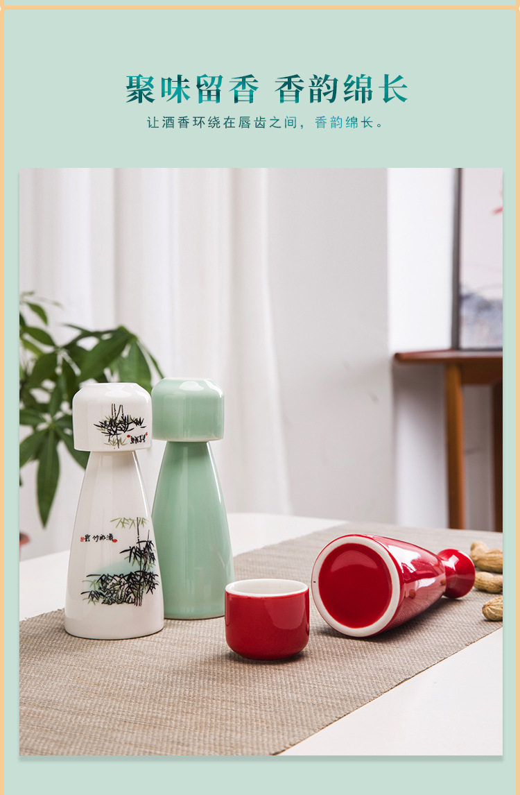 Ceramic small wine pot wine glass household vintage wine separator old-fashioned two-clear wine set with bamboo cup holder storage suit