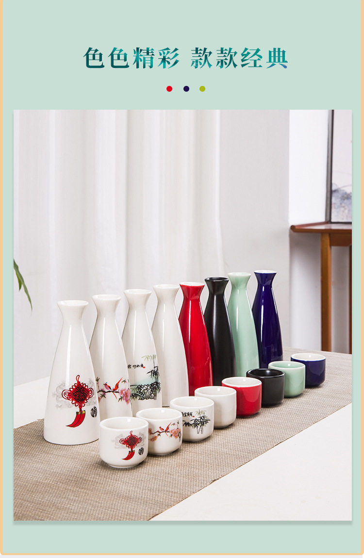 | Color | 01-two white (6 pots and 6 cups)_four-layer Wine Rack (flower surface can be noted),02-two white (8 pots and 8 cups)_four-layer Wine Rack (flower surface can be noted),03-two two White (10 pots and 10 cups)_four-layer Wine Rack (flower surface can be noted),04-two white (12 pots and 12 cups)_round wine rack (flower surface can be noted),05-two white (10 pots and 10 cups)_round wine rack (flower surface can be noted),06-two white (10 pots and 10 cups)_rectangular wine rack (flower surface can be noted),07-two white (8 pots and 8 cups)_round wine rack (flower surface can be noted),08-two white (8 pots and 8 cups)_rectangular wine rack (flower surface can be noted),09-two white (6 pots and 12 cups)_wine rack (flower surface can be noted),10-two white (6 pots and 8 cups)_wine rack (flower surface can be noted),11-two white (6 pots and 6 cups)_rectangular wine rack (flower surface can be noted),12-two two red (6 pots and 6 cups)_wine rack with wine stopper,13-two blue (6 pots and 6 cups)_wine rack with wine stopper,14-two black (6 pots and 6 cups)_wine rack with wine stopper,15-two Bamboo Shadows (6 pots and 6 cups)_wine rack with wine stopper,16-Two Chinese knots (6 pots and 6 cups)_wine rack with wine stopper,17-two peach blossoms (6 pots and 6 cups)_wine rack with wine stopper,18-two white (6 pots and 6 cups)_wine rack with wine stopper,19-two white (4 pots and 8 cups)_wine rack (flower surface can be noted),20-two white (4 pots and 6 cups)_wine rack (flower surface can be noted) (1),21-two white (4 pots and 4 cups)_wine rack (flower surface can be noted),22-two white (2 pots and 8 cups)_wine rack (flower surface can be noted),23-two white (2 pots and 6 cups)_wine rack (flower surface can be noted),24-two white (2 pots and 4 cups)_wine rack (flower surface can be noted),25-two liang (pure white pot) 6_wine rack (flower surface can be noted),26-Two Liang (pure white pot) 8_wine rack (flower surface can be noted),27-Two Liang (pure white pot) 10_wine rack (flower surface can be noted),28-two liang (pure white pot) 12_wine rack (flower surface can be noted),29-half jin (pure white pot) 6_wine rack (flower surface can be noted),30-half jin Pure White (1 pot_6 cups)_wine rack (flower surface can be noted),31-half jin Pure White (1 pot_8 cups)_wine rack (flower surface can be noted),32-half jin Pure White (1 pot_12 cups)_wine rack (flower surface can be noted),33-half jin Pure White (2 pots_12 cups)_wine rack (flower surface can be noted) |