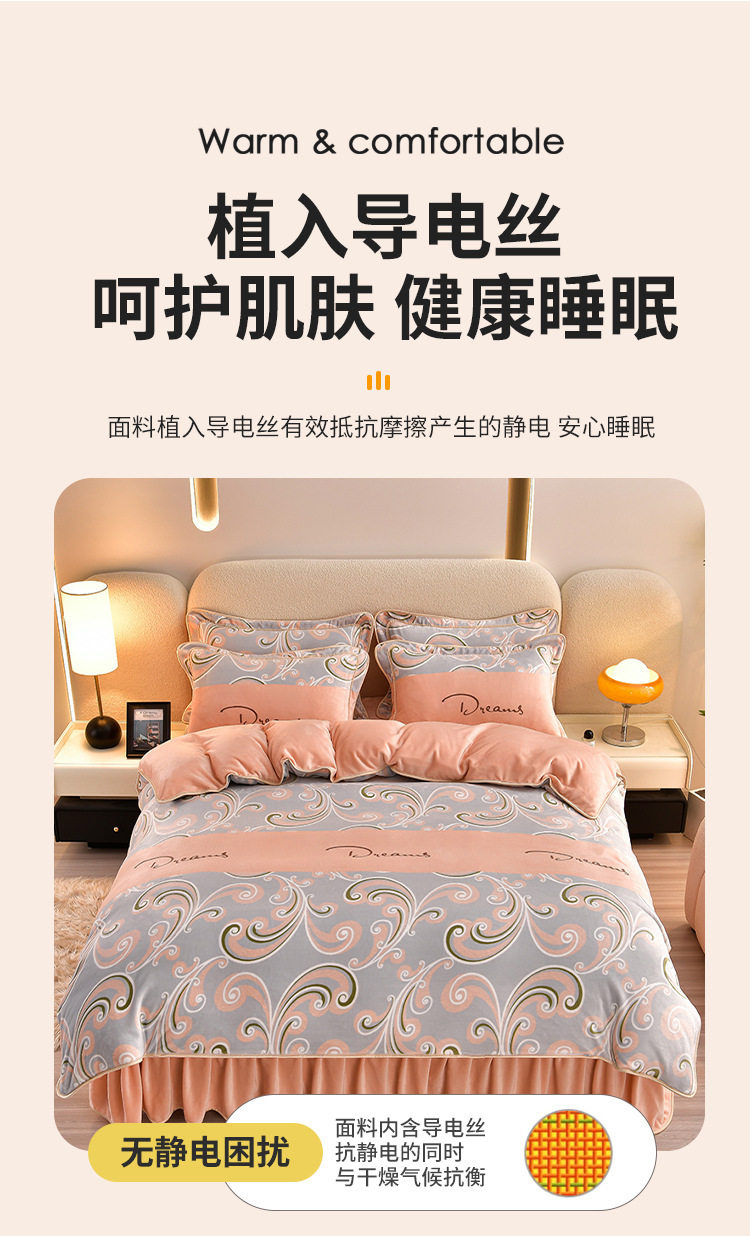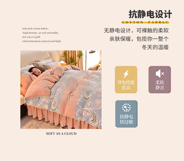 New Live Broadcast Hot milk velvet four-piece set thickened flannel four-piece set Winter single double thickened four-piece set