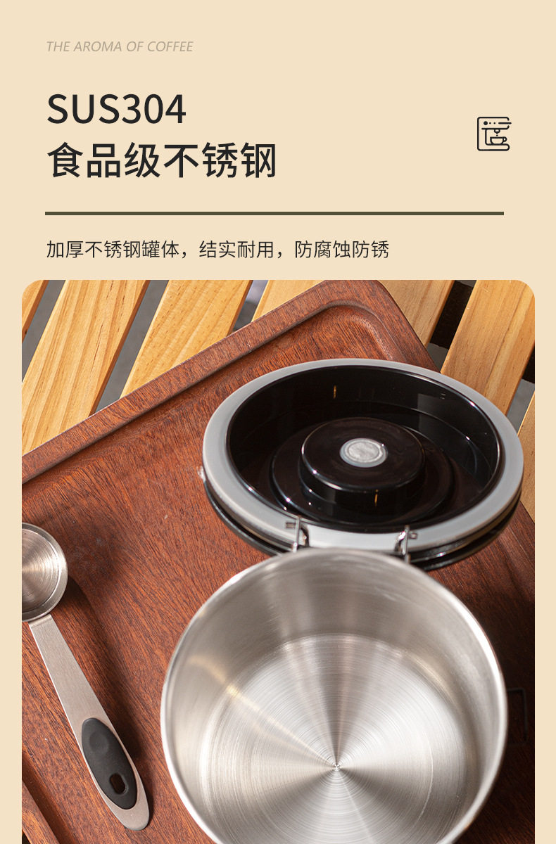 304 Stainless Steel Coffee Powder Storage Bean Tank Sealed Tank Preservation Tank Round Storage Tank Cat Food Dog Food Storage Barrel