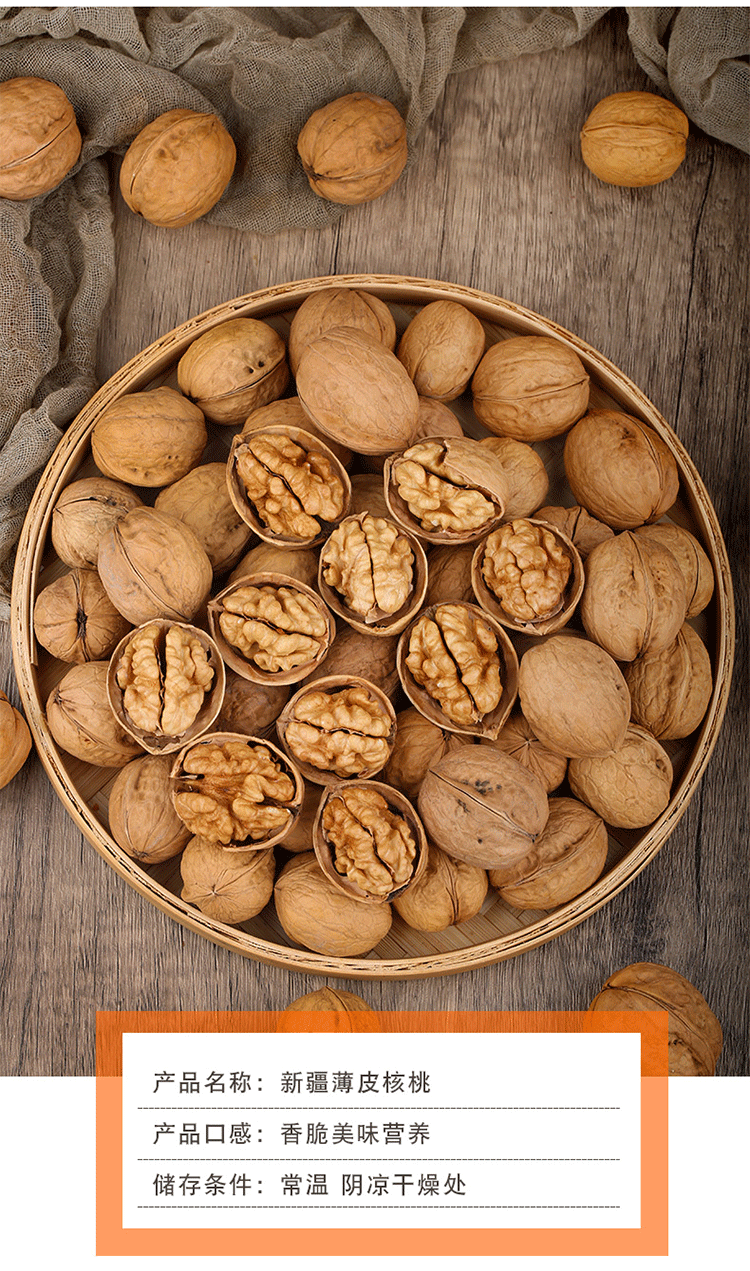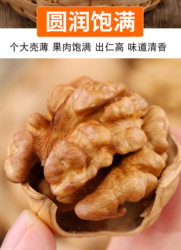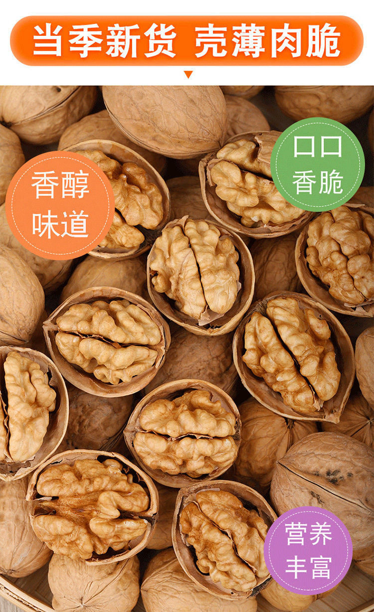 | Packing specification | 185 paper-skinned walnuts 500g*1 bag (selected large),185 paper-skinned walnuts 500g*2 bags (selected large),185 paper-skinned walnuts 500g**3 bags (selected large),185 paper-skinned walnuts 500g*4 bags (selected large) |