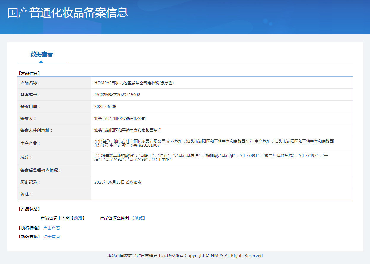 | Extra cosmetics registration certificate number | Guangdong g makeup net preparation2023215408 |