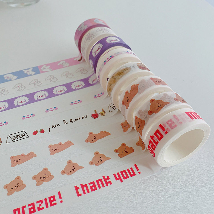 [5 m] South Korea ins bear Teddy simple letter smiley face and paper tape hand account sticker hand tear adhesive paper